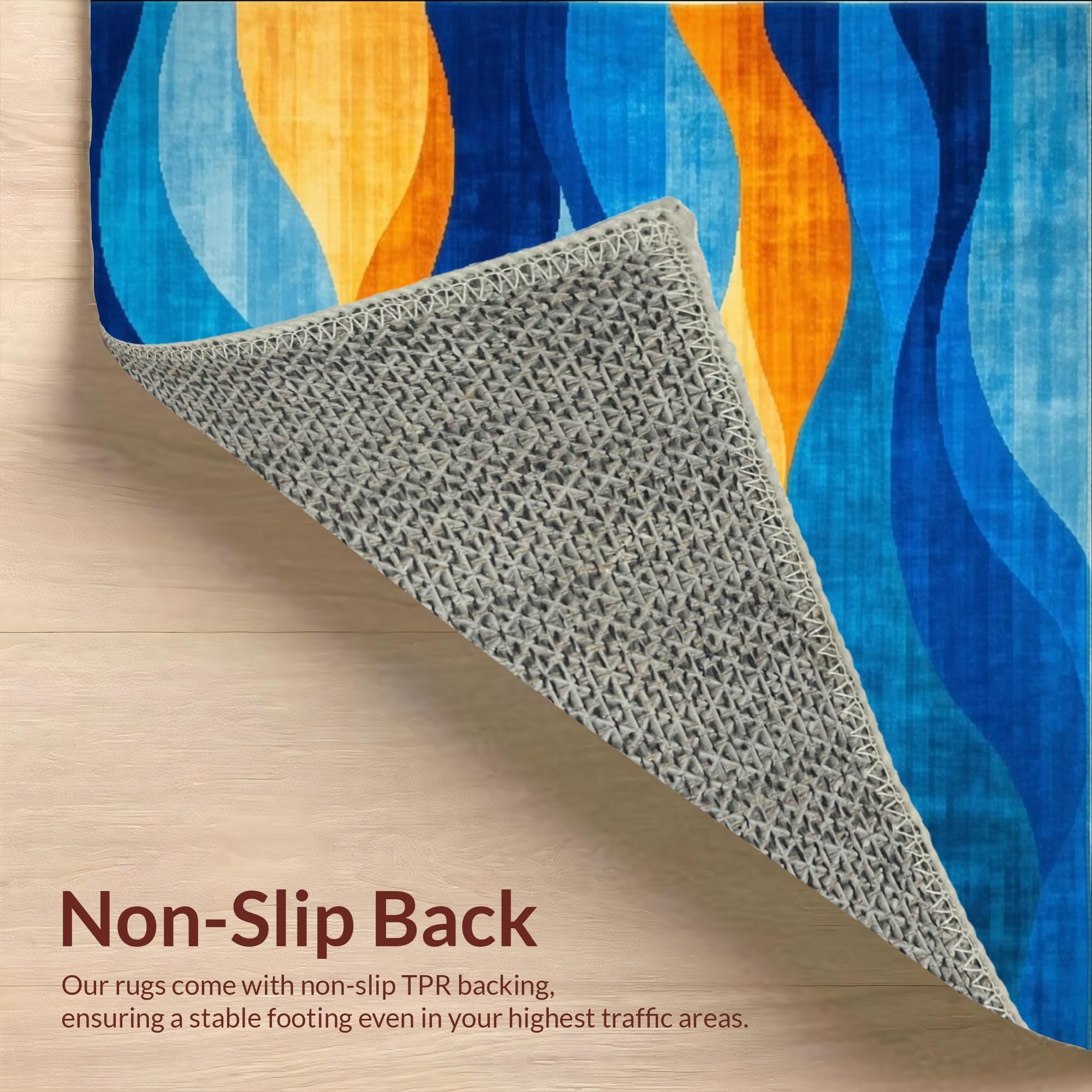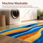 Ultra Soft Area Rug, Non Slip, Stain Resistant, Washable Area Rugs for Living Room, Bedroom, Artistic Area Featuring Enchanting Blue and Orange Waves Design(Blue) Overview: