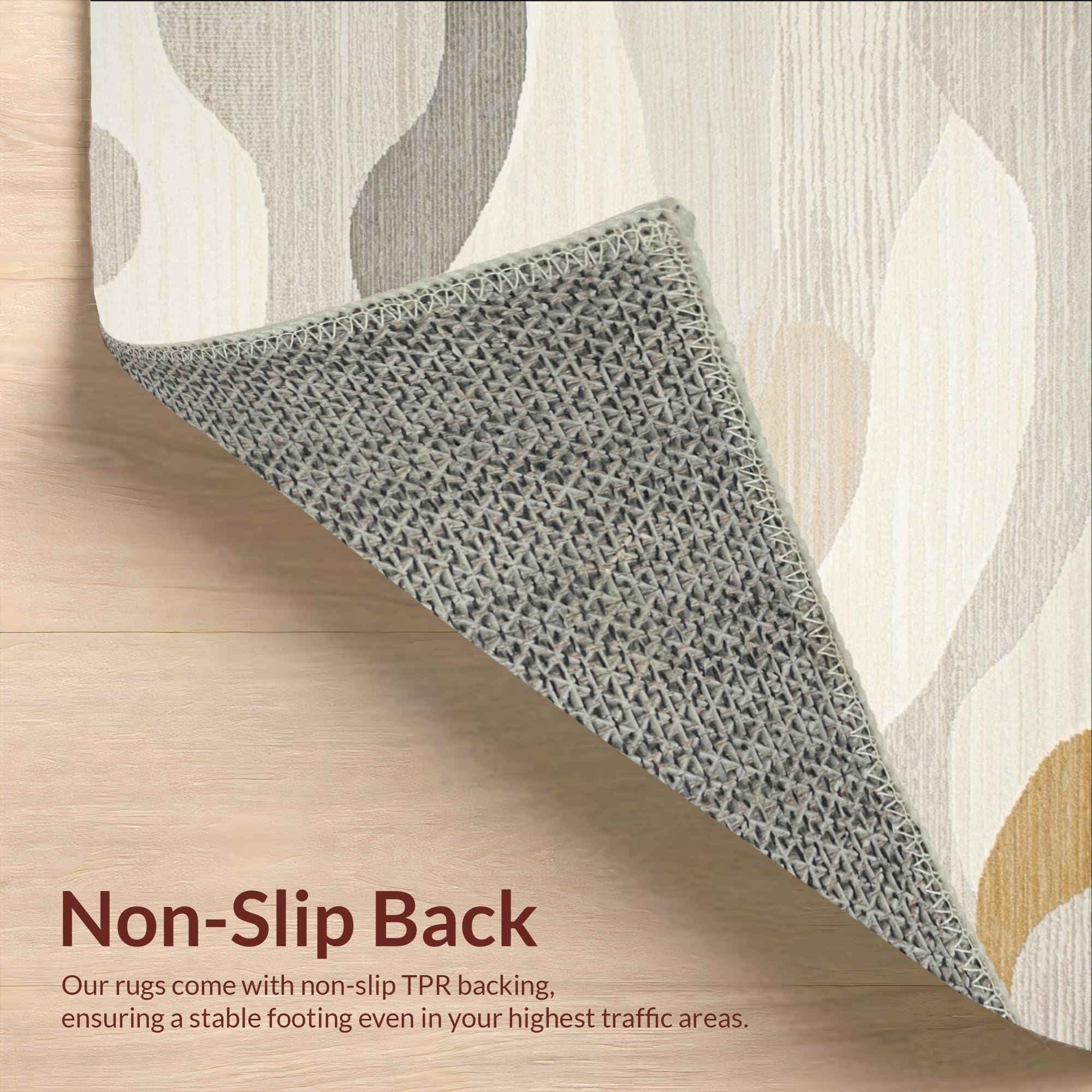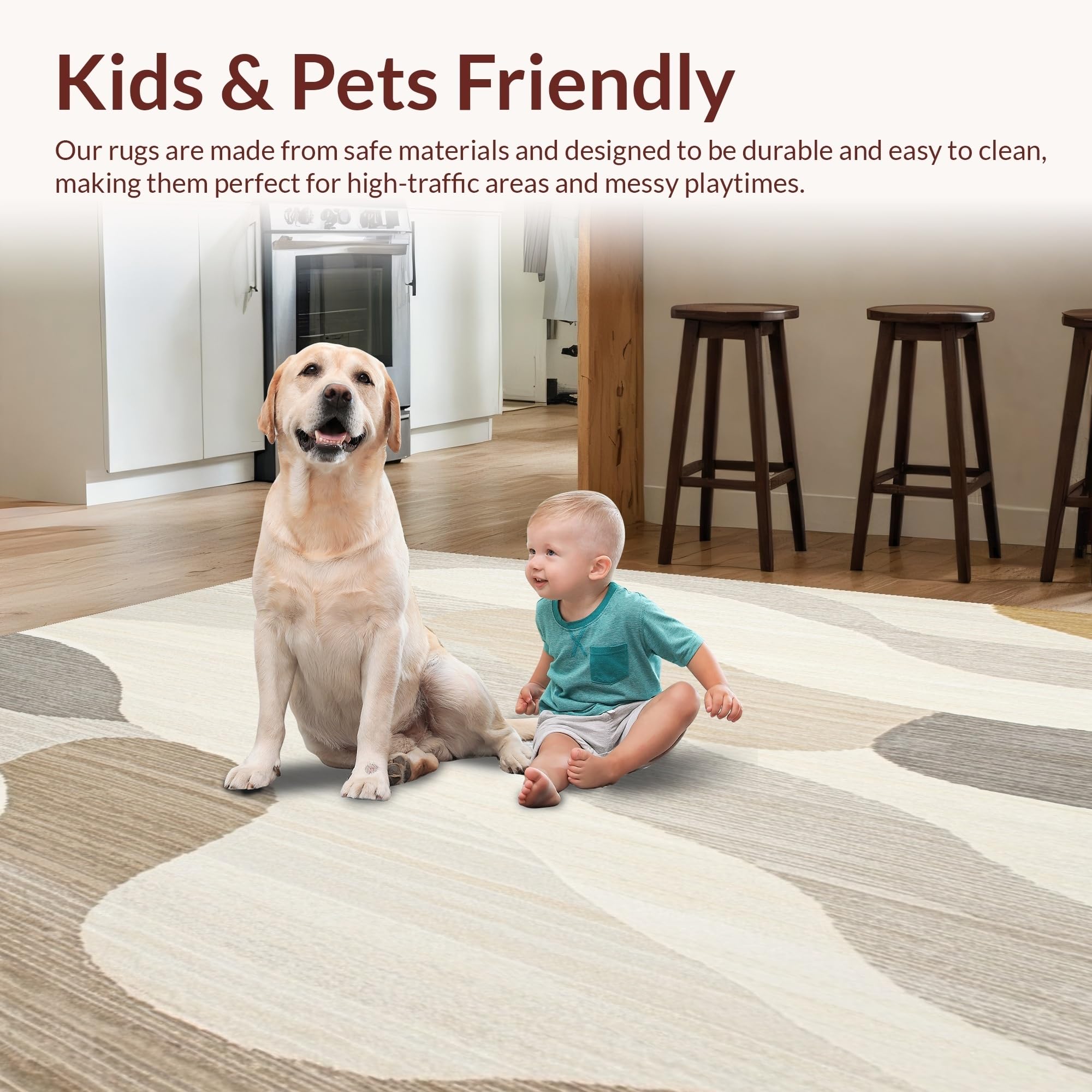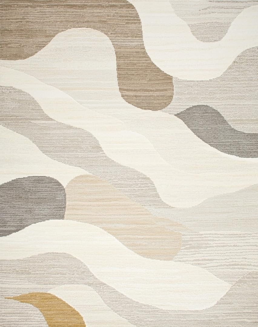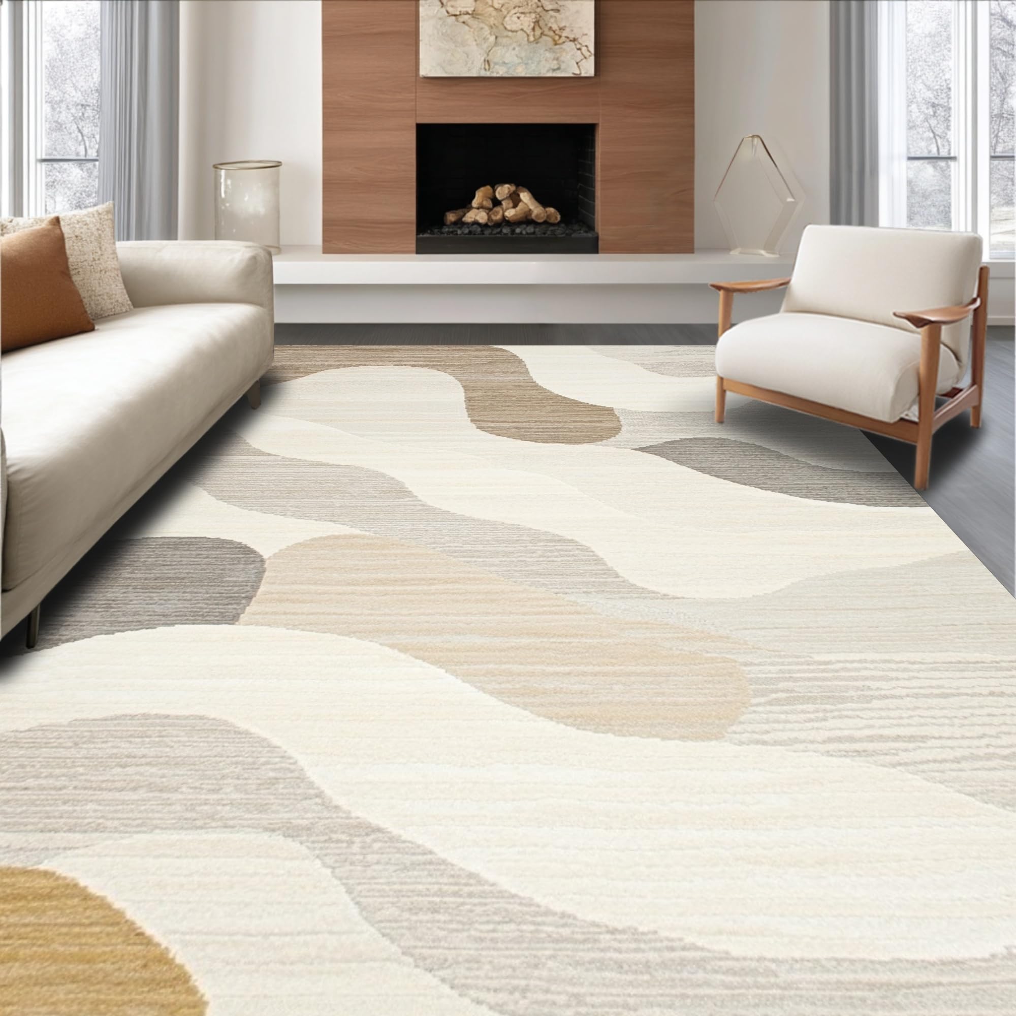 Ultra Soft Area Rug, Non Slip, Stain Resistant, Washable Area Rugs for Living Room, Bedroom, Artistic Area Showcasing Bold Abstract Design in Creamy Tones(Beige) Overview: