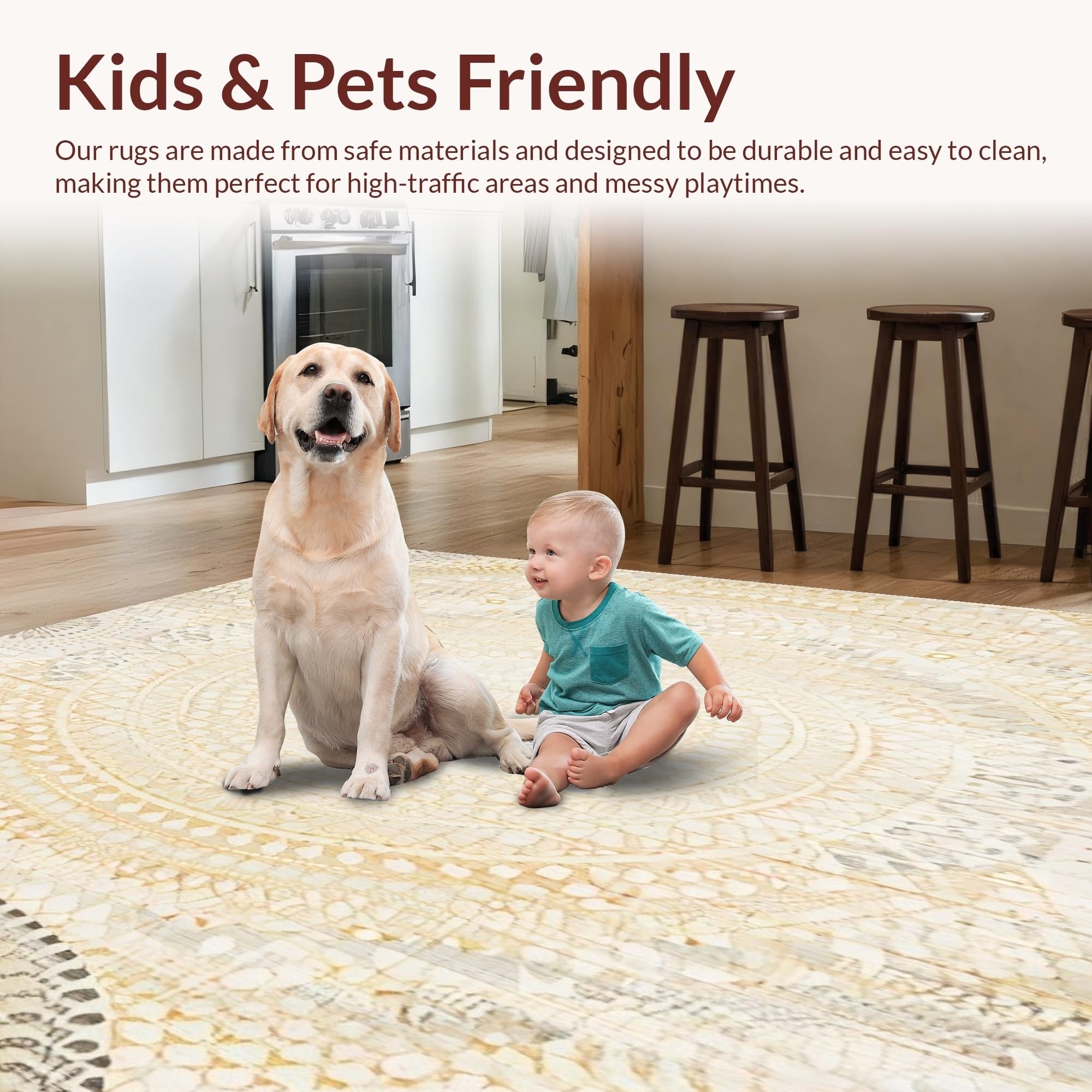 Ultra Soft Area Rug, Non Slip, Stain Resistant, Washable Area Rugs for Living Room, Bedroom, Artistic Area with Circular in Subtle Beige Variations(Beige) Overview: