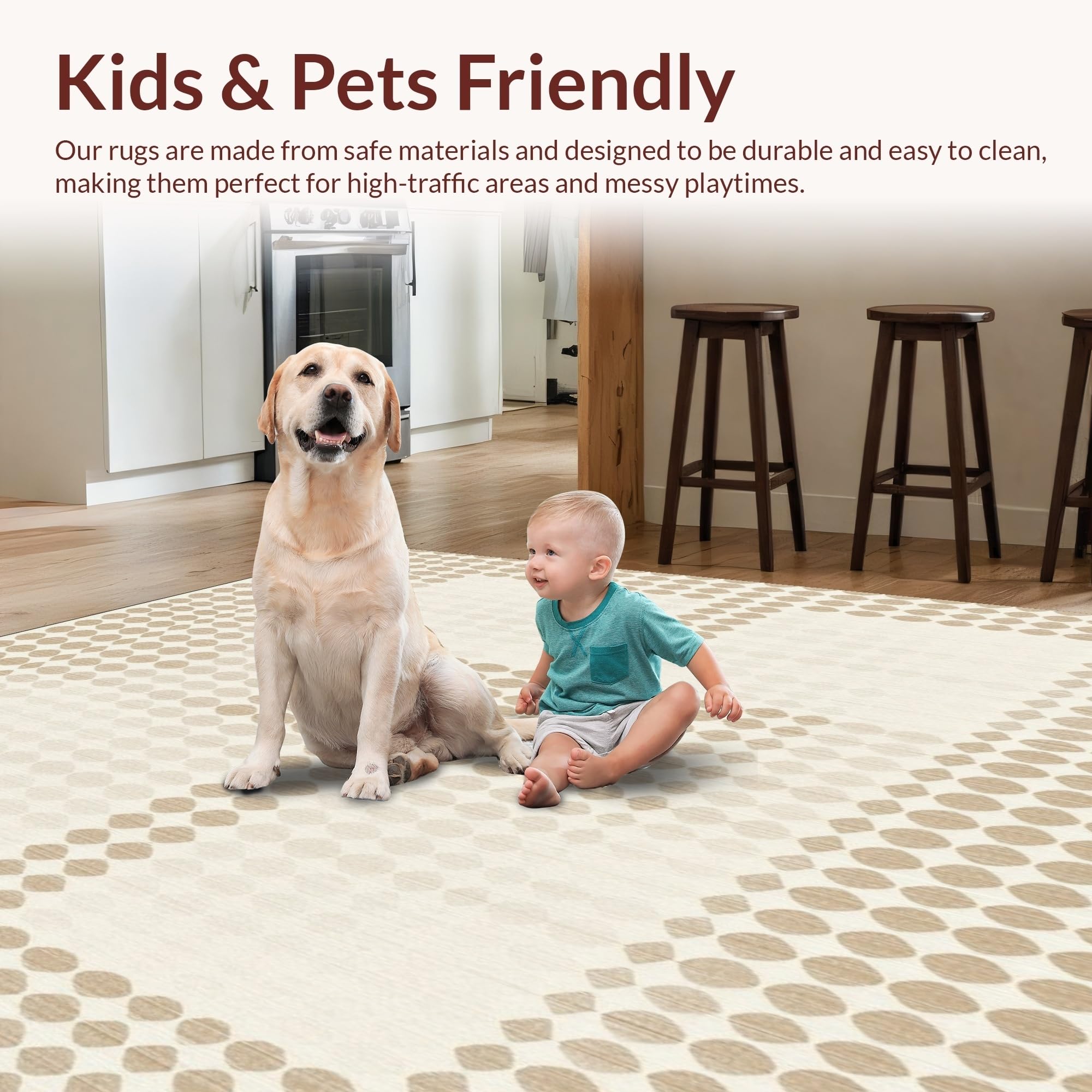 Ultra Soft Area Rug, Non Slip, Stain Resistant, Washable Area Rugs for Living Room, Bedroom, Artistic Area with Geometric Design for Stylish Accents(Beige) Overview:
