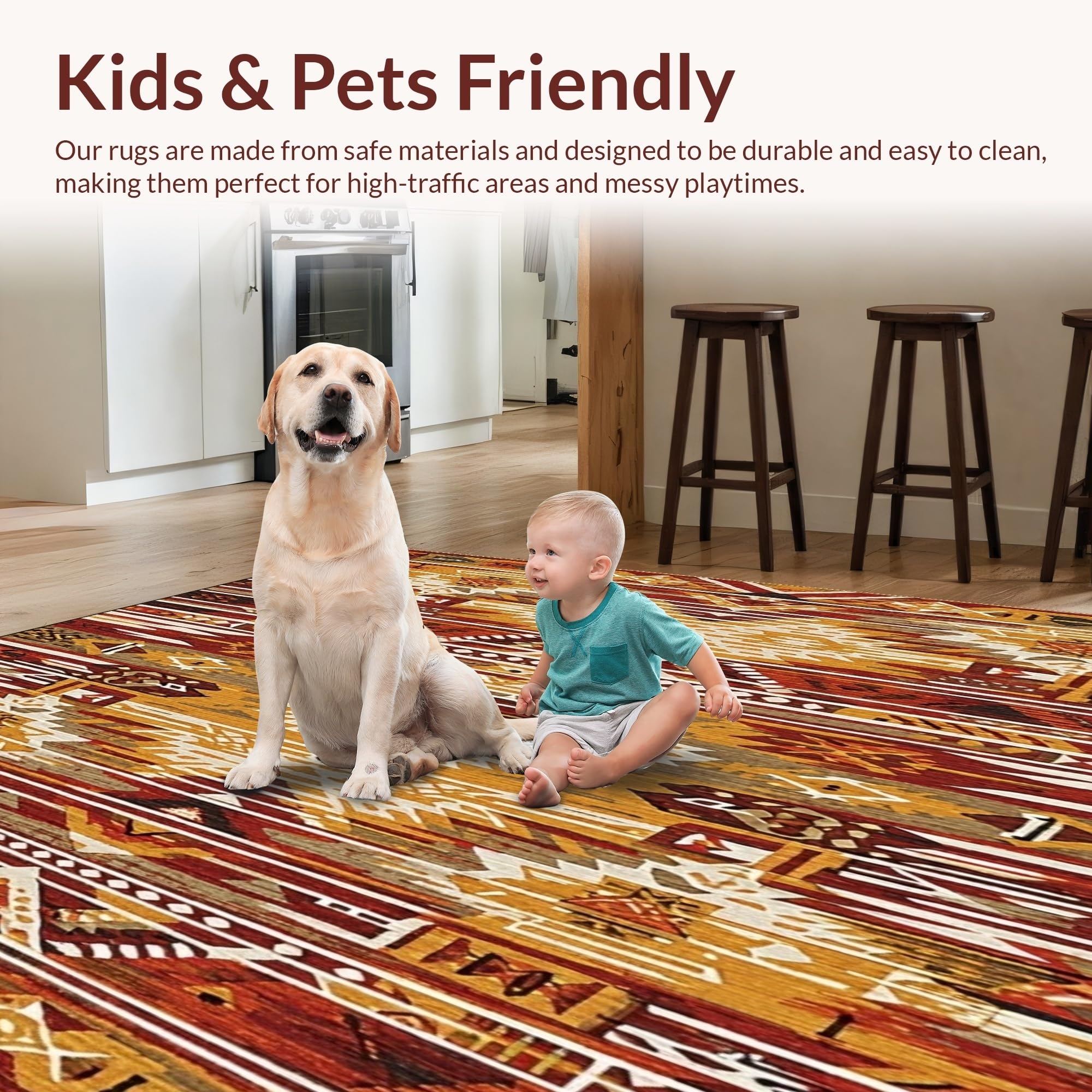 Ultra Soft Area Rug, Non Slip, Stain Resistant, Washable Area Rugs for Living Room, Bedroom, Artistic Area with Rich Browns and Warm Golds Abstract Tribal Design(Red) Overview: