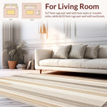 Ultra Soft Area Rug, Non Slip, Stain Resistant, Washable Area Rugs for Living Room, Bedroom, Artistic Area with Unique Textured Stripes in Earthy Beige Shades(Beige) Overview: