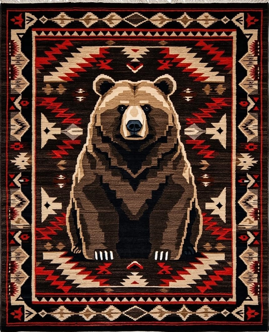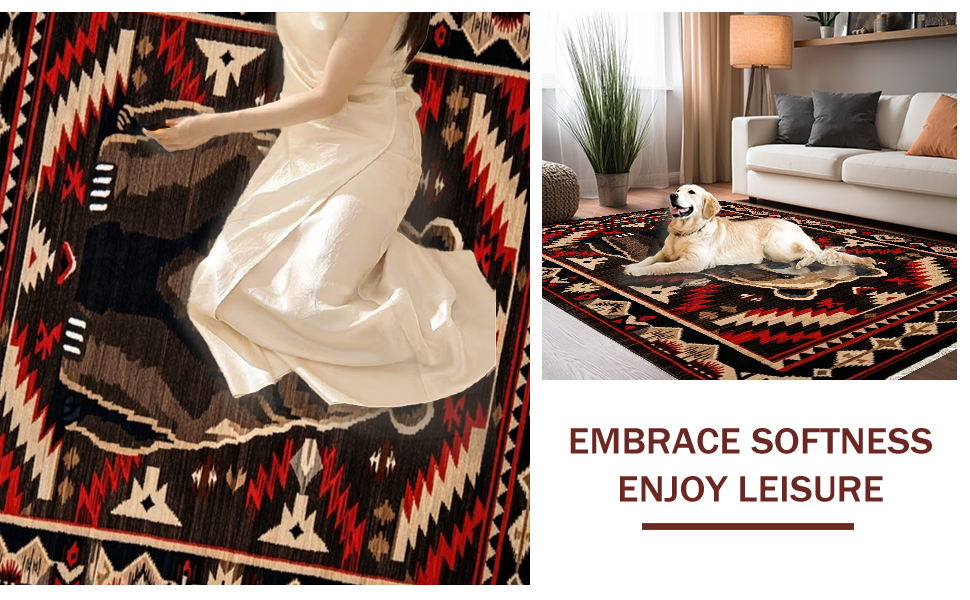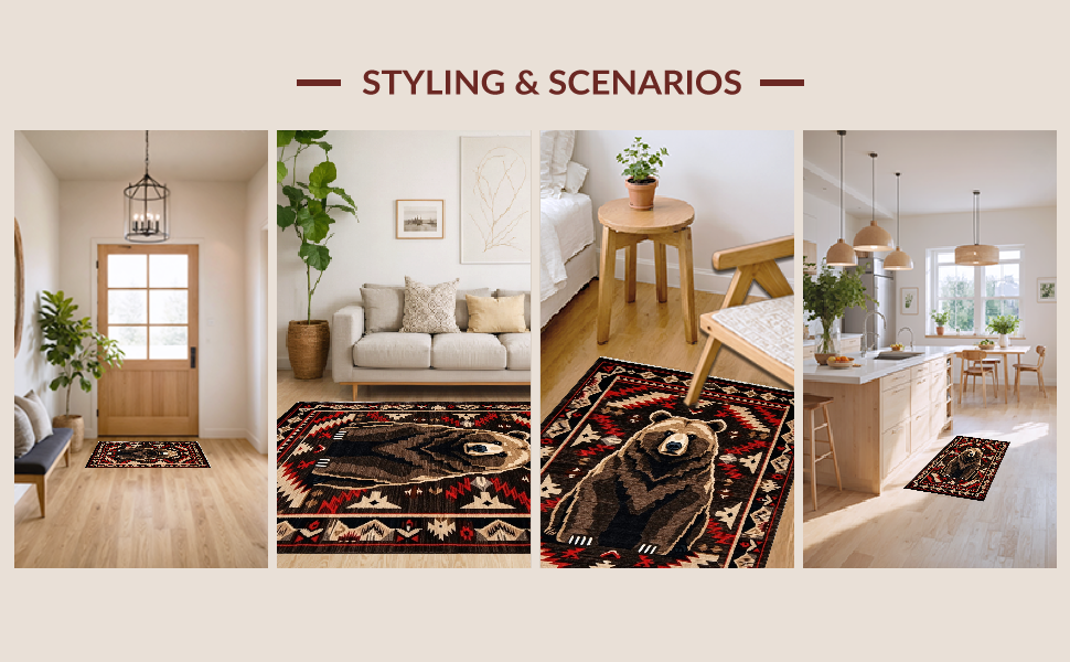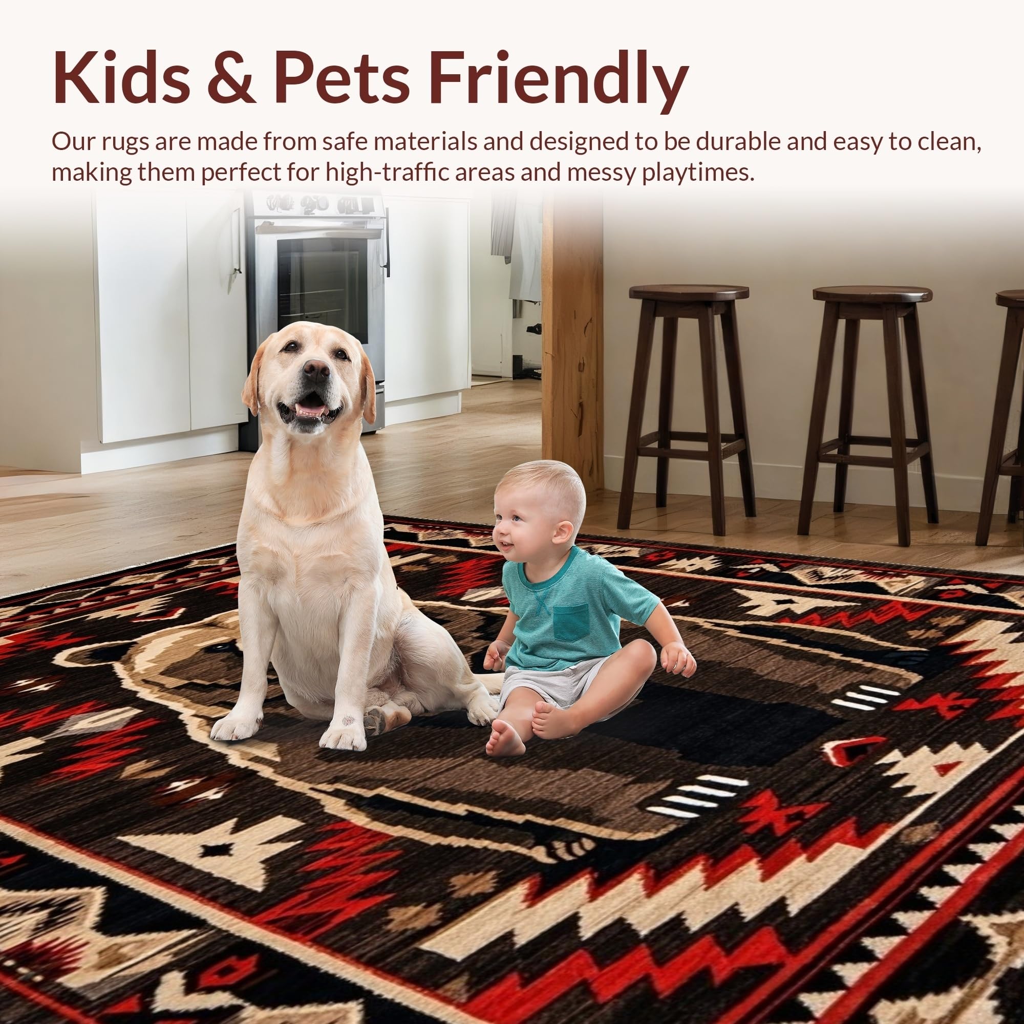 Ultra Soft Area Rug, Non Slip, Stain Resistant, Washable Area Rugs for Living Room, Bedroom, Artistic Bear Silhouette Arrangement(Brown) Overview: