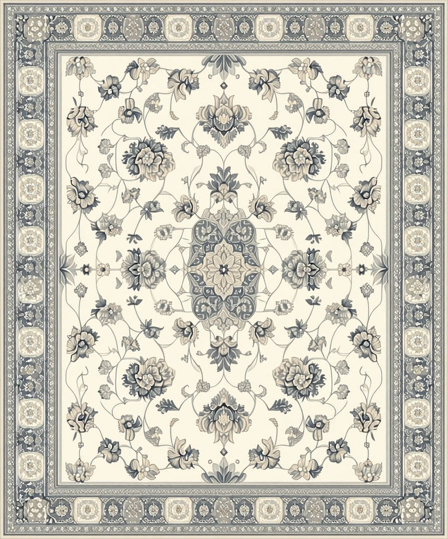 Artistic Beige and Smoke Patterned with Ornate Geometric Floral Motifs(Beige)