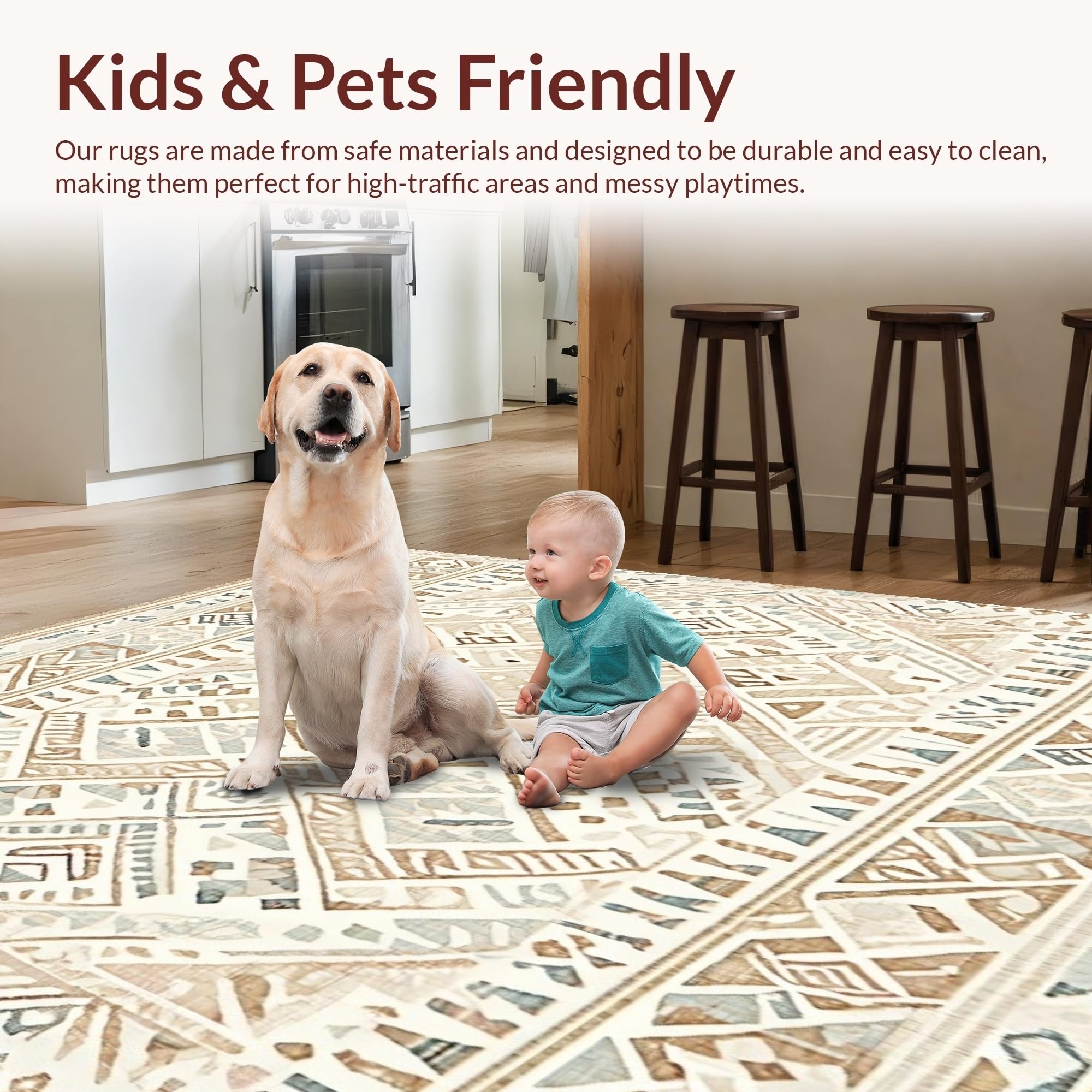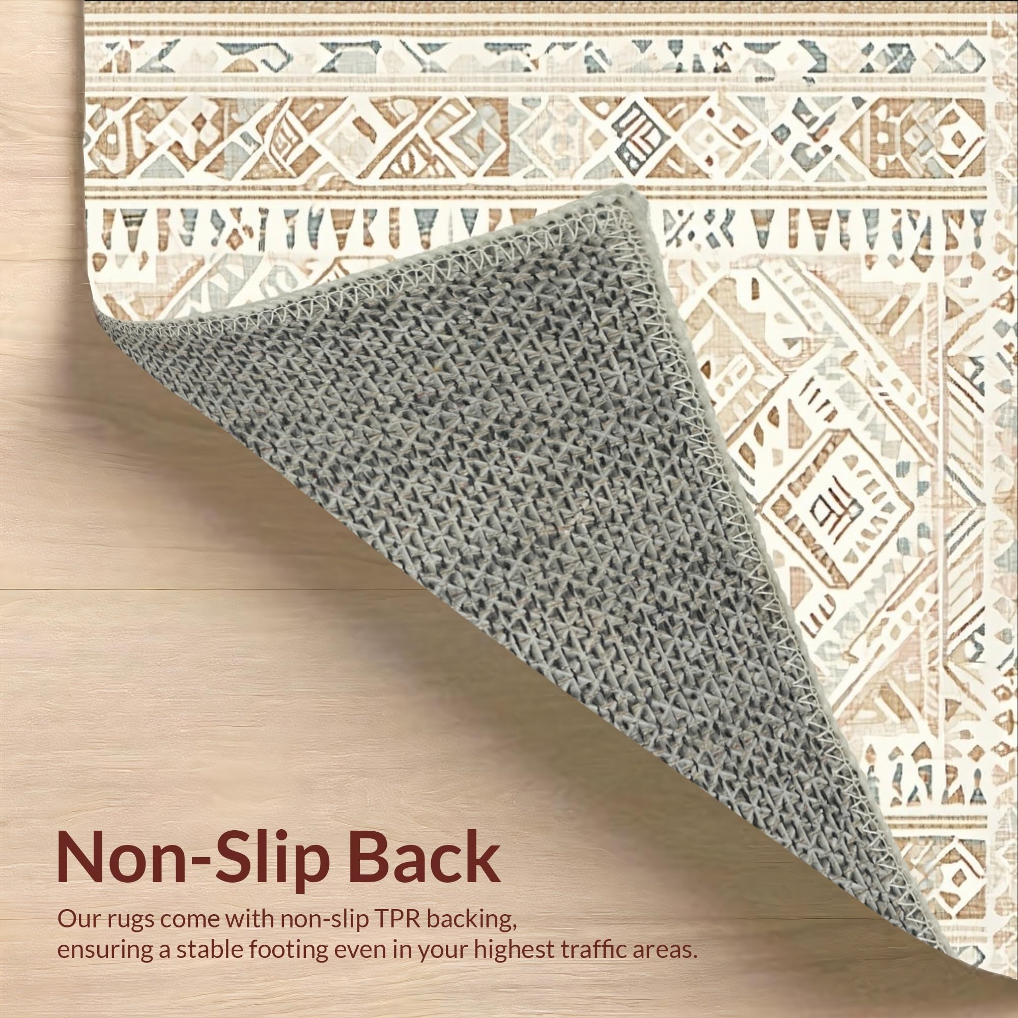 Ultra Soft Area Rug, Non Slip, Stain Resistant, Washable Area Rugs for Living Room, Bedroom, Artistic Beige Ivory Area Tribal Design(Beige) Overview: