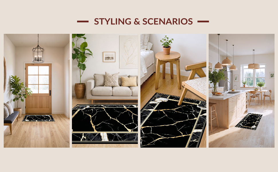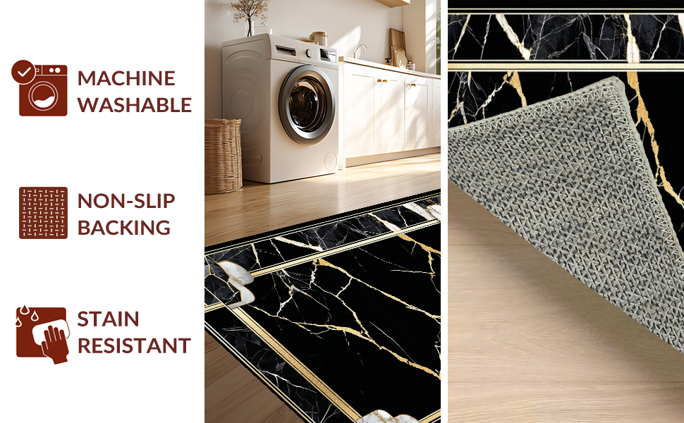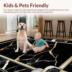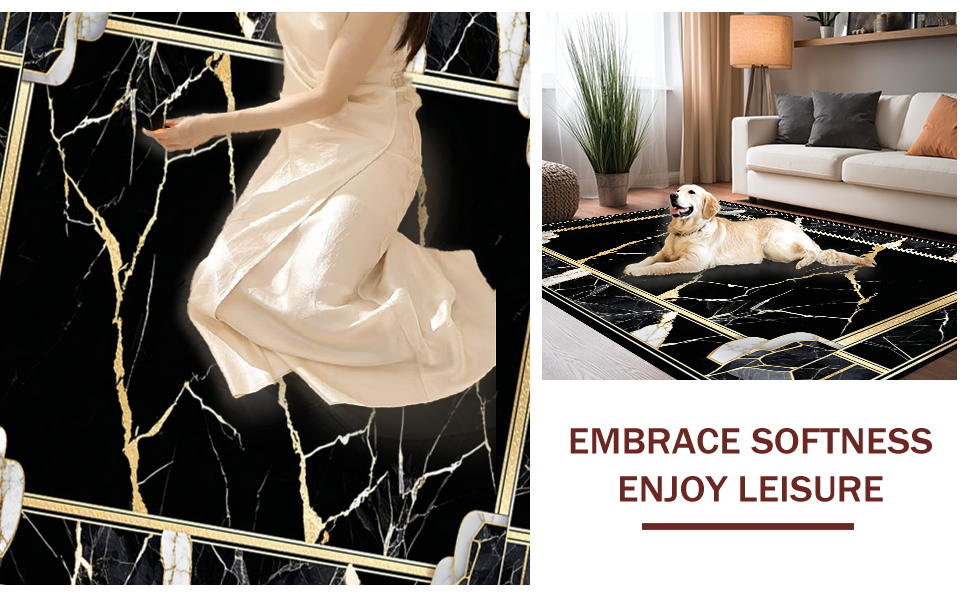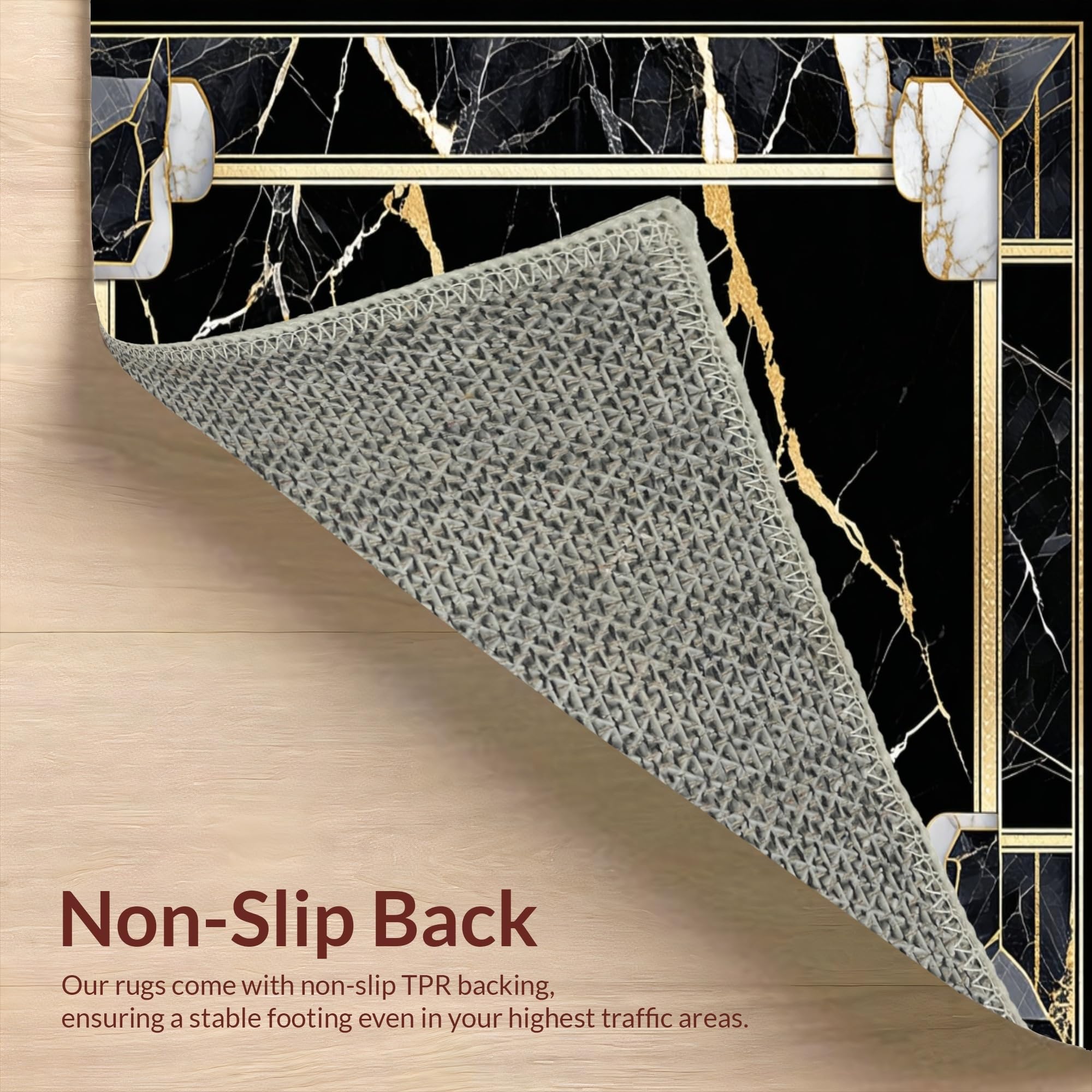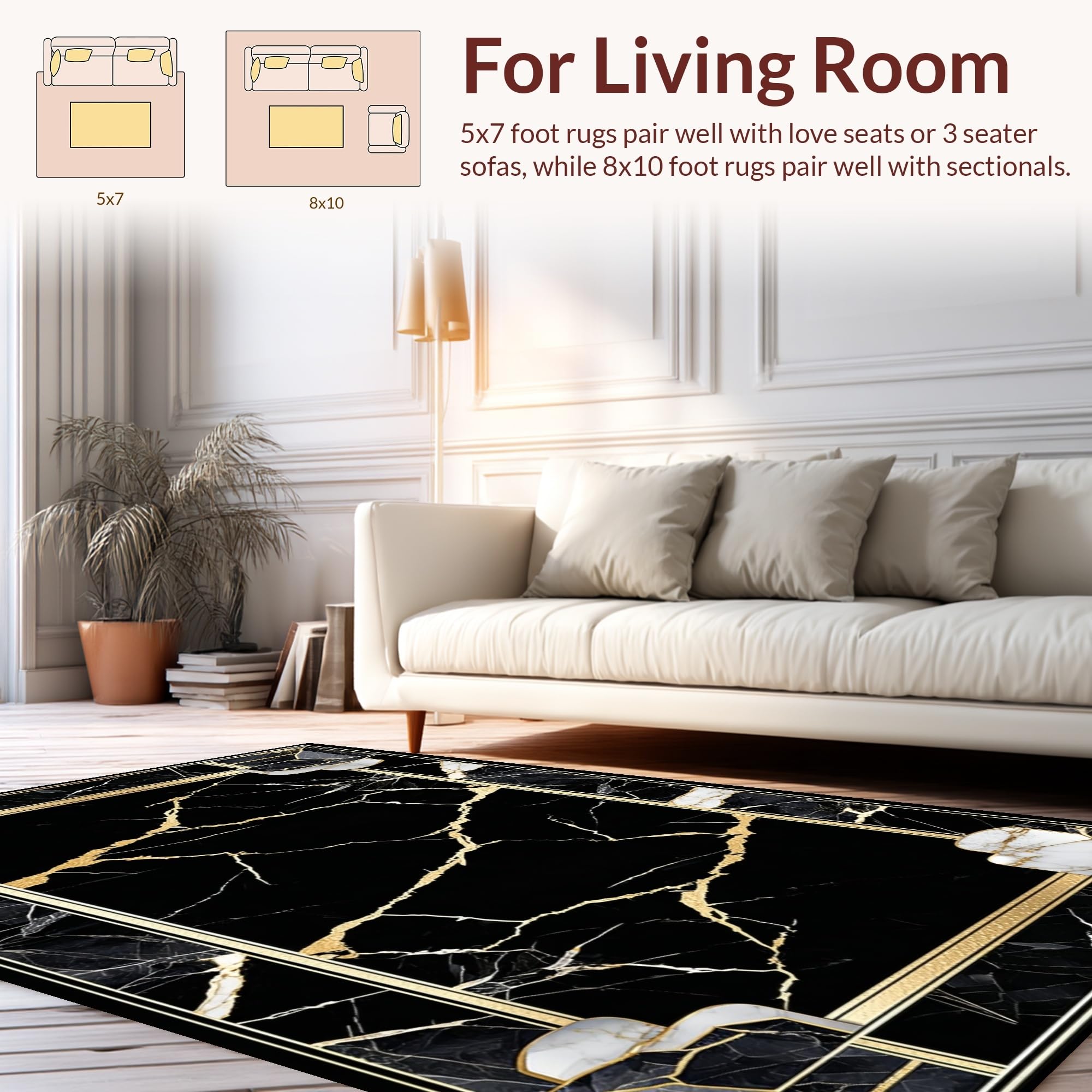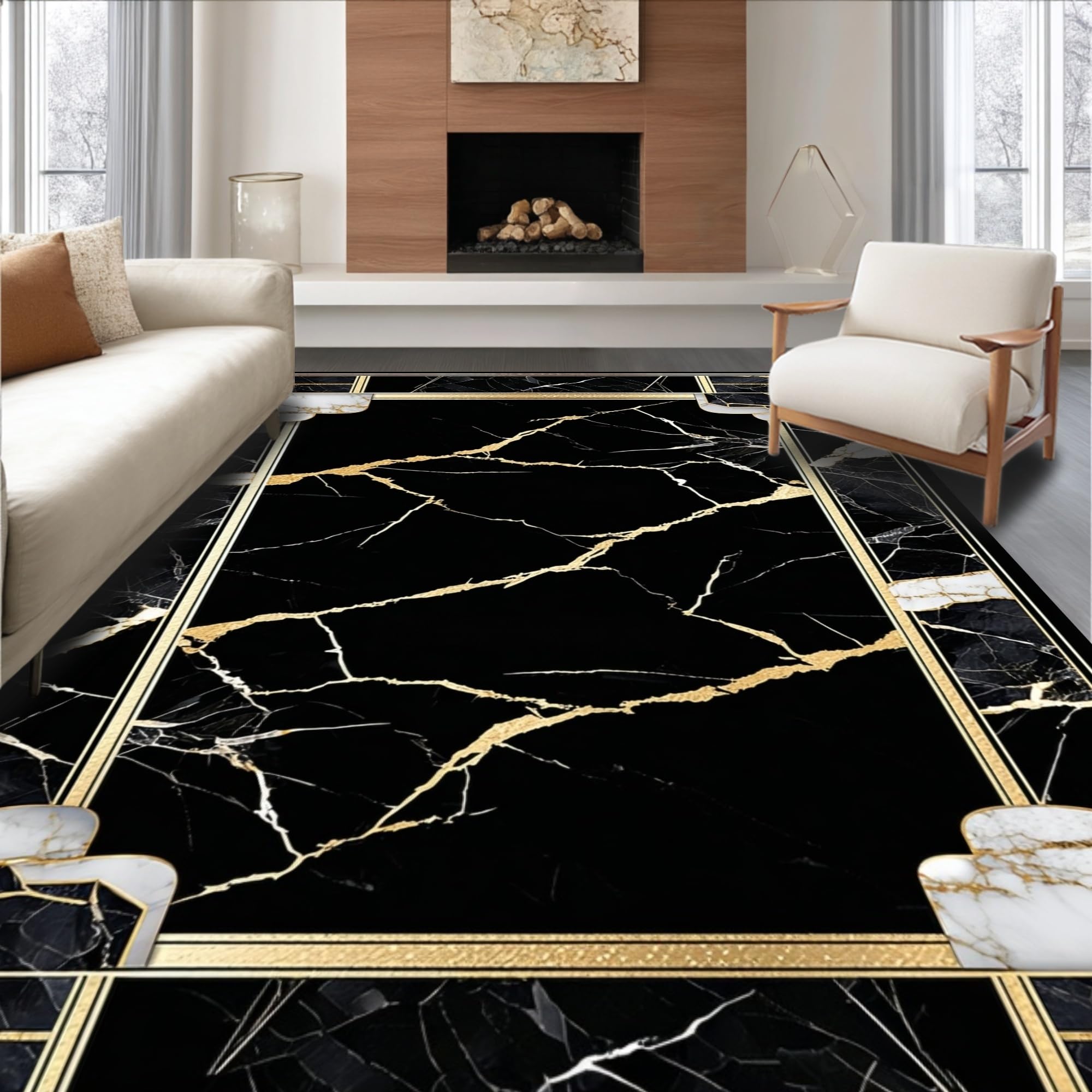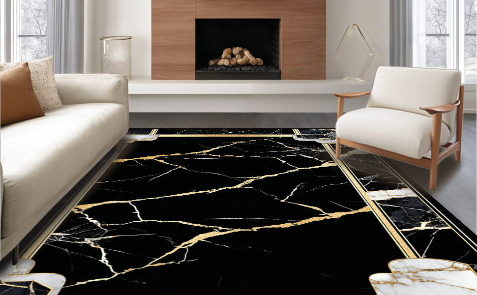 Ultra Soft Area Rug, Non Slip, Stain Resistant, Washable Area Rugs for Living Room, Bedroom, Artistic Black and Gold Fusion(Black) Overview: