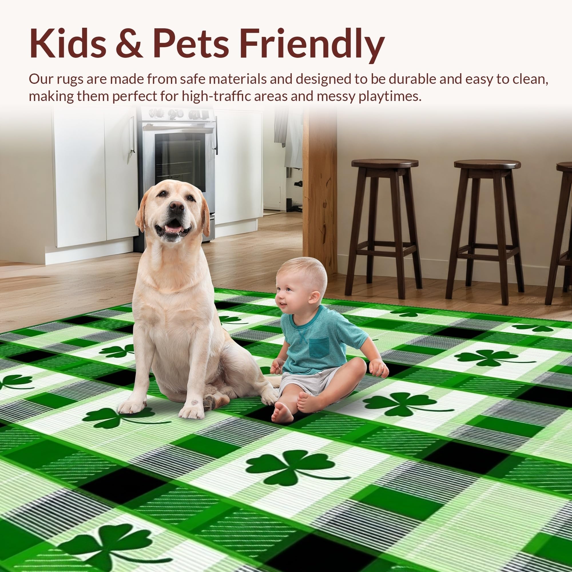 Ultra Soft Area Rug, Non Slip, Stain Resistant, Washable Area Rugs for Living Room, Bedroom, Artistic Black and Green Fusion(Green) Overview: