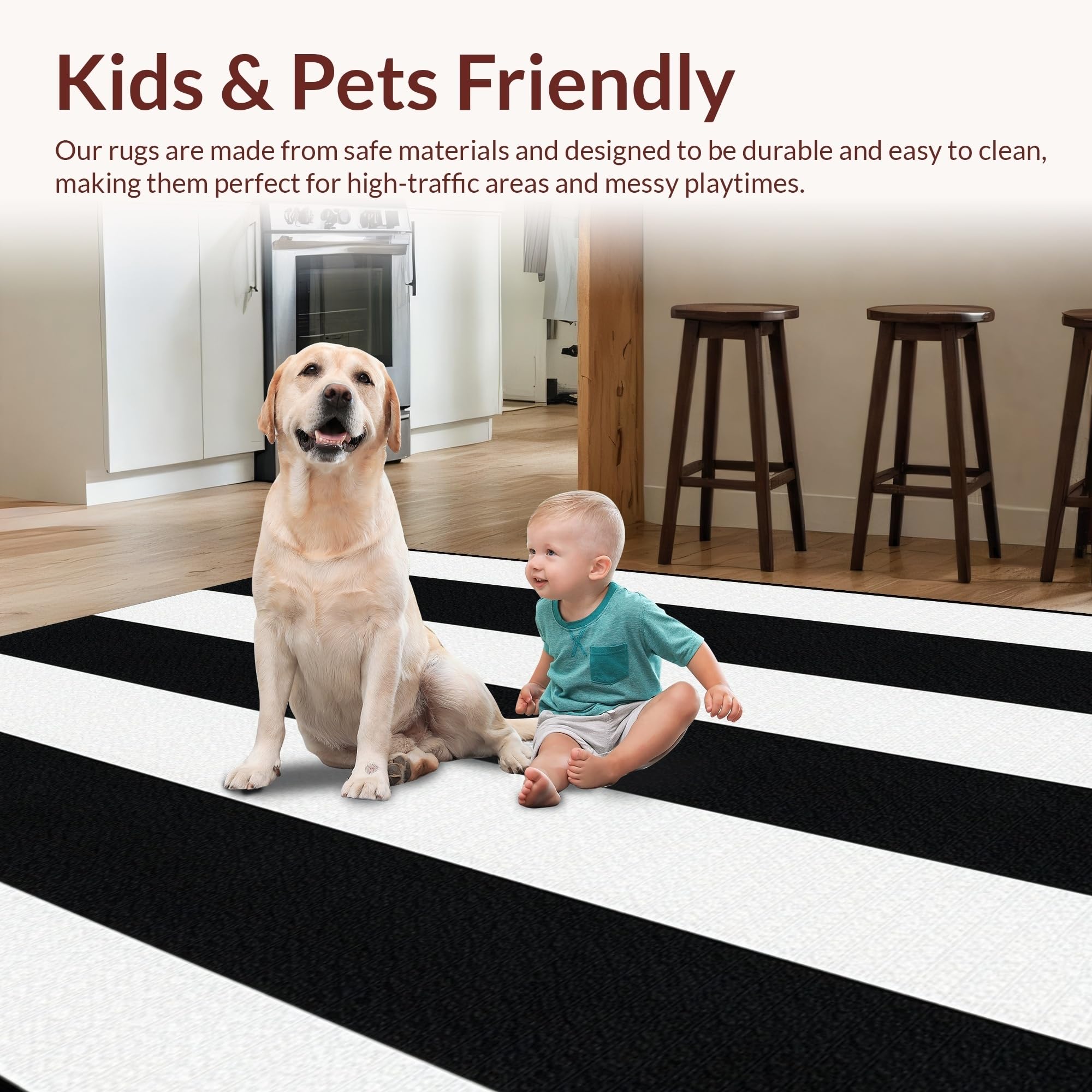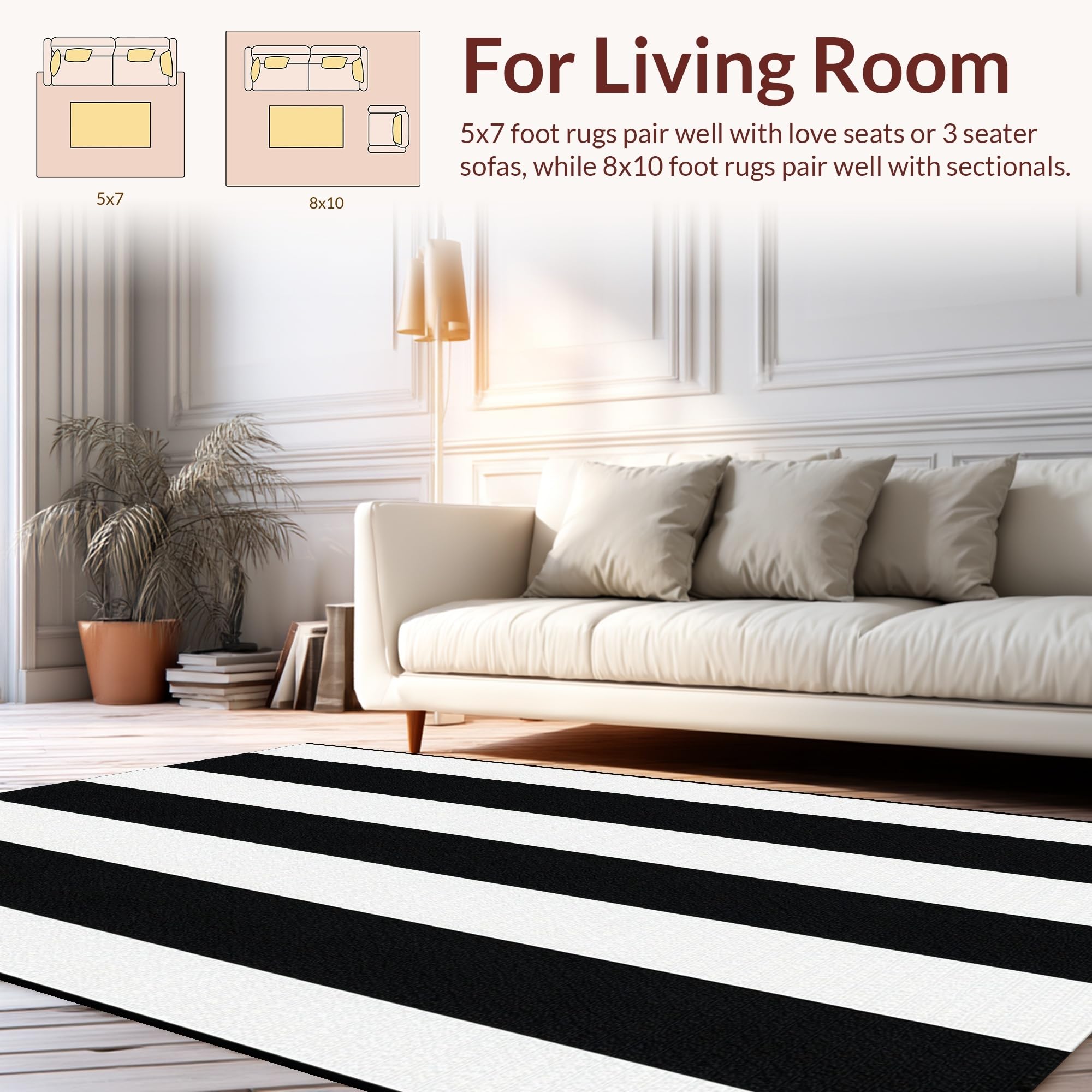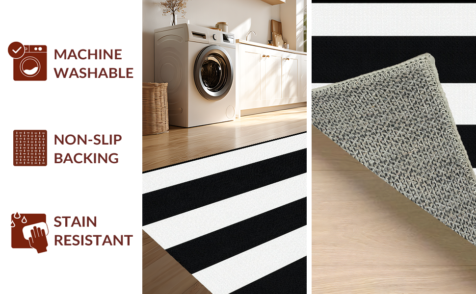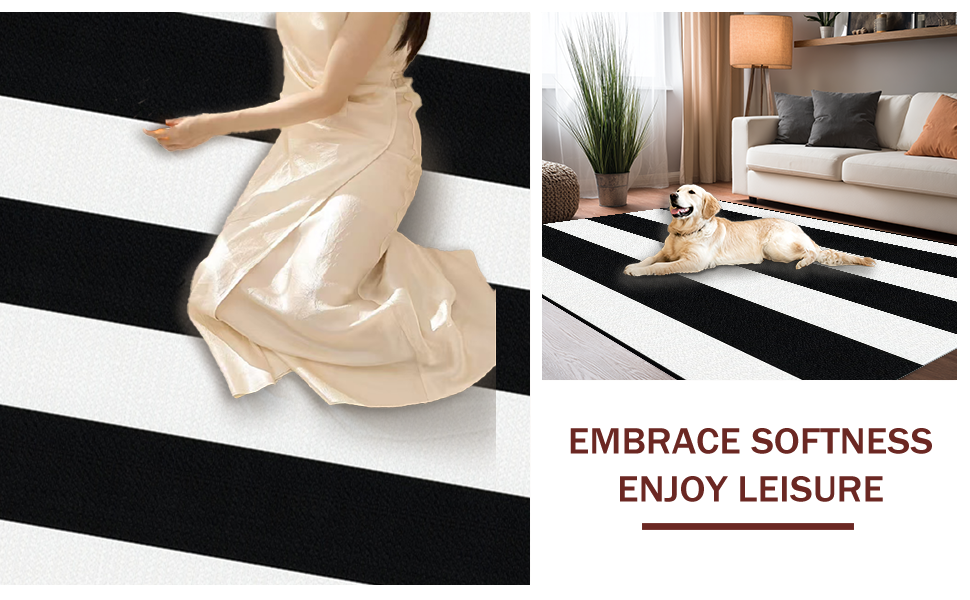 Ultra Soft Area Rug, Non Slip, Stain Resistant, Washable Area Rugs for Living Room, Bedroom, Artistic Black White Patterned Canvas(Black) Overview: