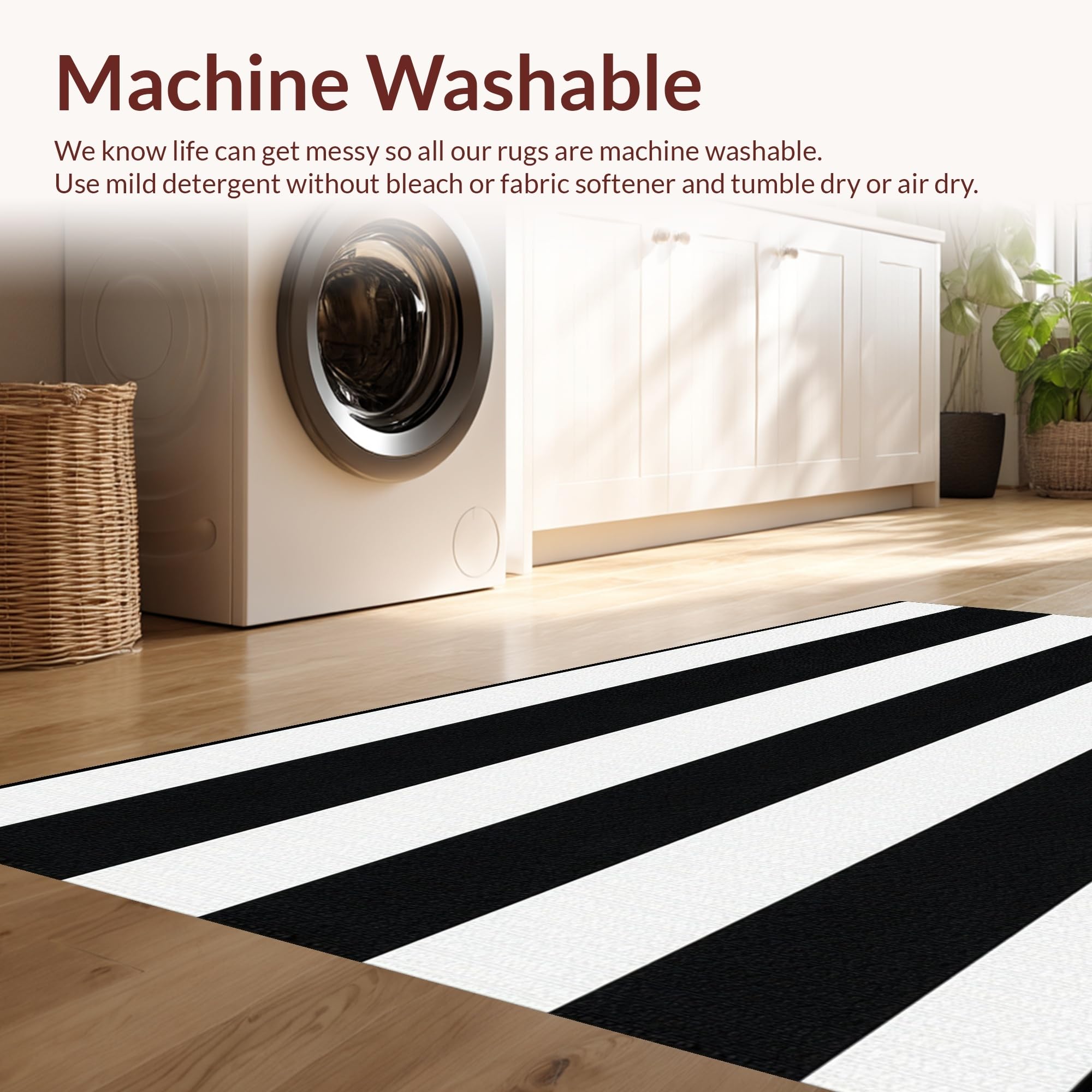 - Machine Washable: Our rugs can be easily thrown in the wash machine.