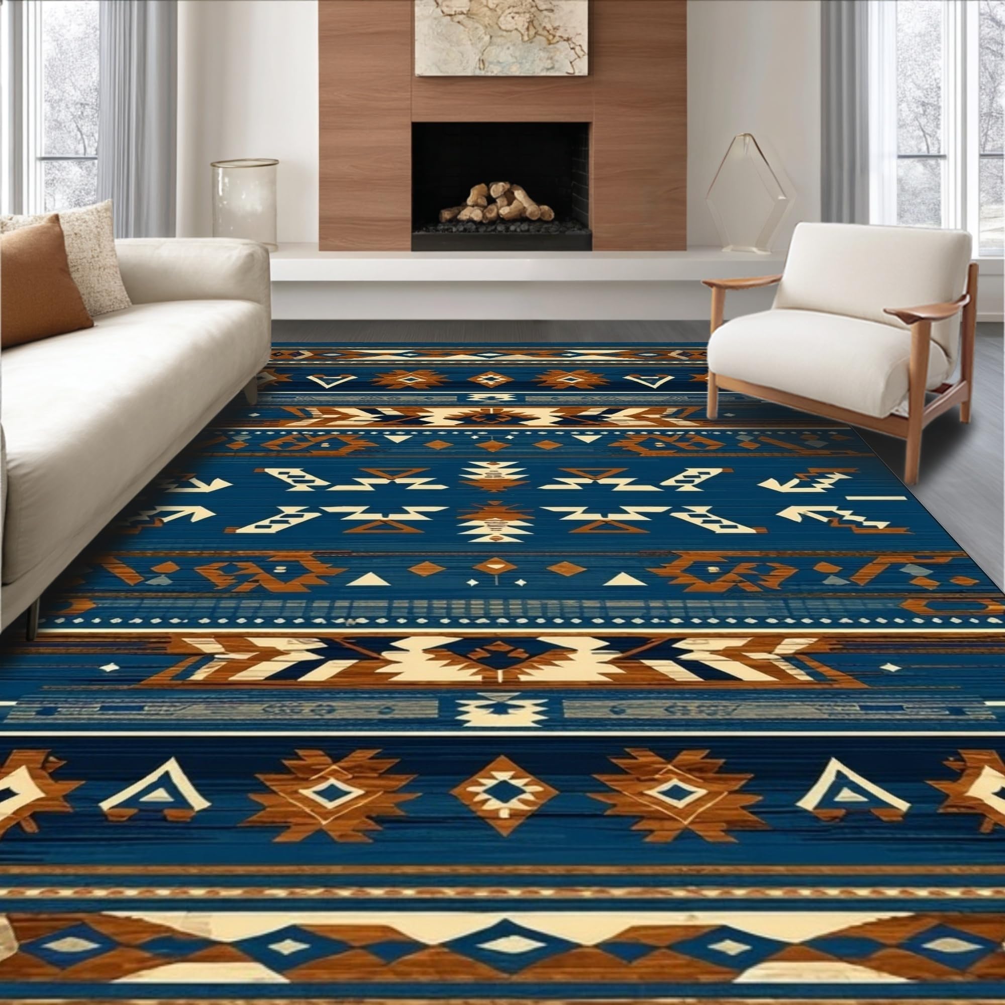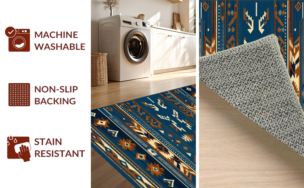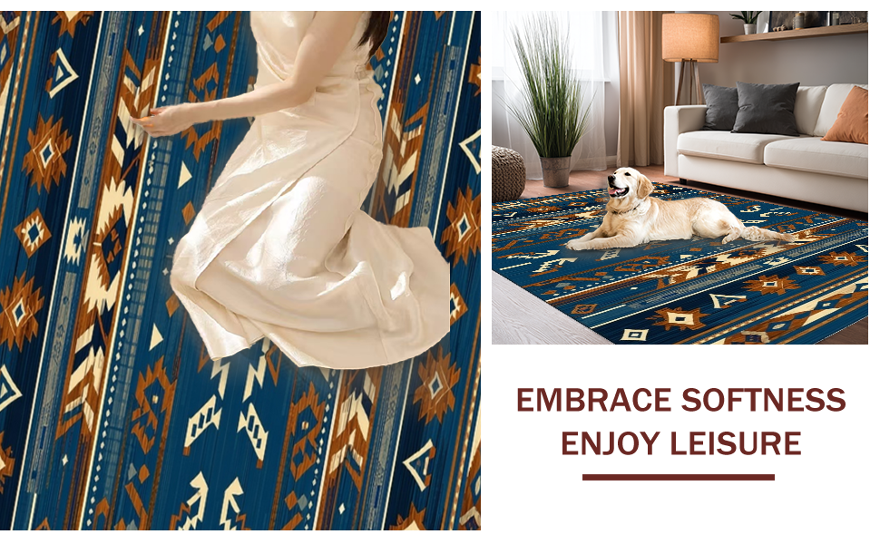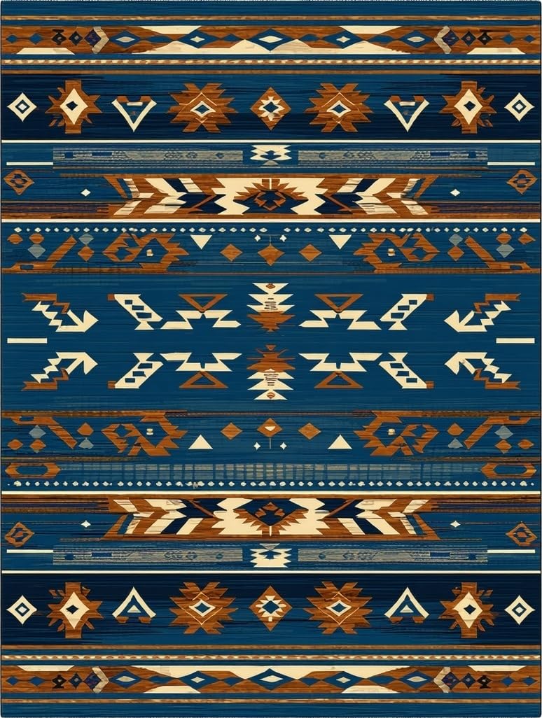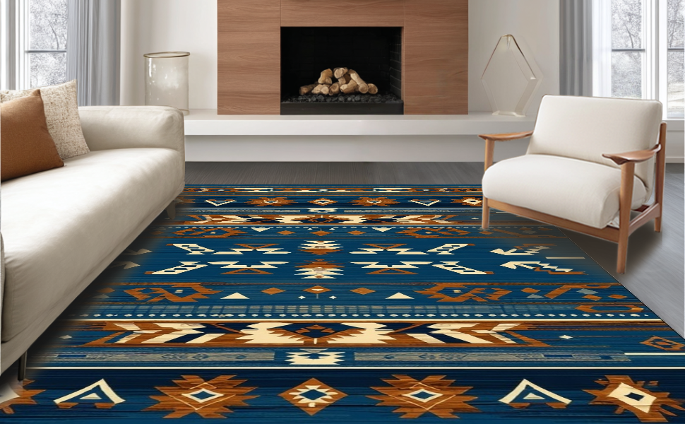 Ultra Soft Area Rug, Non Slip, Stain Resistant, Washable Area Rugs for Living Room, Bedroom, Artistic Blue and Brown Weave(Blue) Overview: