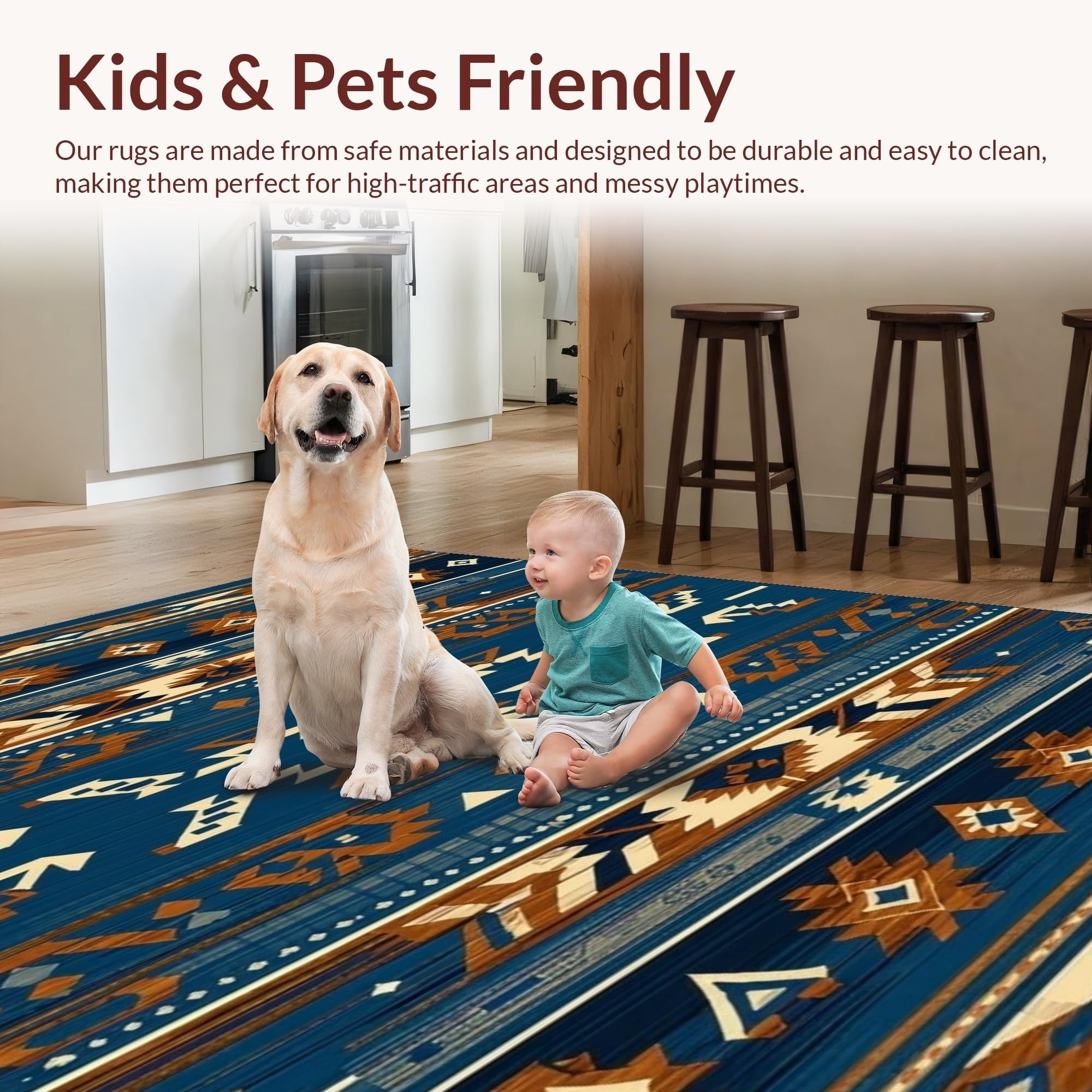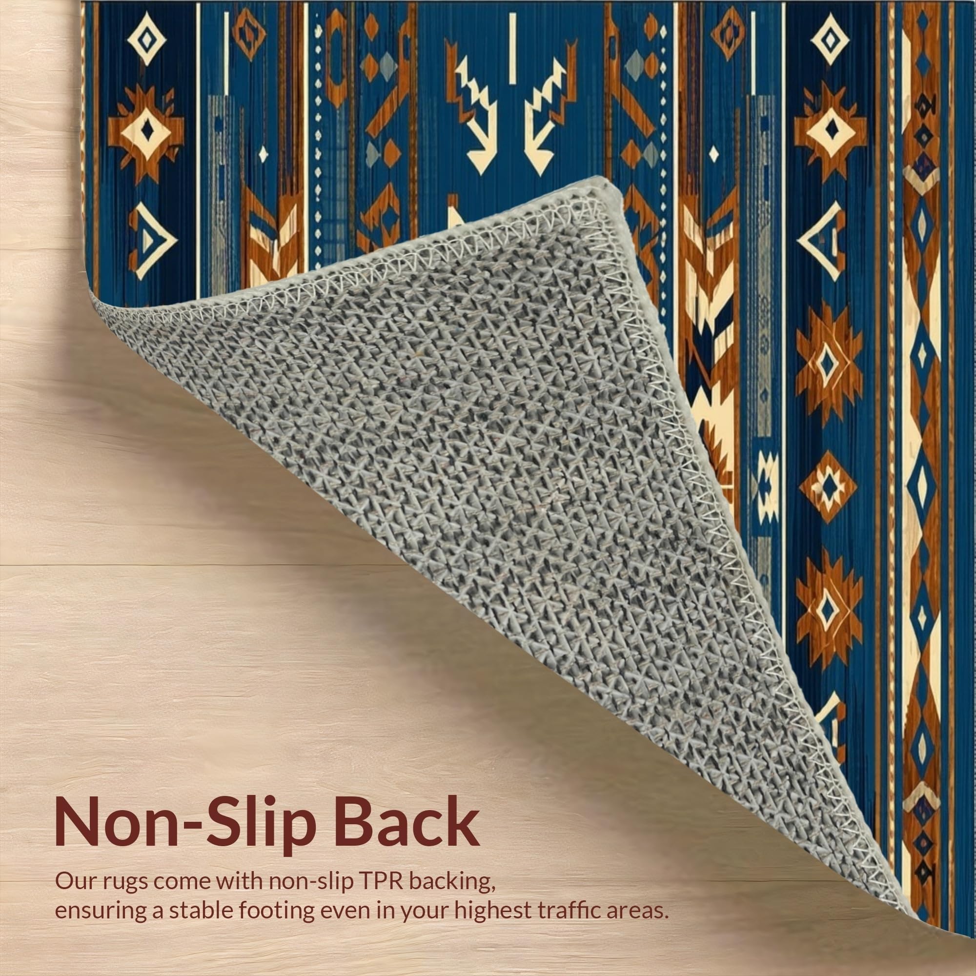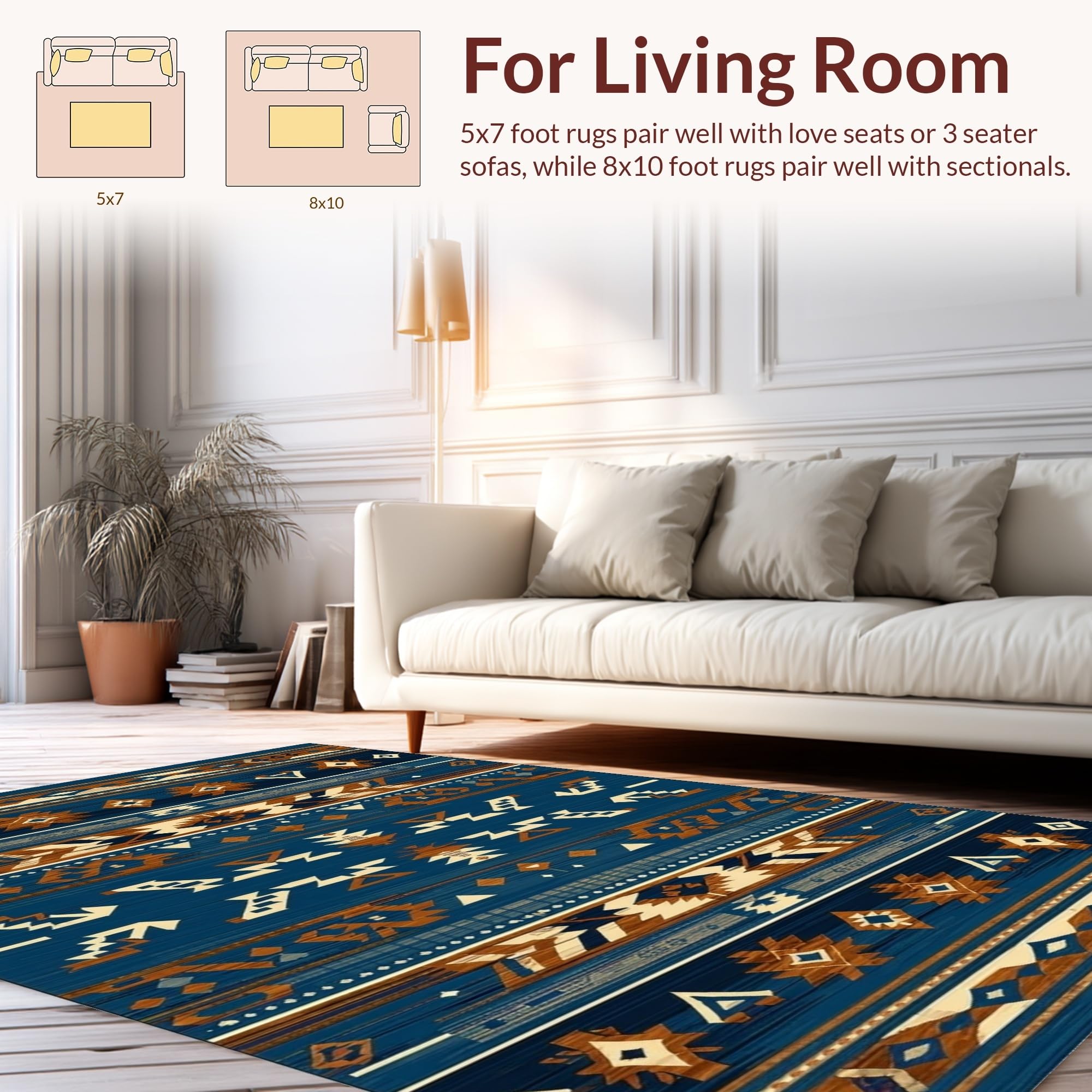 Ultra Soft Area Rug, Non Slip, Stain Resistant, Washable Area Rugs for Living Room, Bedroom, Artistic Blue and Brown Weave(Blue) Overview: