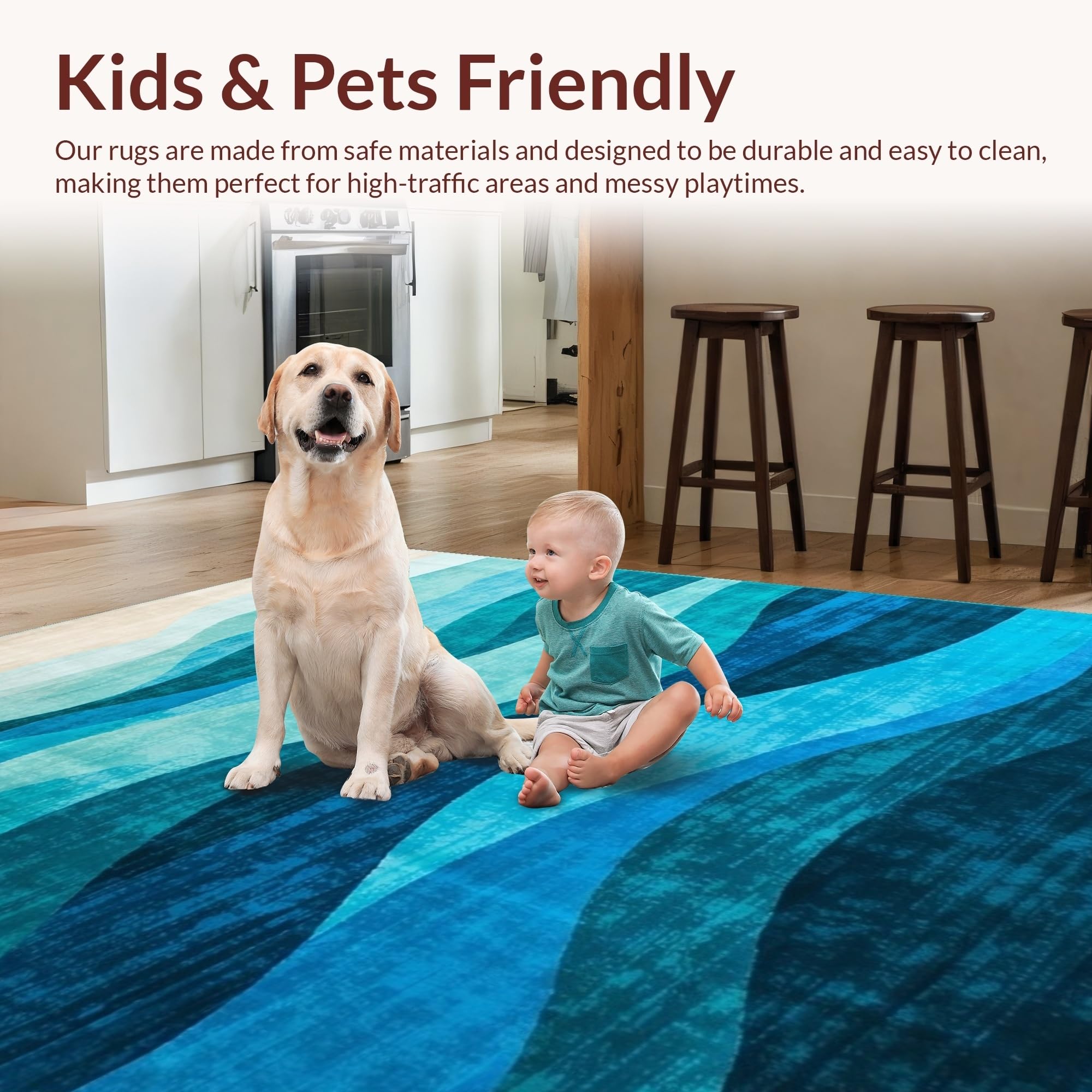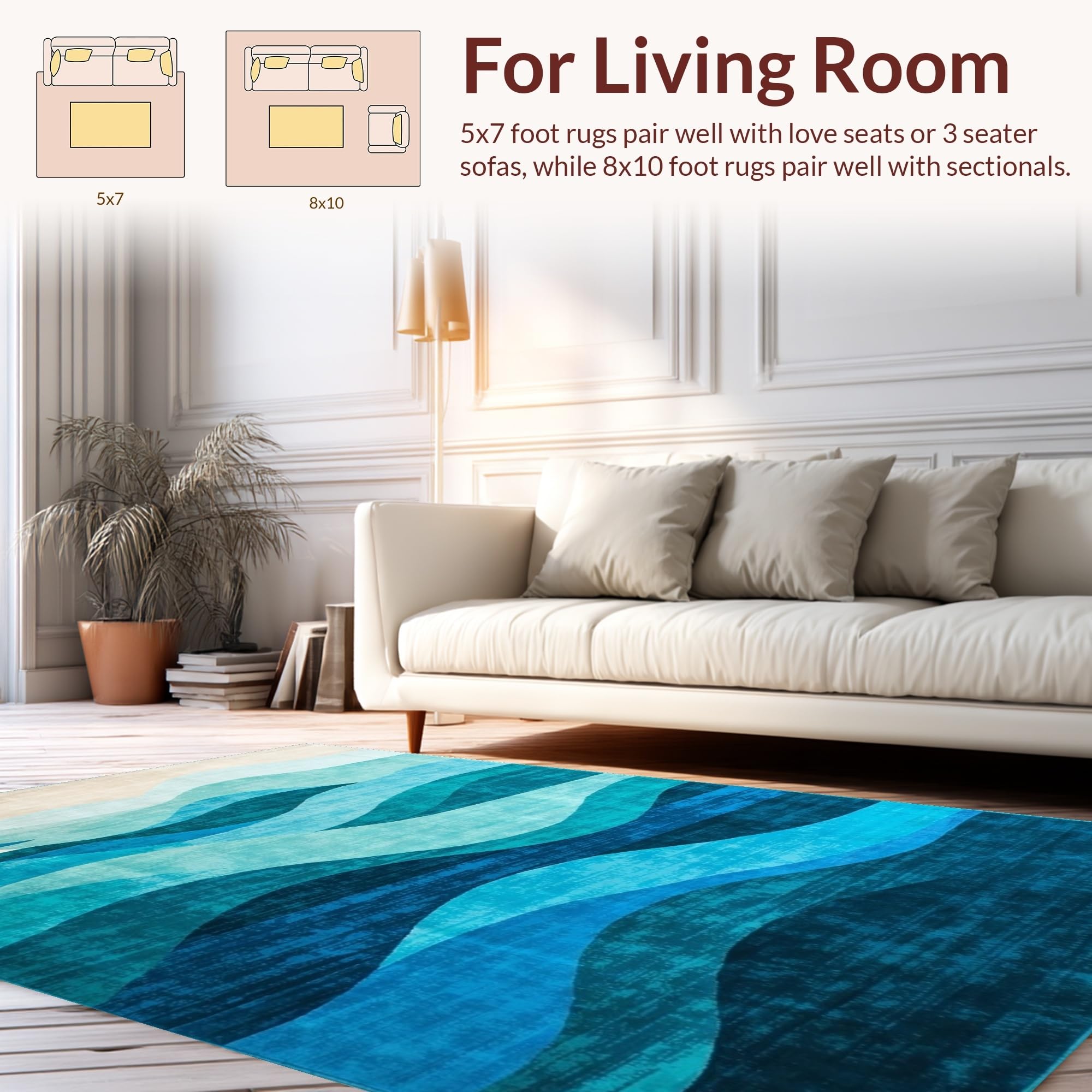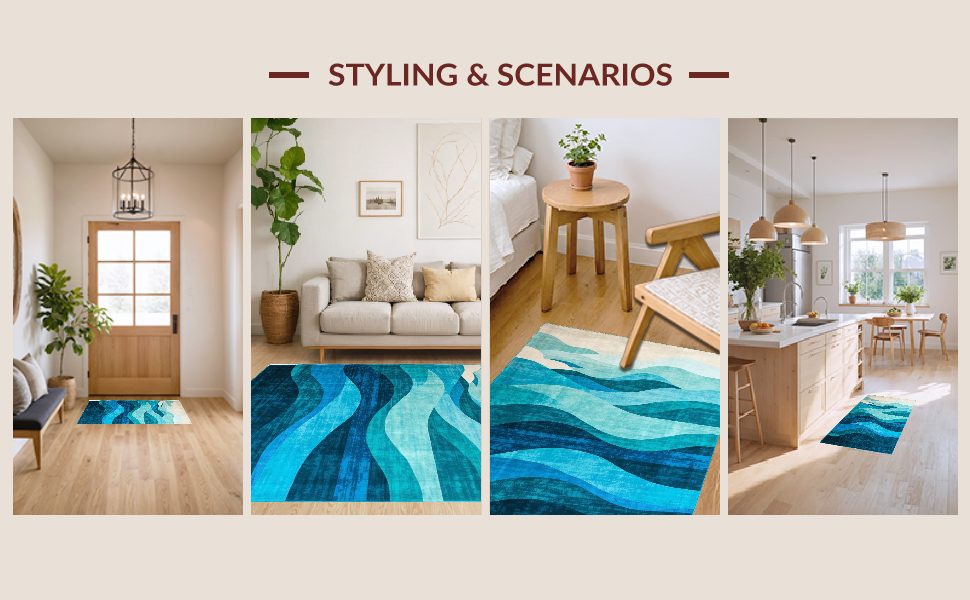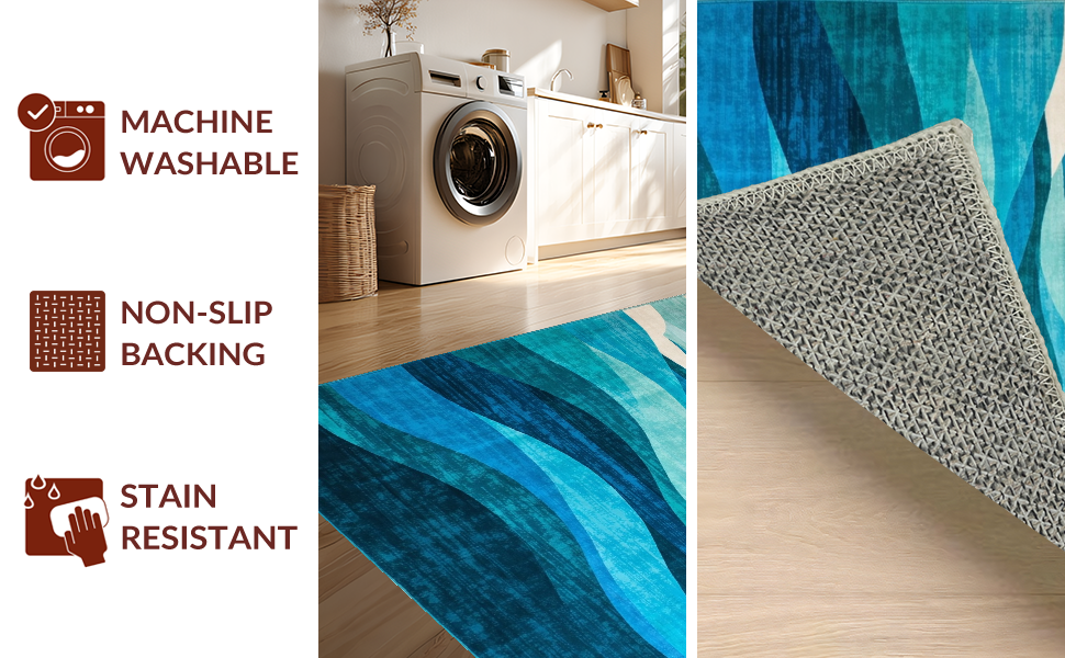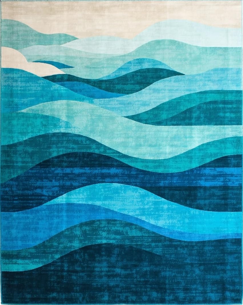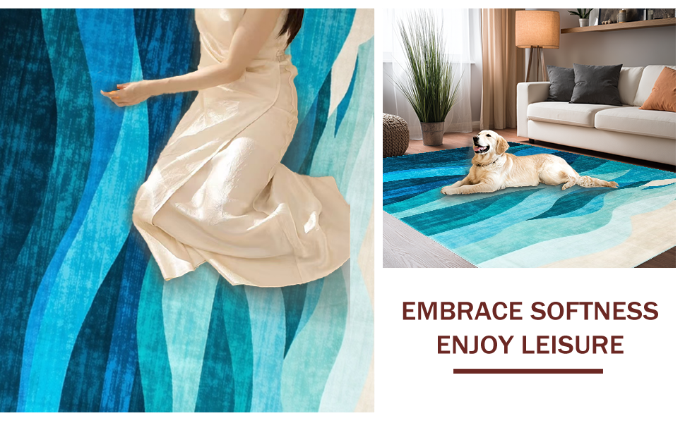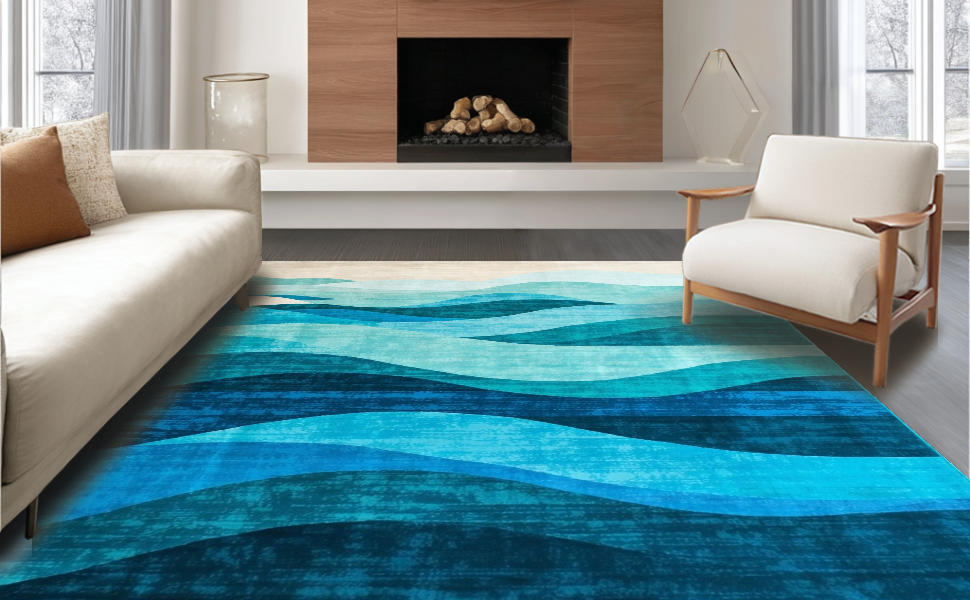 Ultra Soft Area Rug, Non Slip, Stain Resistant, Washable Area Rugs for Living Room, Bedroom, Artistic Blue Tides Visual Theme(Blue) Overview: