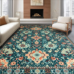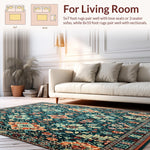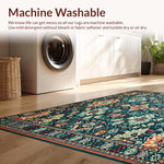 Ultra Soft Area Rug, Non Slip, Stain Resistant, Washable Area Rugs for Living Room, Bedroom, Artistic Boho Area with Vibrant Teal and Terracotta Floral(Blue) Overview: