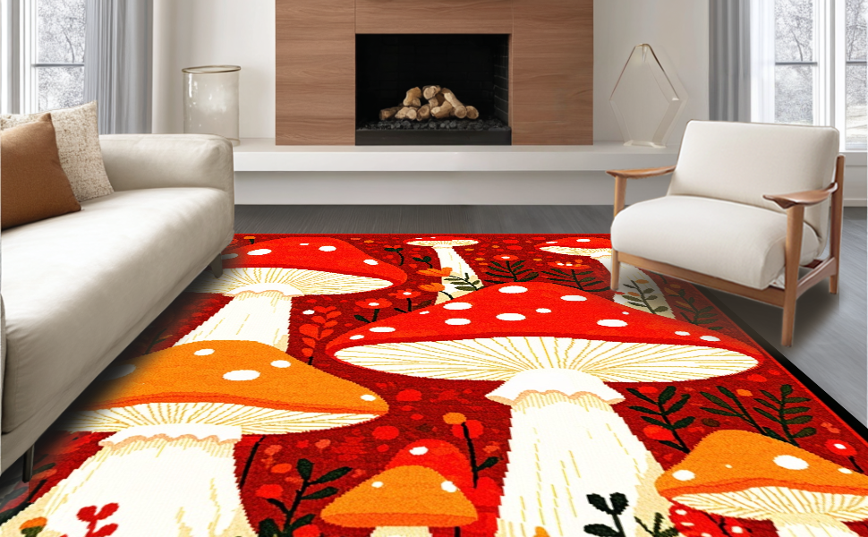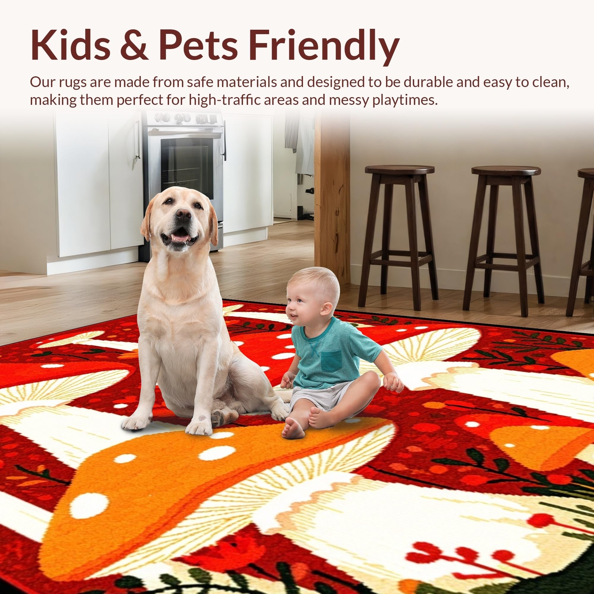 Ultra Soft Area Rug, Non Slip, Stain Resistant, Washable Area Rugs for Living Room, Bedroom, Artistic Bold Nature Element Style(Red) Overview: