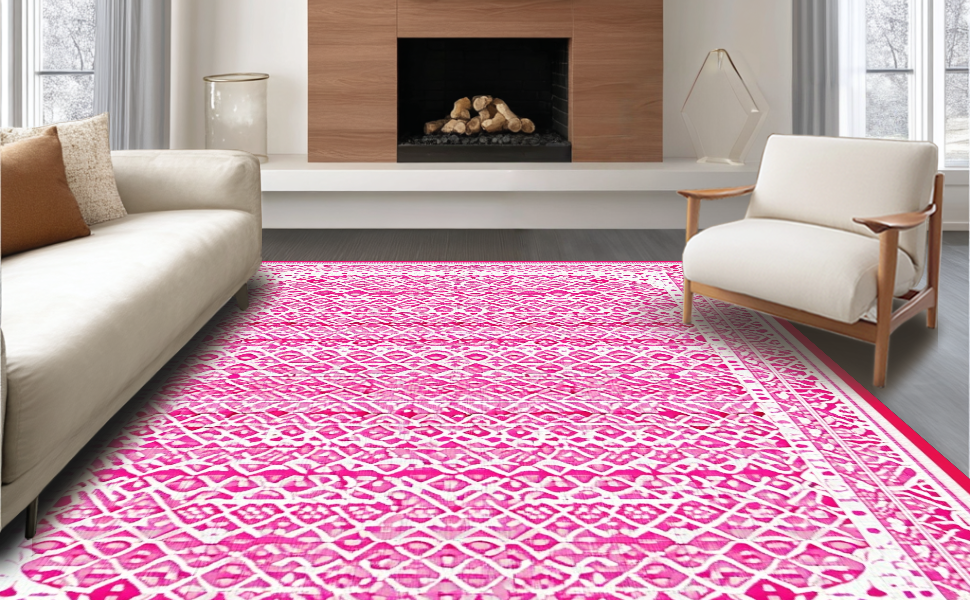 Ultra Soft Area Rug, Non Slip, Stain Resistant, Washable Area Rugs for Living Room, Bedroom, Artistic Bright Irregular Wave Pattern(Pink) Overview: