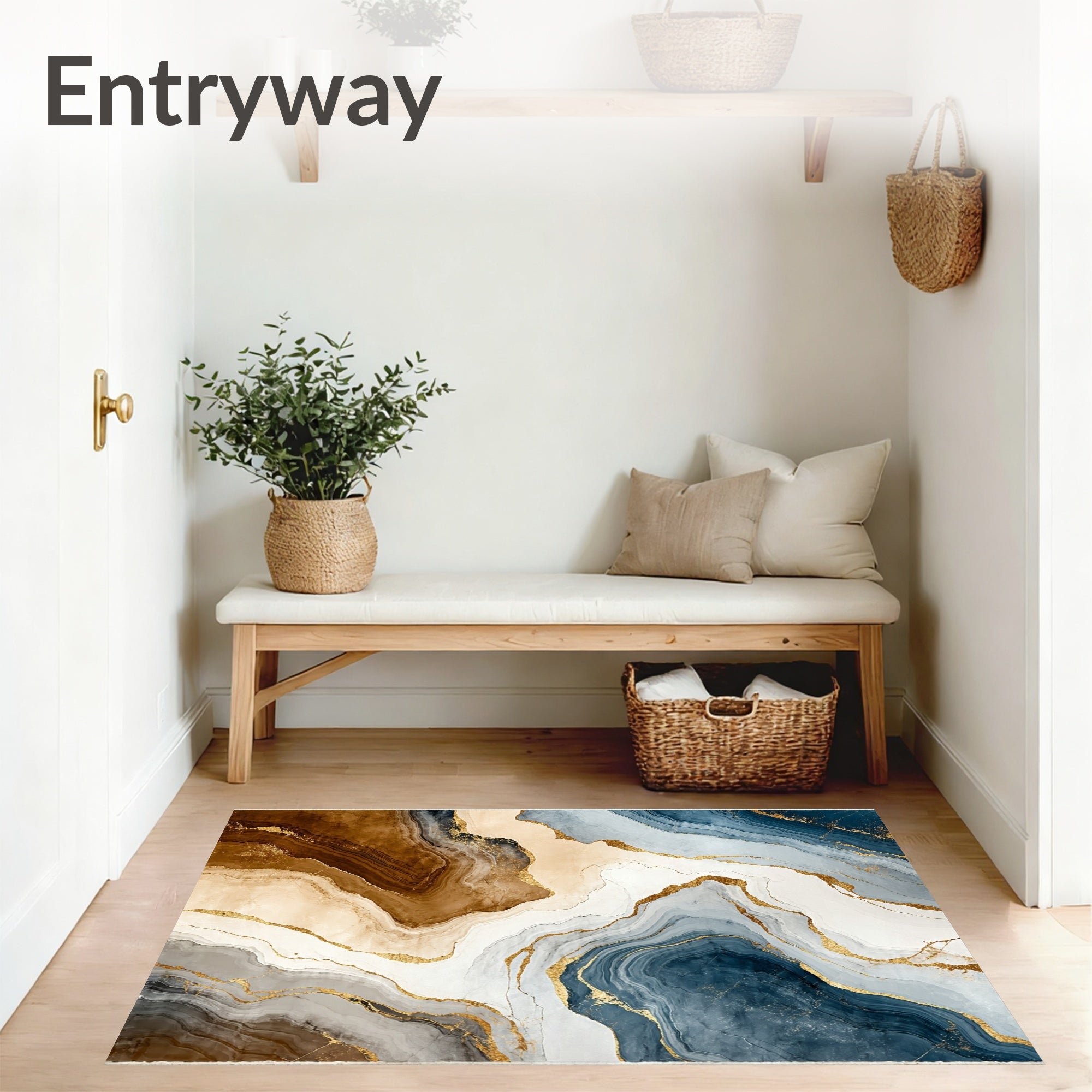 Flatwoven High Traffic Area Rug, Artistic Grey and Marble Swirl with Contemporary Abstract Design, Non Slip, Stain Resistant, Washable Area Rugs for Living Room, Bedroom (Beige) Overview: