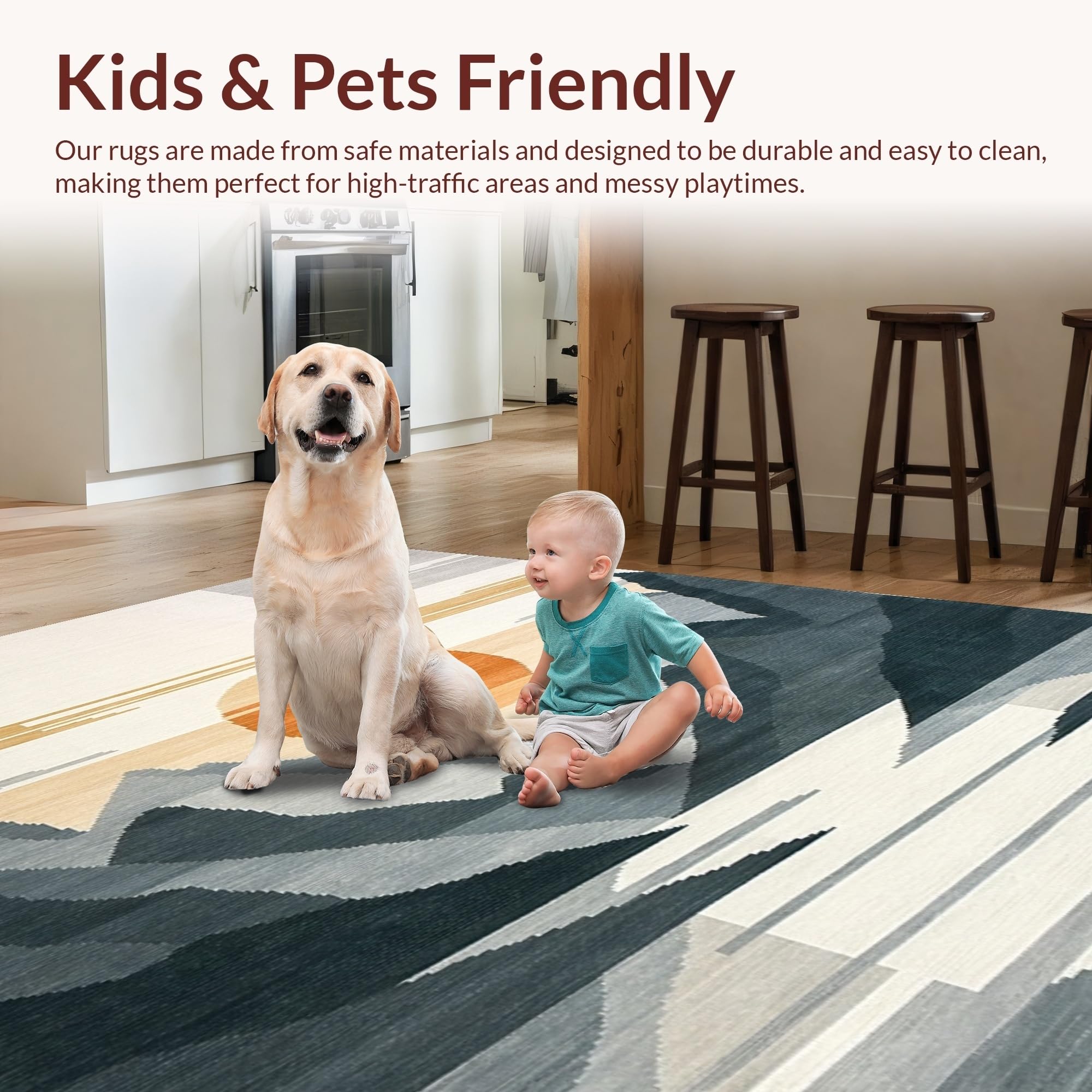 Ultra Soft Area Rug, Non Slip, Stain Resistant, Washable Area Rugs for Living Room, Bedroom, Artistic Circular Sunlit Design(Gray) Overview: