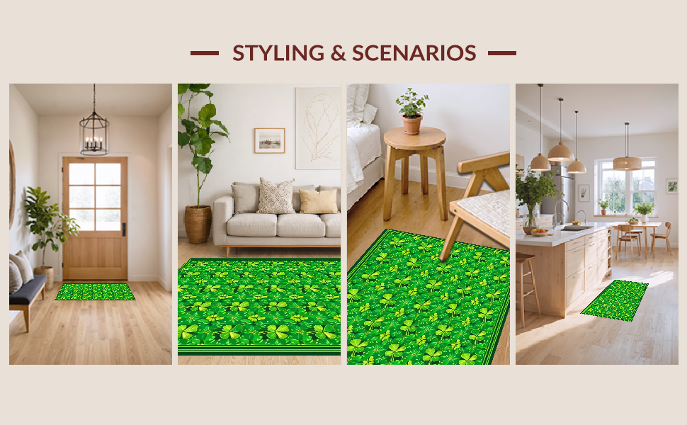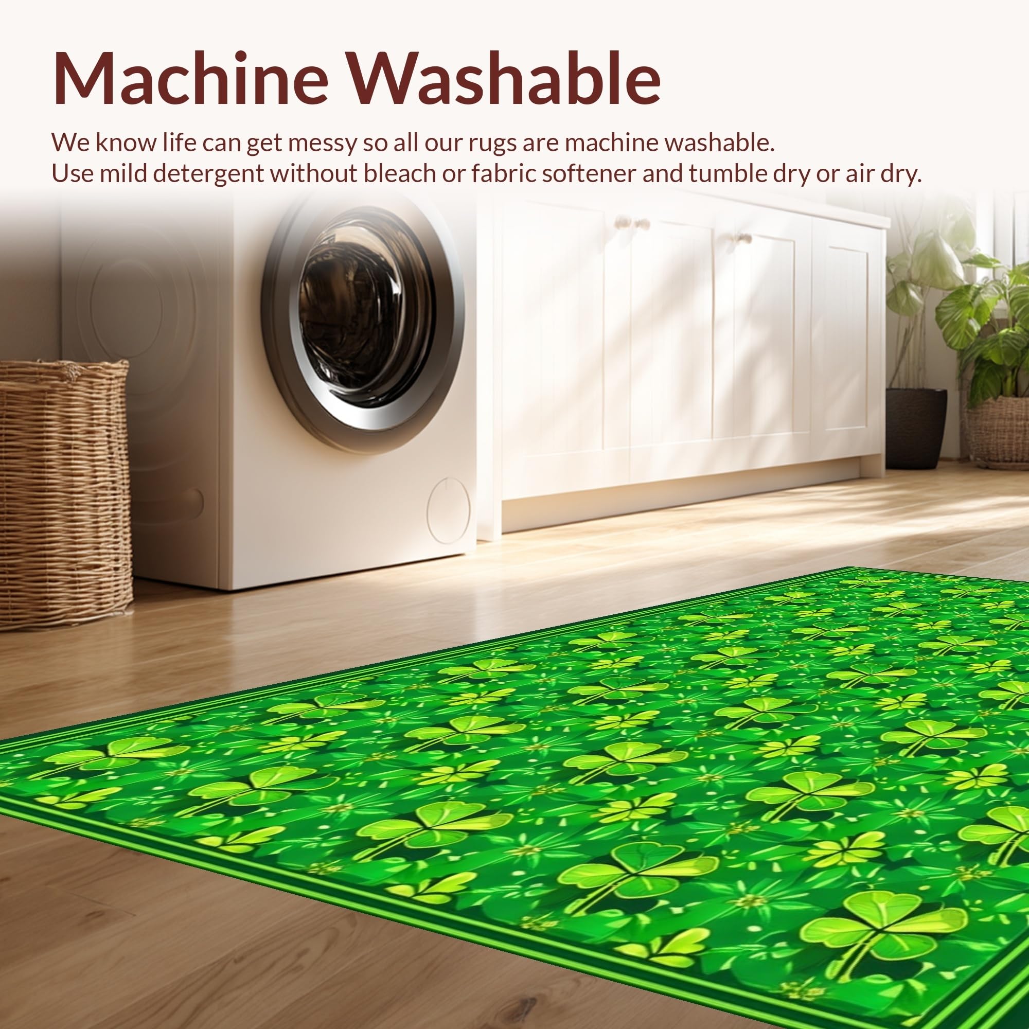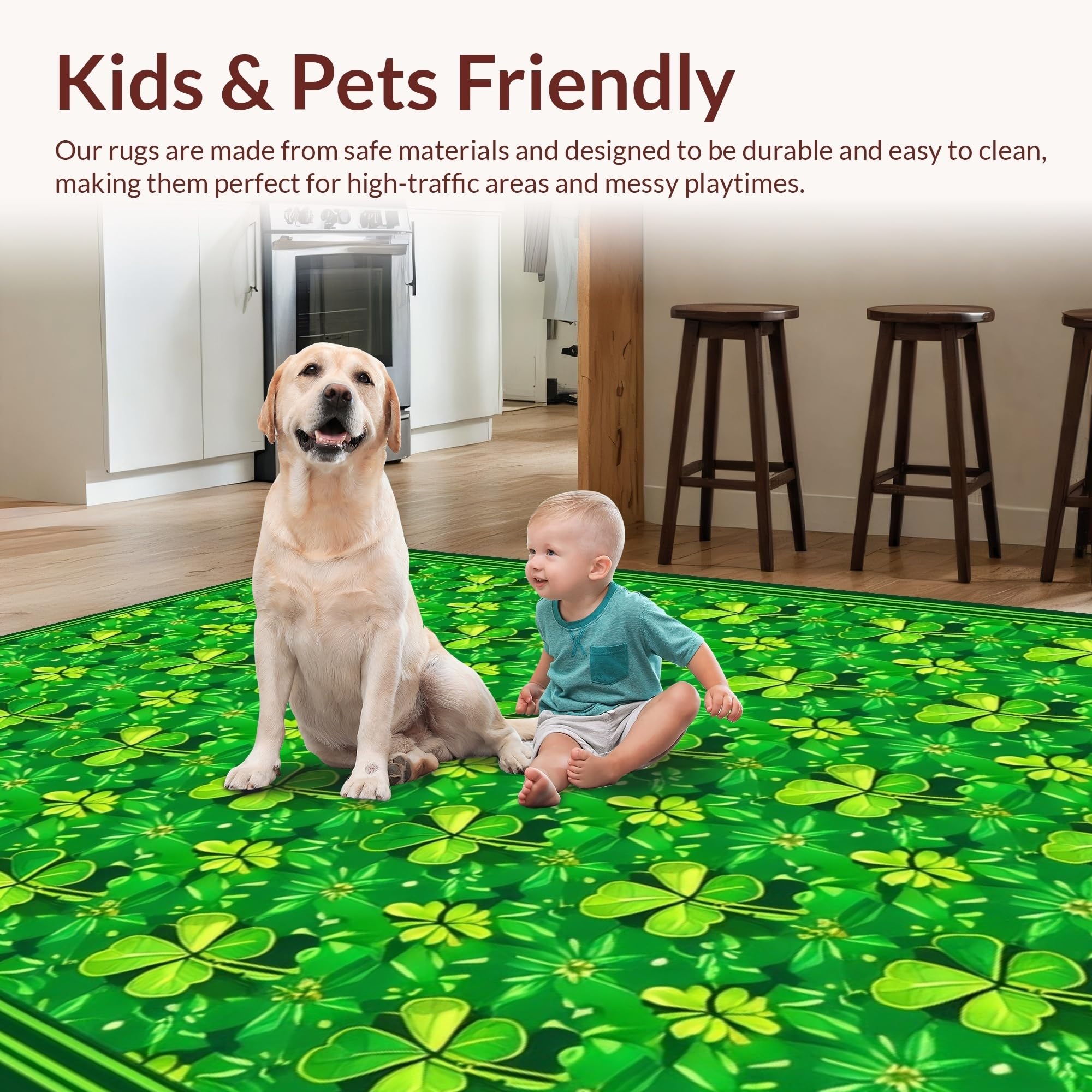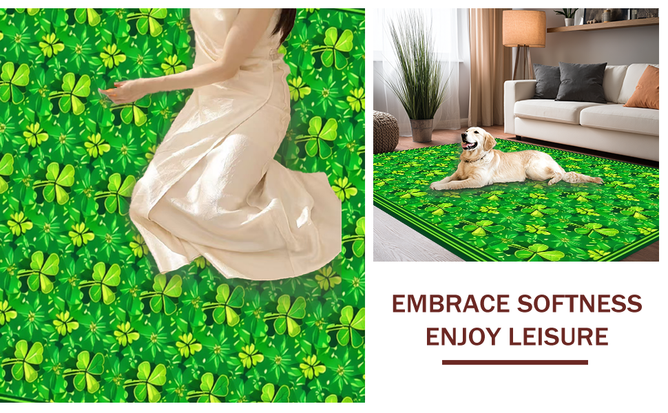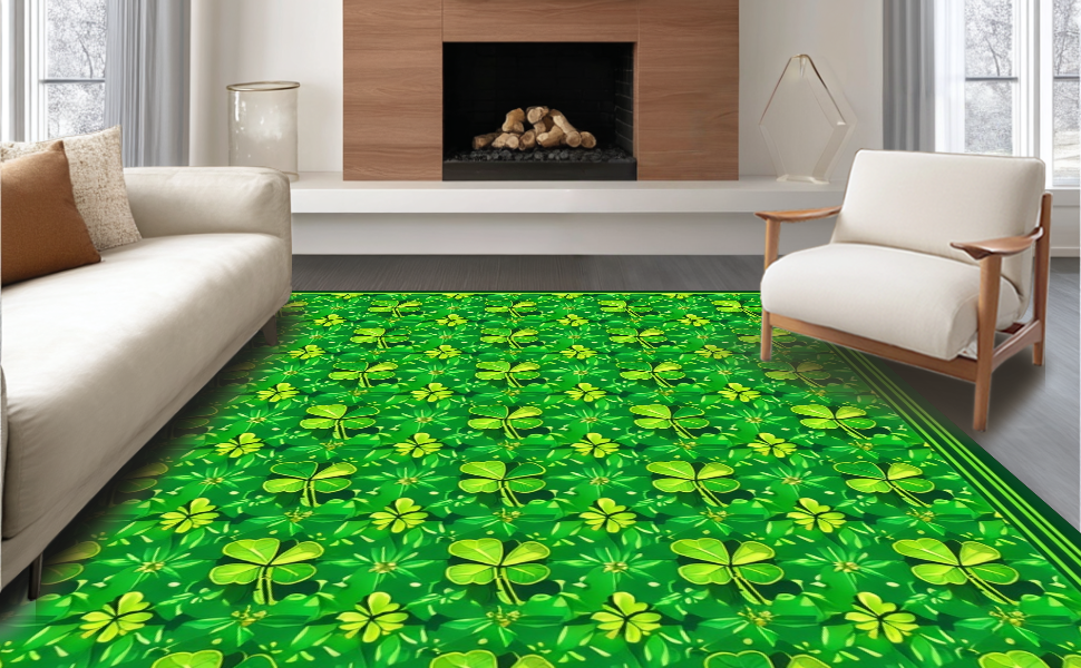 Ultra Soft Area Rug, Non Slip, Stain Resistant, Washable Area Rugs for Living Room, Bedroom, Artistic Clover Leaf Arrangement(Green) Overview: