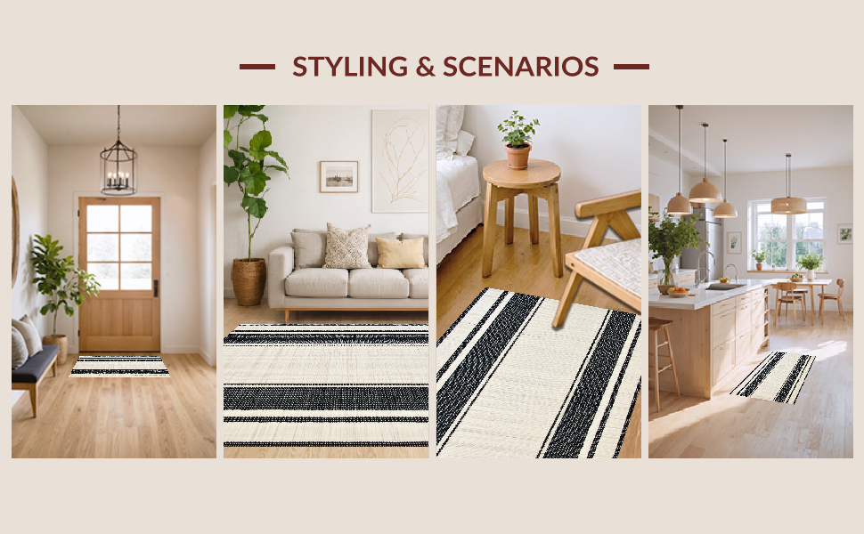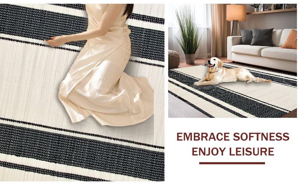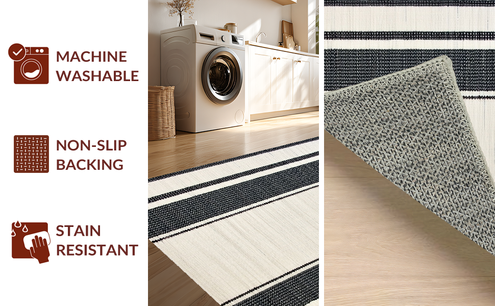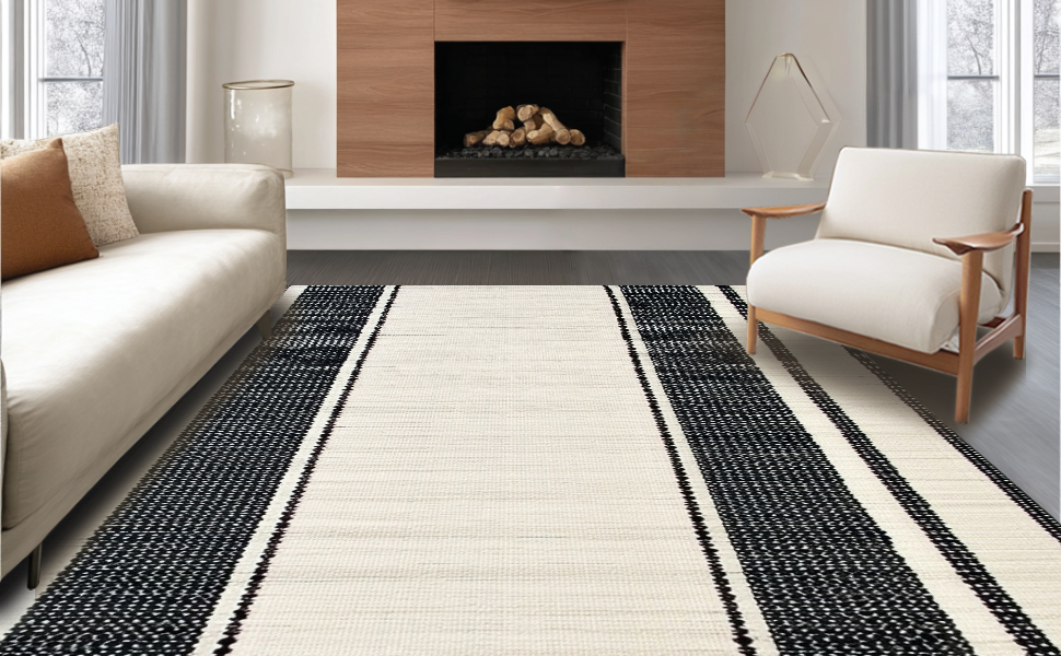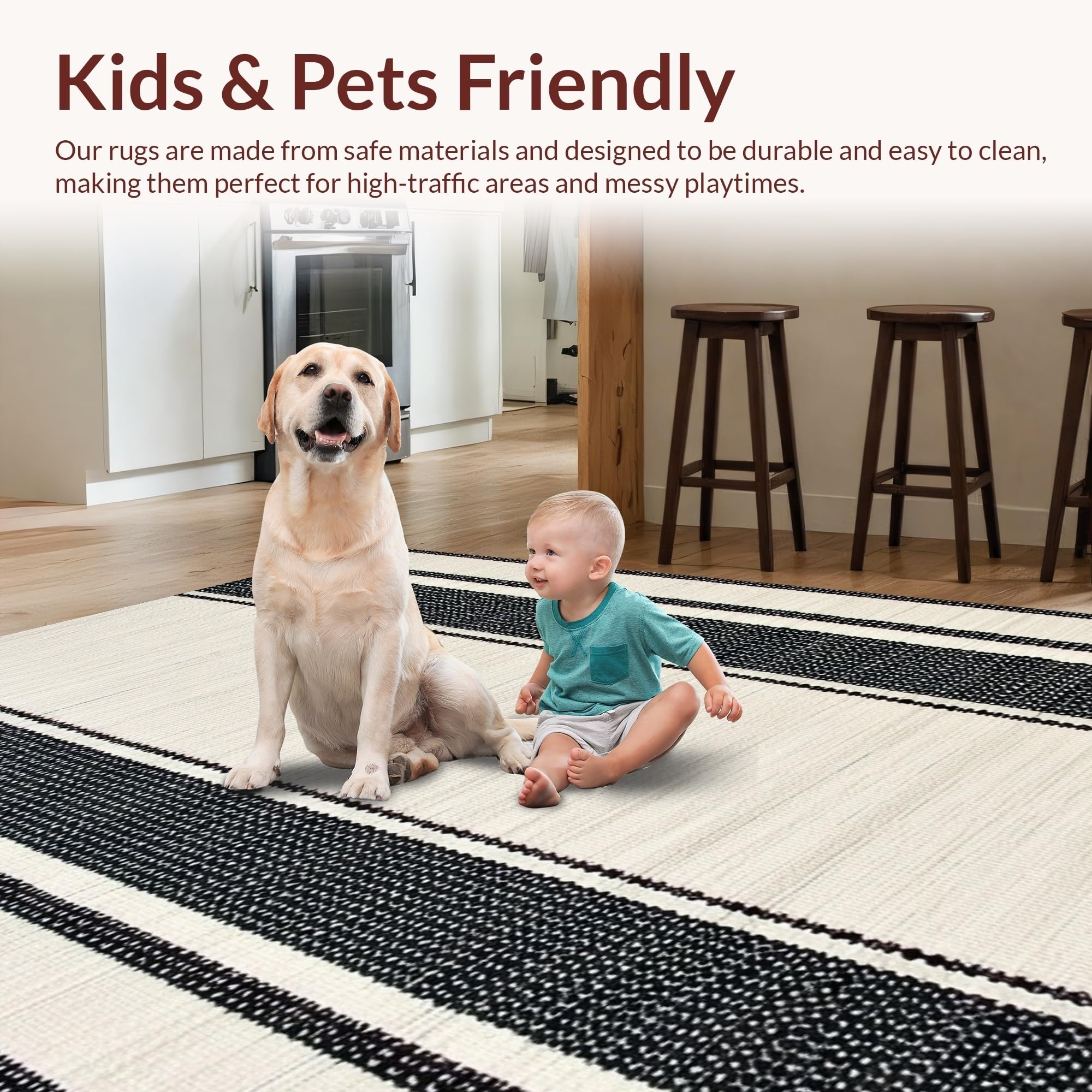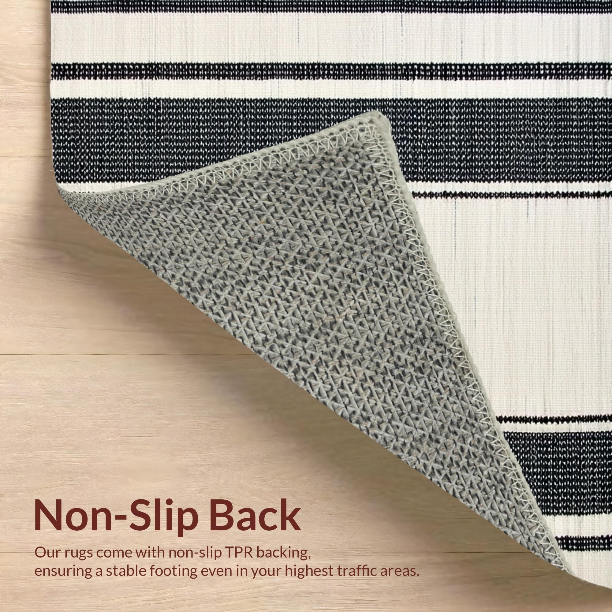 Ultra Soft Area Rug, Non Slip, Stain Resistant, Washable Area Rugs for Living Room, Bedroom, Artistic Coastal Striped Visual Appeal(Black) Overview: