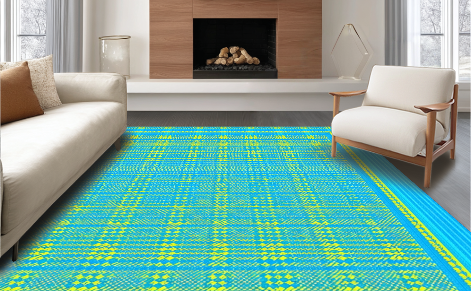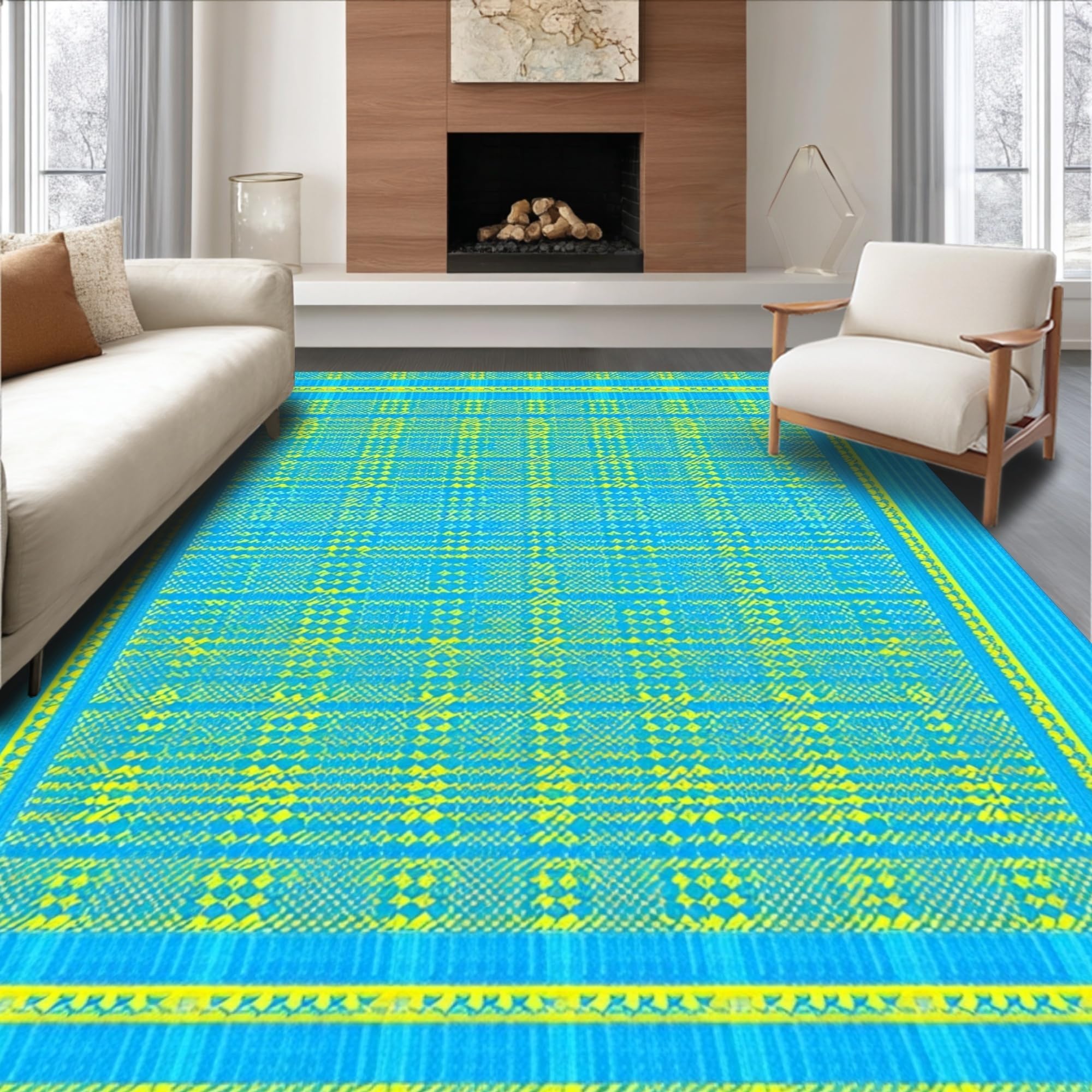 Ultra Soft Area Rug, Non Slip, Stain Resistant, Washable Area Rugs for Living Room, Bedroom, Artistic Coastal Trellis Motif(Blue) Overview: