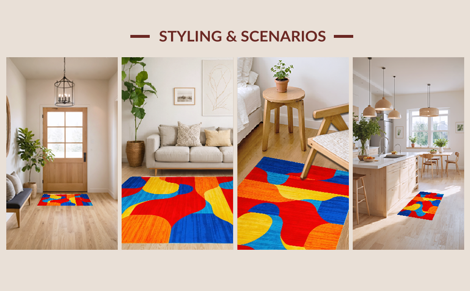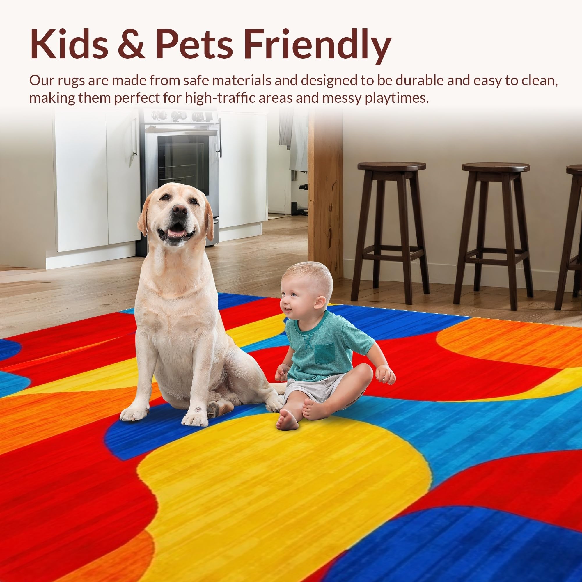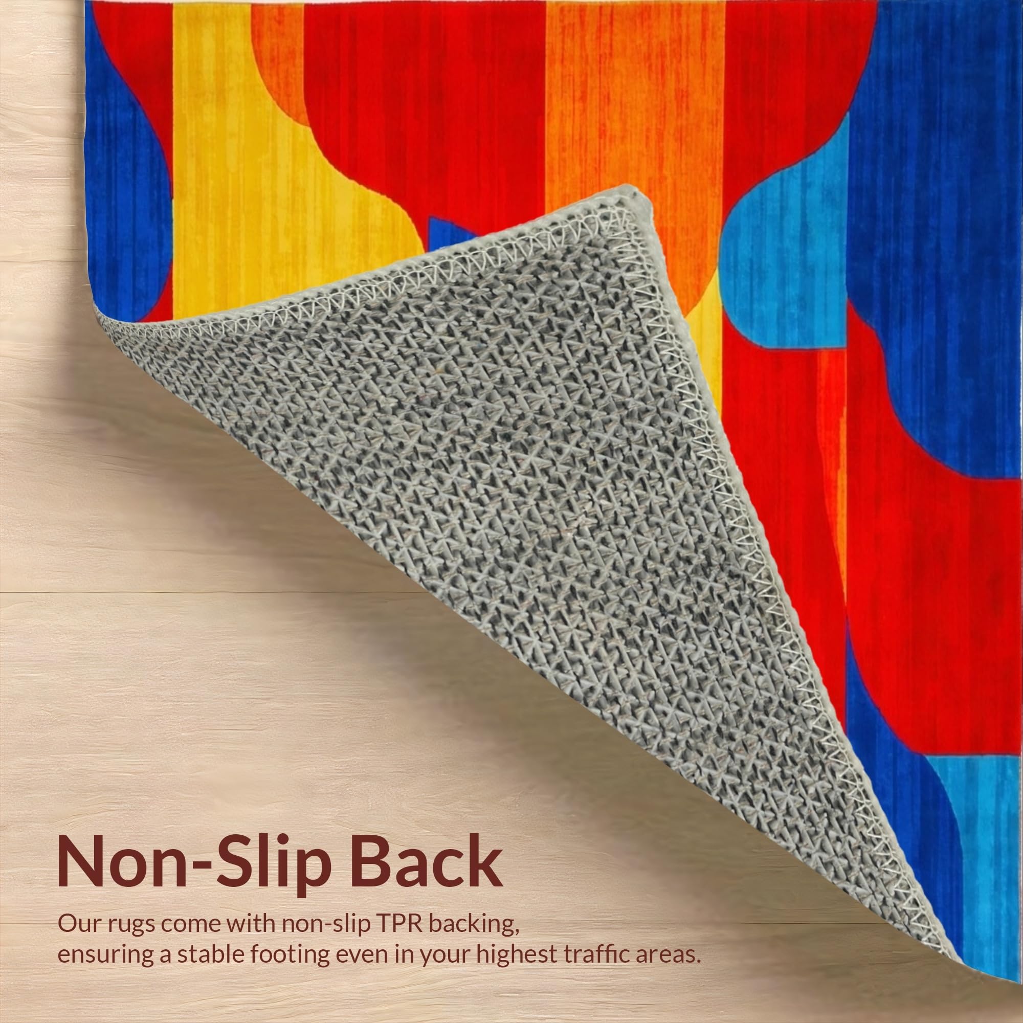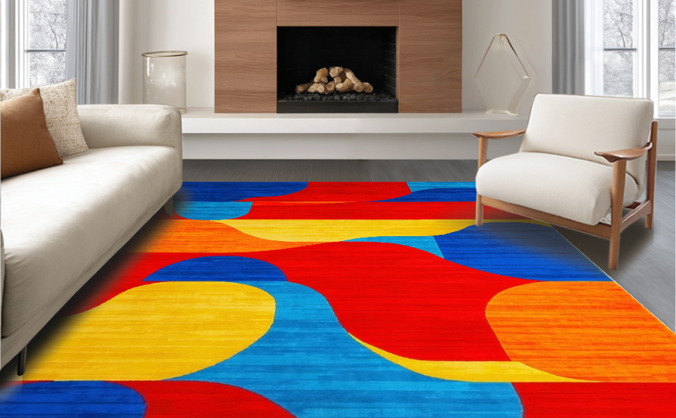 Ultra Soft Area Rug, Non Slip, Stain Resistant, Washable Area Rugs for Living Room, Bedroom, Artistic Colorful Curvilinear Style(Red) Overview: