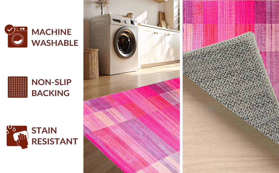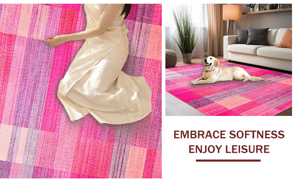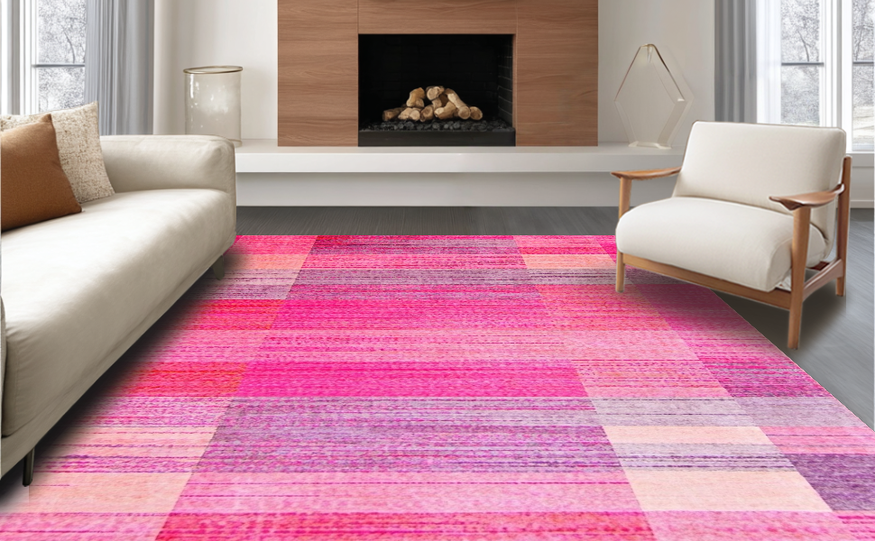 Ultra Soft Area Rug, Non Slip, Stain Resistant, Washable Area Rugs for Living Room, Bedroom, Artistic Contemporary Color Blend(Pink) Overview: