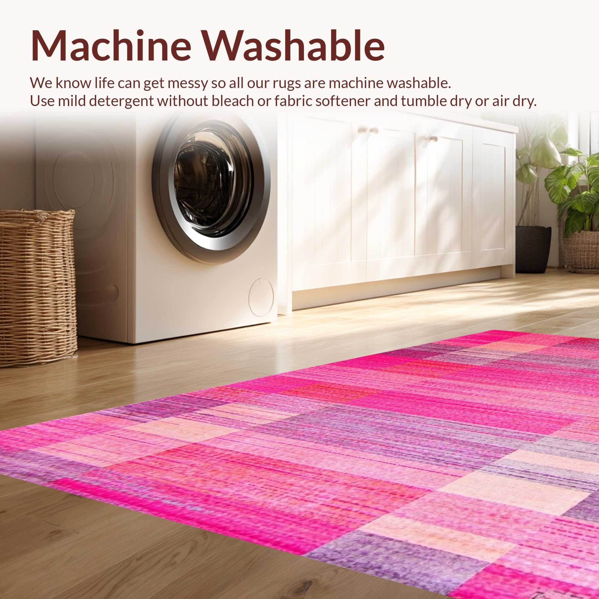- Machine Washable: Our rugs can be easily thrown in the wash machine.