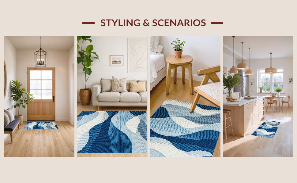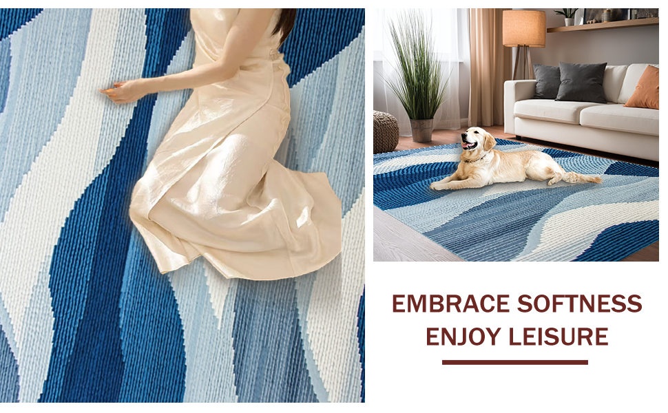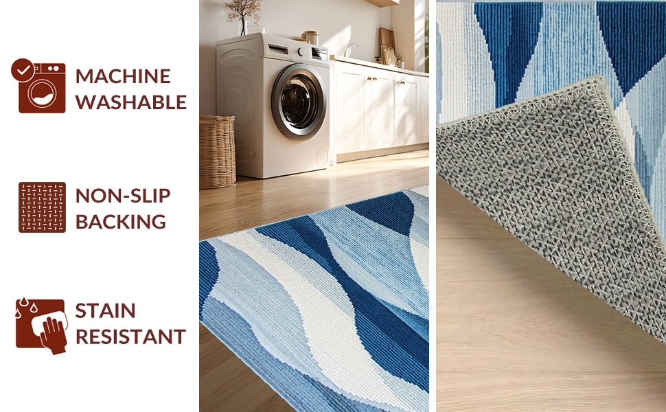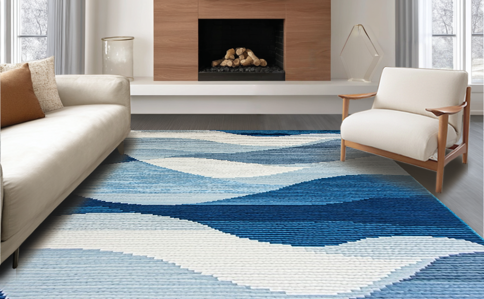 Ultra Soft Area Rug, Non Slip, Stain Resistant, Washable Area Rugs for Living Room, Bedroom, Artistic Contemporary Patterned Layering(Blue) Overview:
