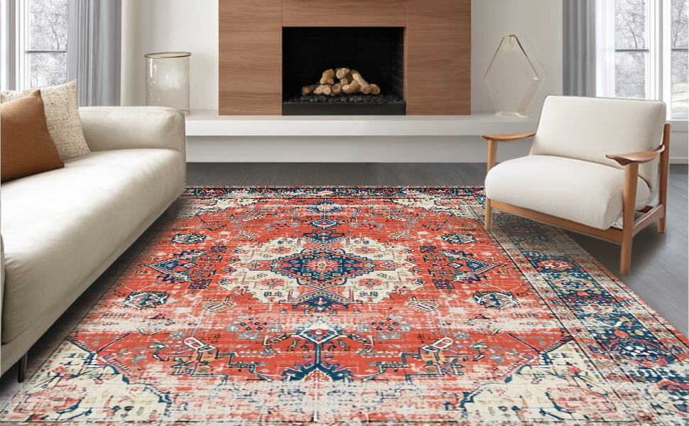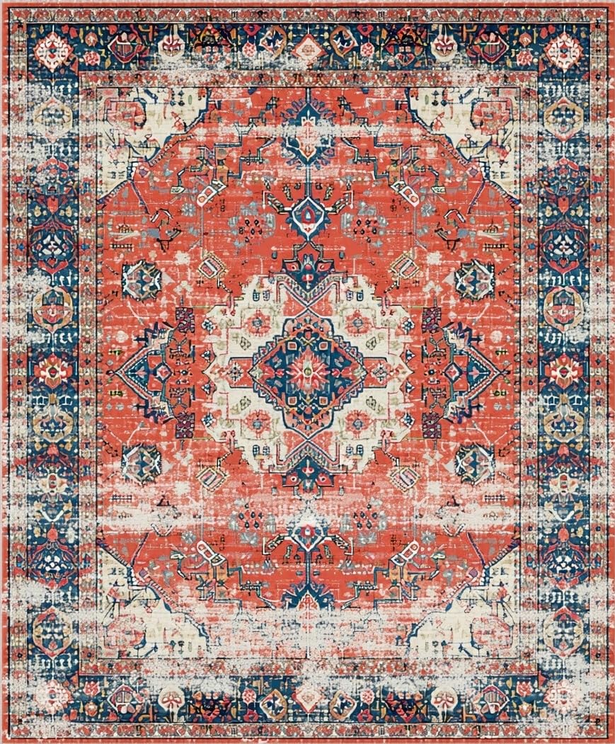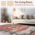 Ultra Soft Area Rug, Non Slip, Stain Resistant, Washable Area Rugs for Living Room, Bedroom, Artistic Coral and Blue Fusion(Red) Overview: