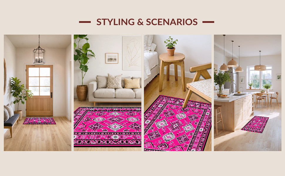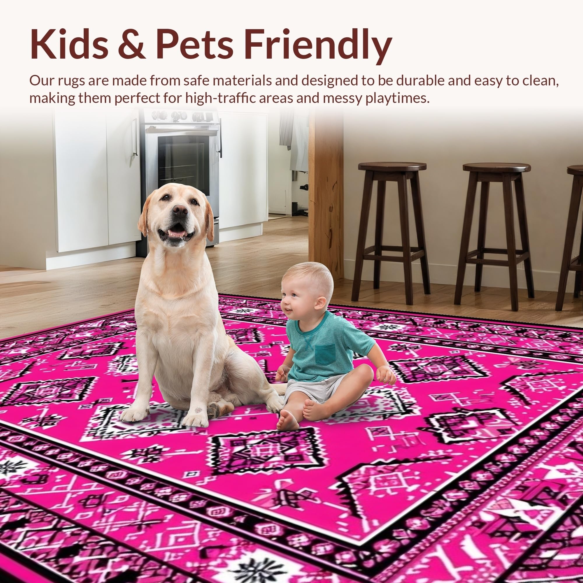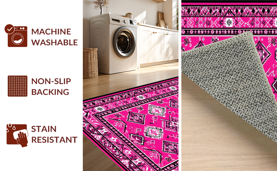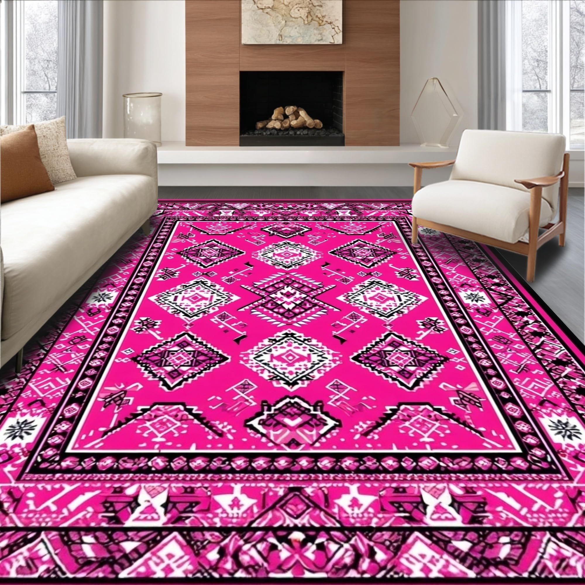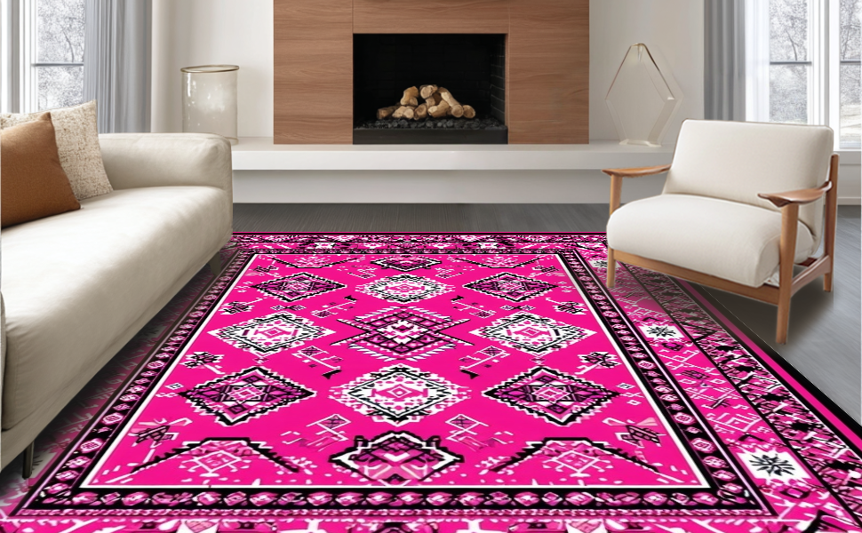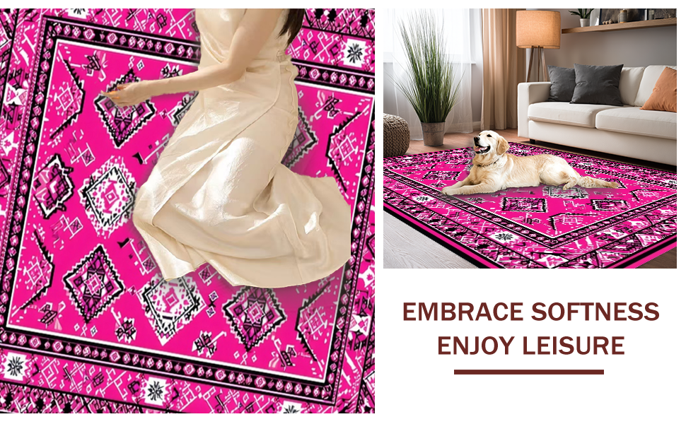 Ultra Soft Area Rug, Non Slip, Stain Resistant, Washable Area Rugs for Living Room, Bedroom, Artistic Cowgirl Vibe Floor Decor(Pink) Overview:
