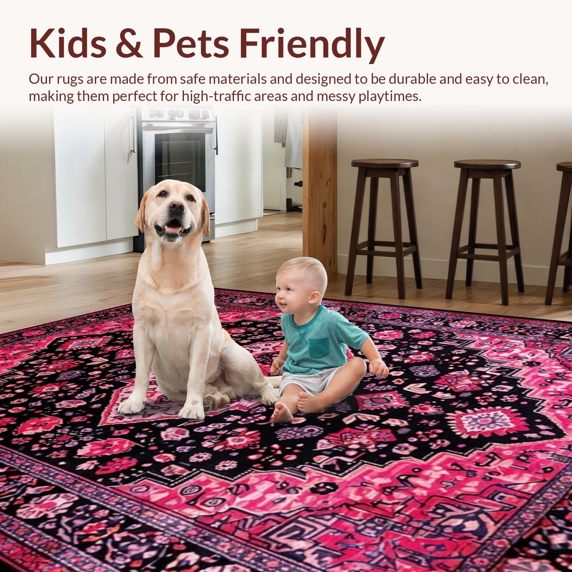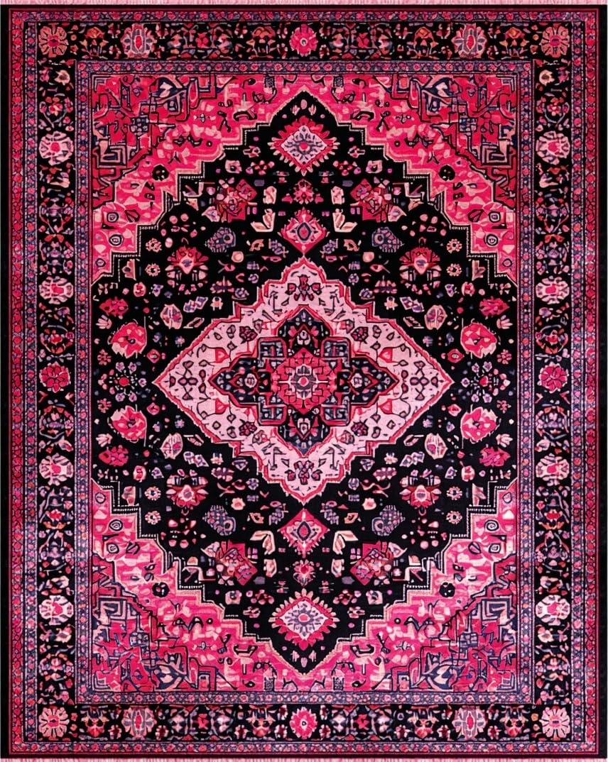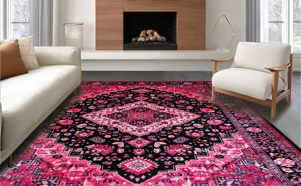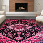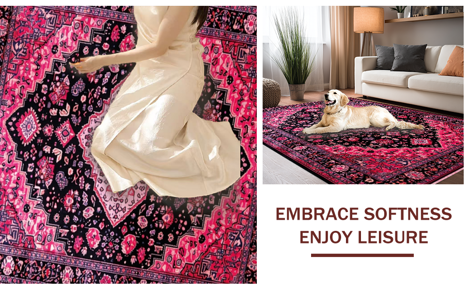 Ultra Soft Area Rug, Non Slip, Stain Resistant, Washable Area Rugs for Living Room, Bedroom, Artistic Cozy Symmetrical Elements(Black) Overview: