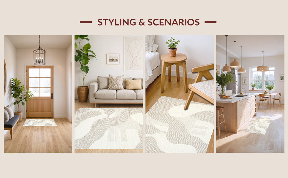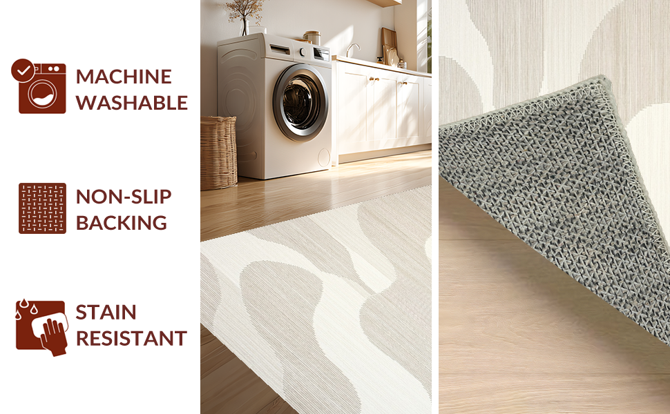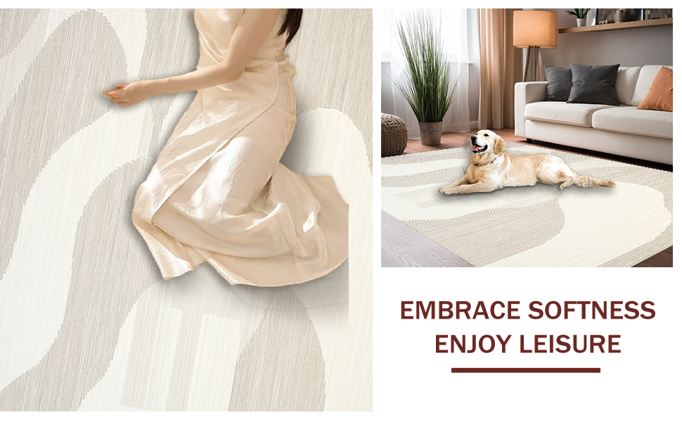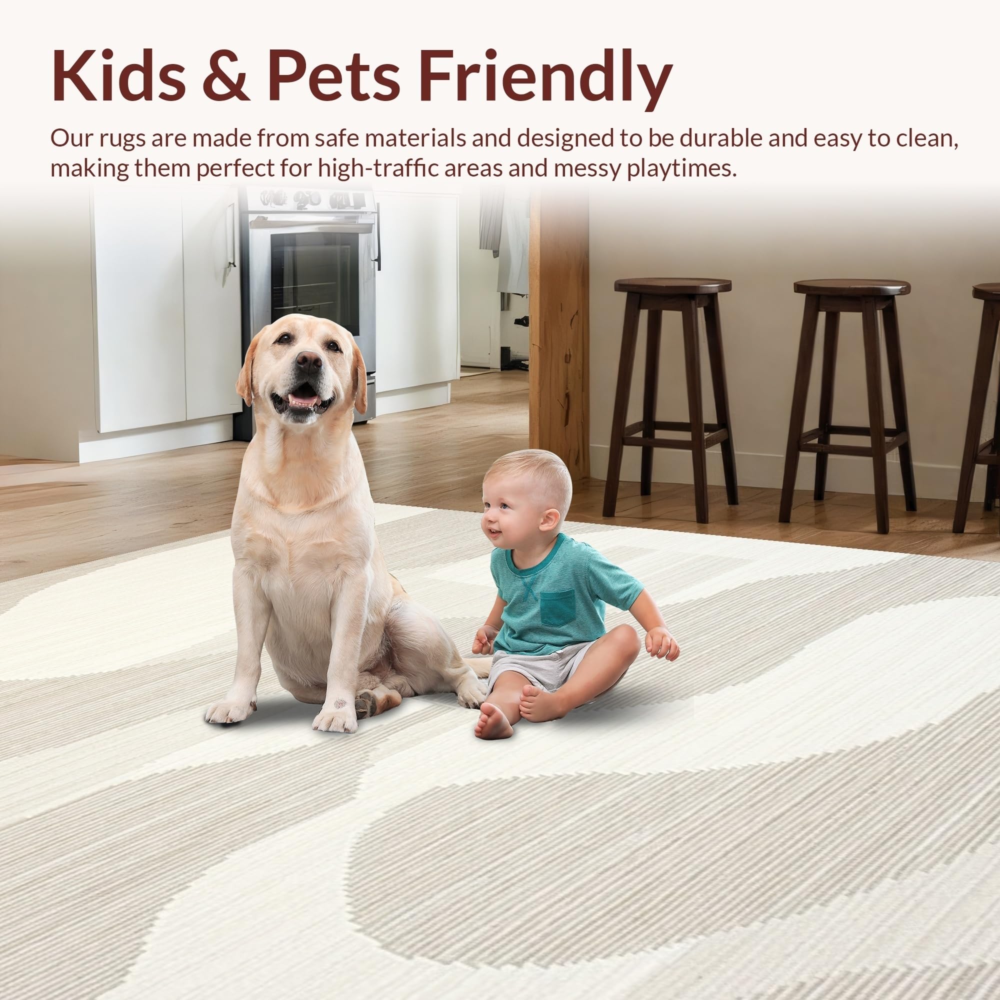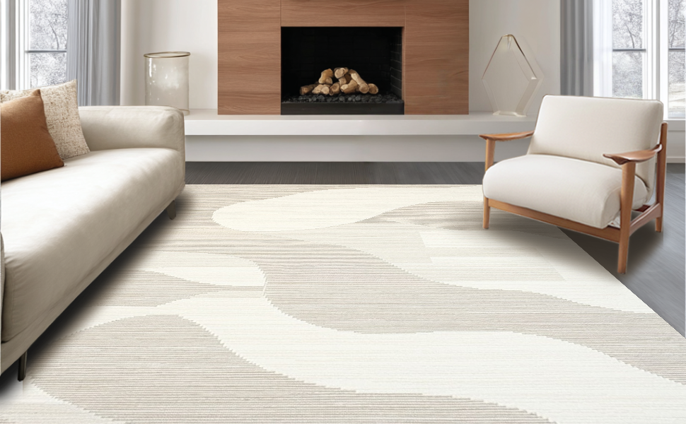 Ultra Soft Area Rug, Non Slip, Stain Resistant, Washable Area Rugs for Living Room, Bedroom, Artistic Cream and White Geometric Flow(Beige) Overview: