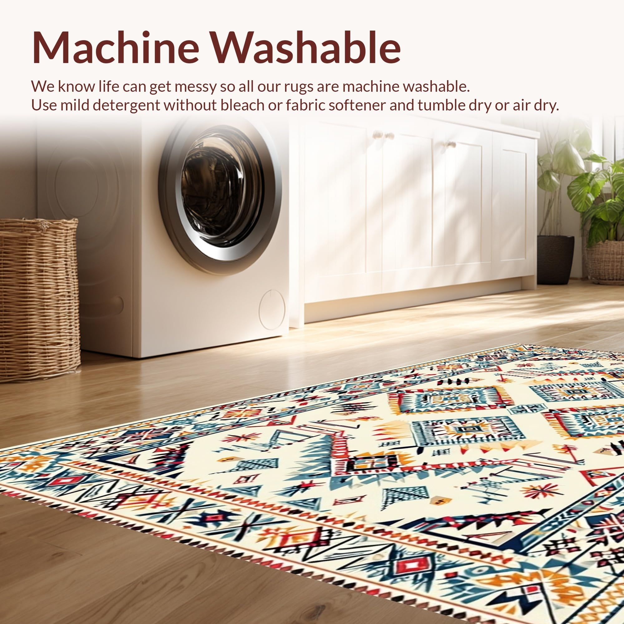 - Machine Washable: Our rugs can be easily thrown in the wash machine.