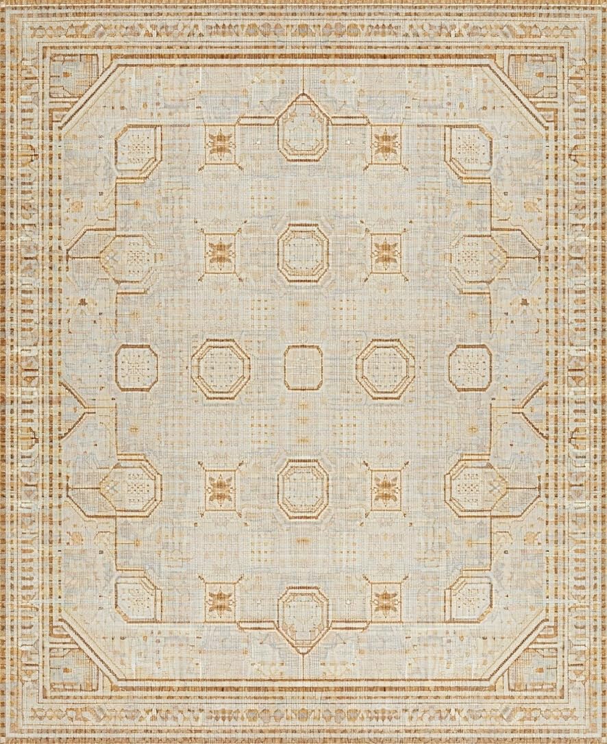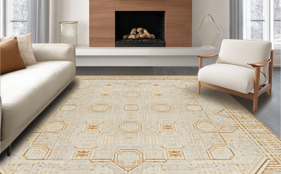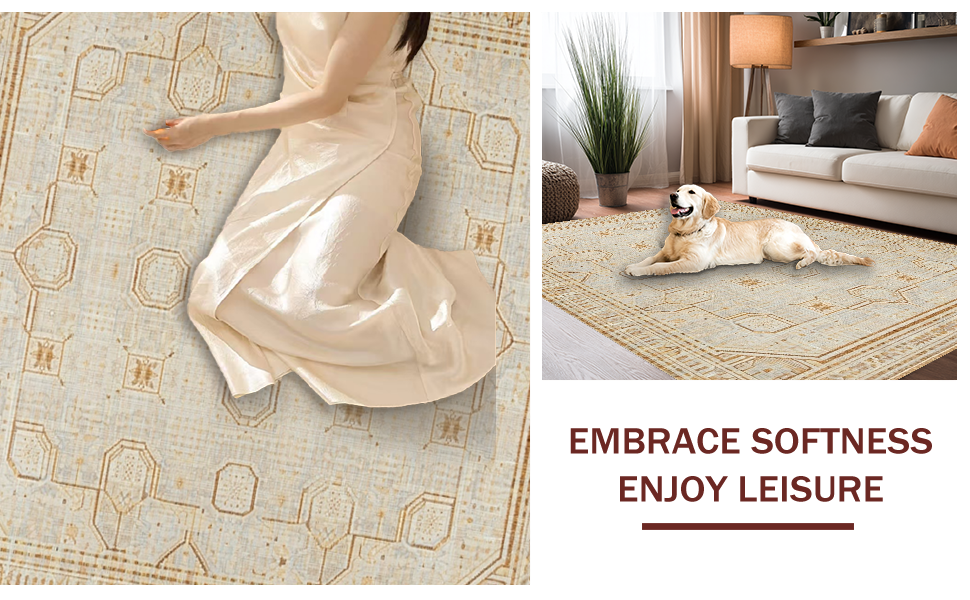 Ultra Soft Area Rug, Non Slip, Stain Resistant, Washable Area Rugs for Living Room, Bedroom, Artistic Curved Rustic Patterns(Beige) Overview: