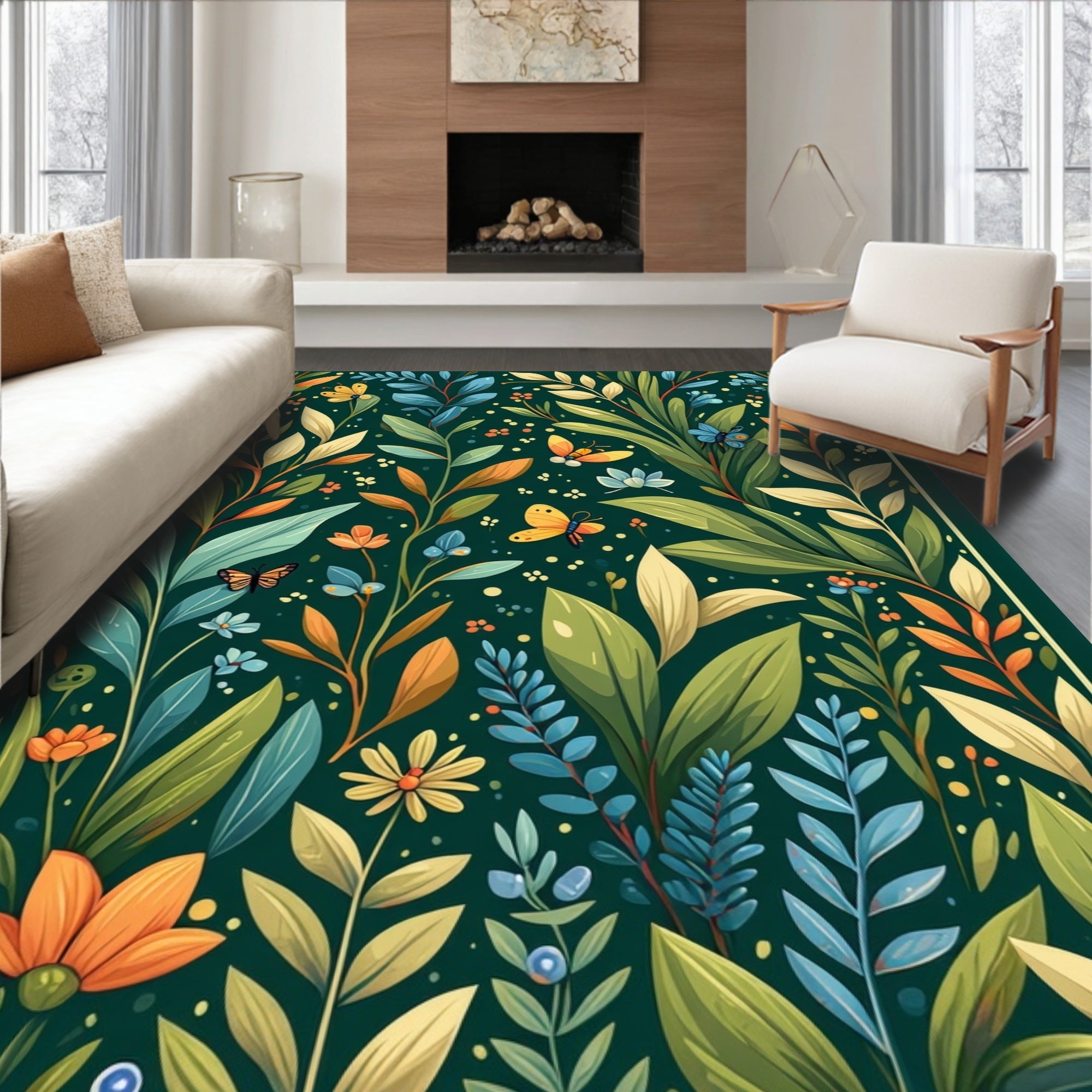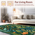 Flatwoven High Traffic Area Rug, Artistic Dark Green Botanical Theme, Non Slip, Stain Resistant, Washable Area Rugs for Living Room, Bedroom (Green) Overview: