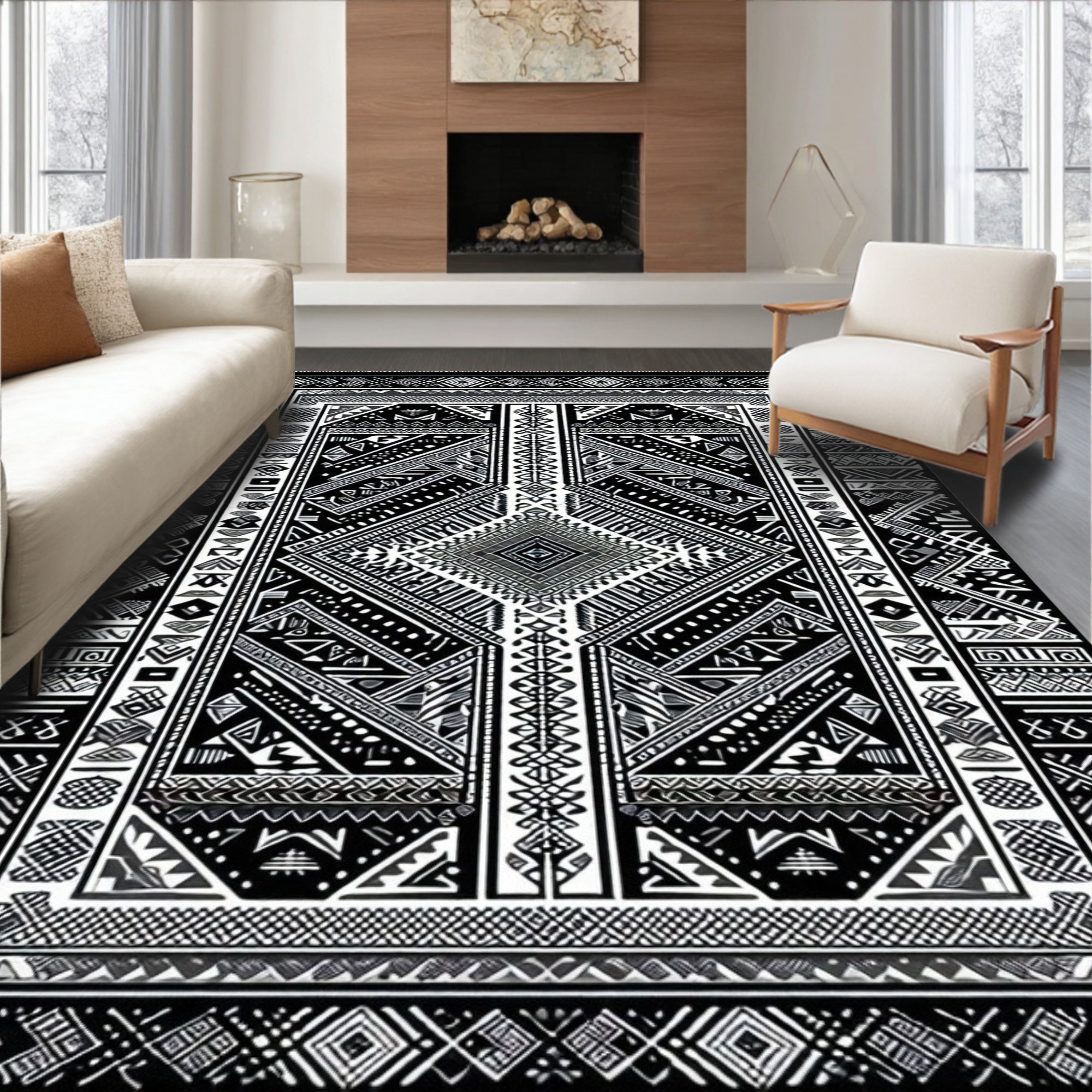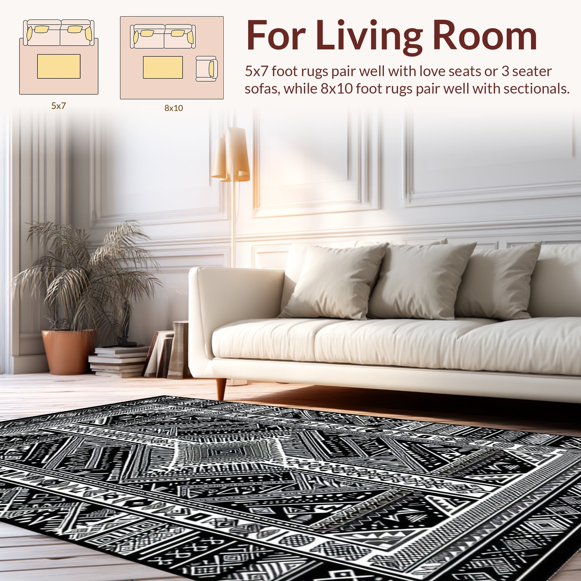 Flatwoven High Traffic Area Rug, Artistic with Vibe, Non Slip, Stain Resistant, Washable Area Rugs for Living Room, Bedroom (Black) Overview: