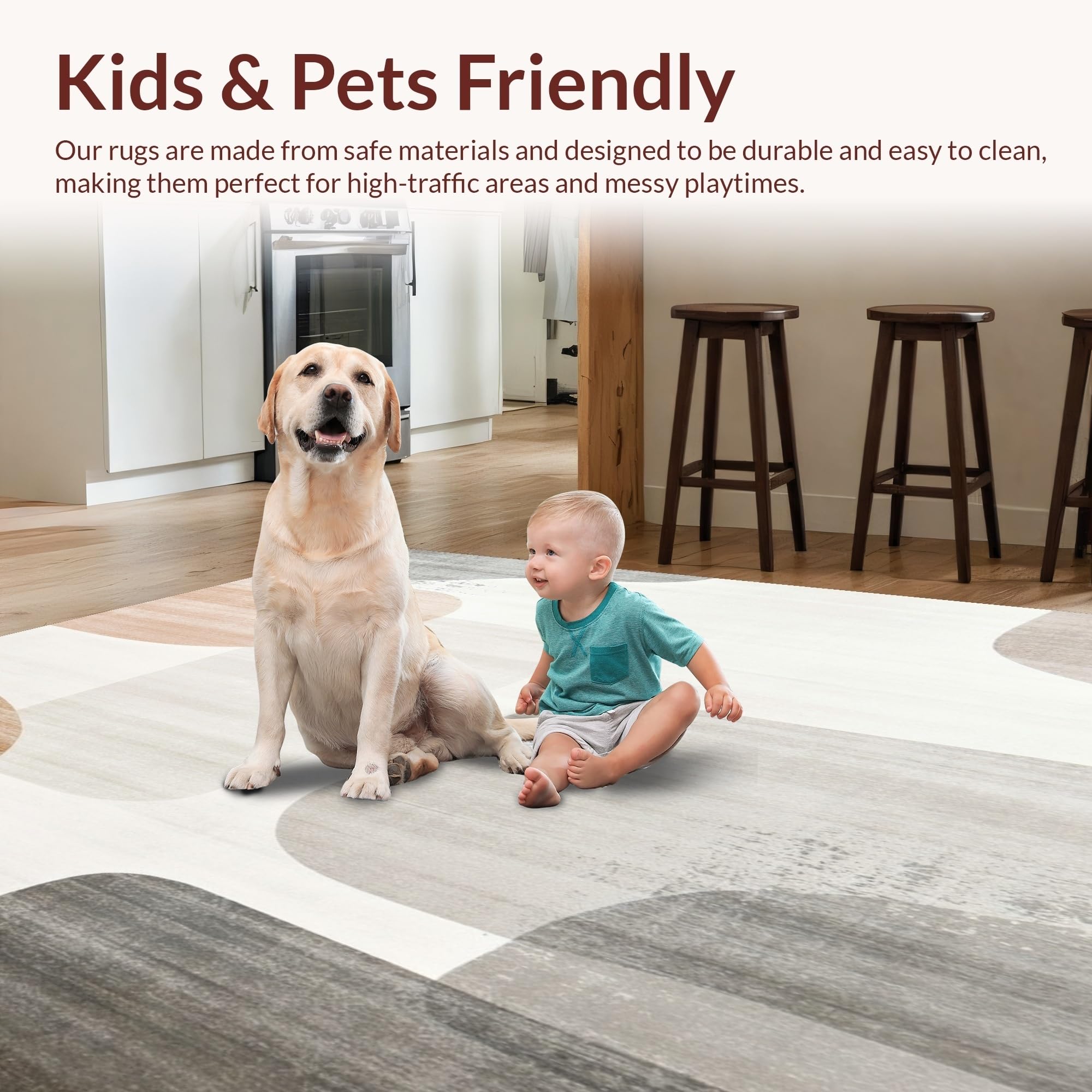 Ultra Soft Area Rug, Non Slip, Stain Resistant, Washable Area Rugs for Living Room, Bedroom, Artistic Distressed for Refined Living Spaces(Beige) Overview: