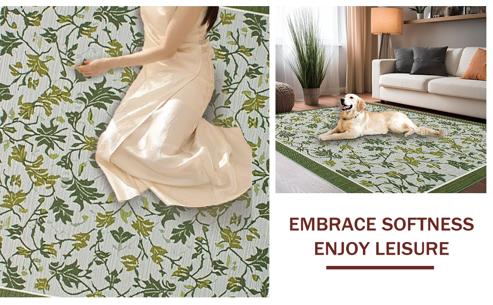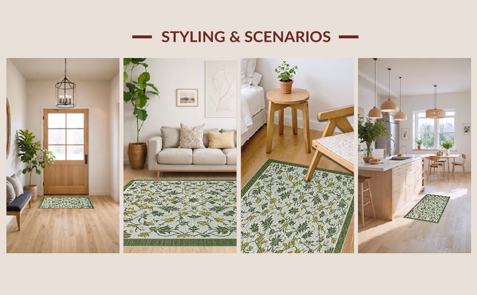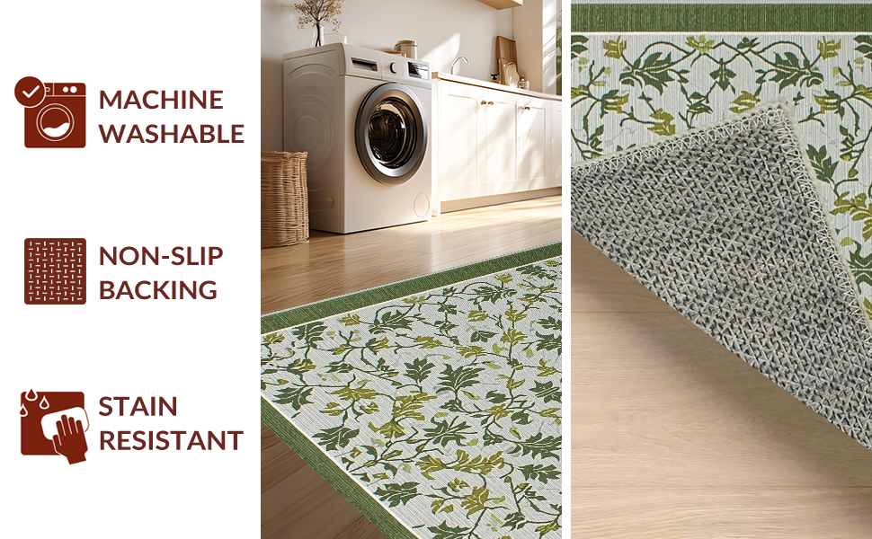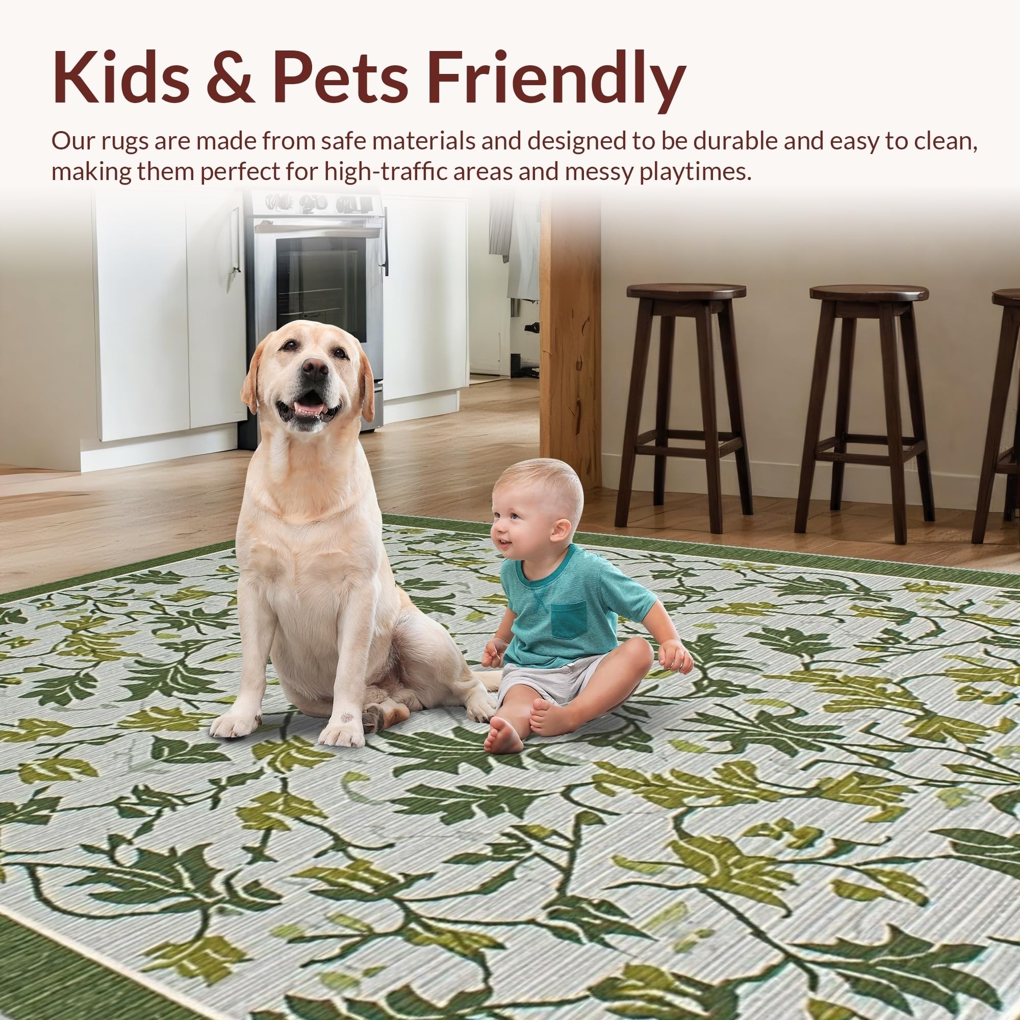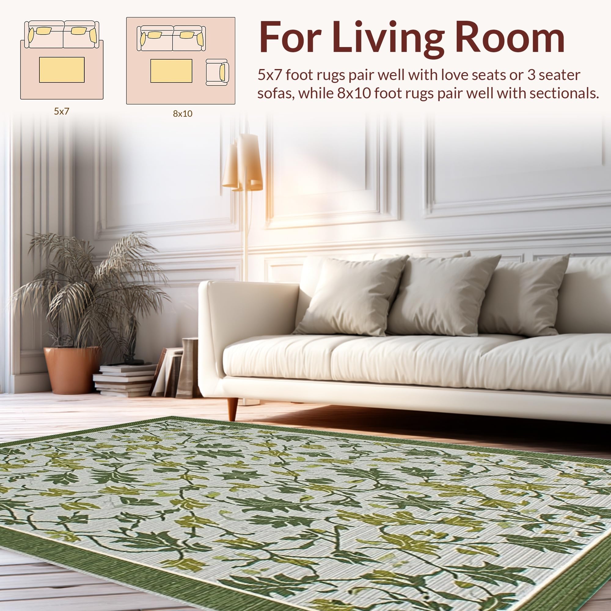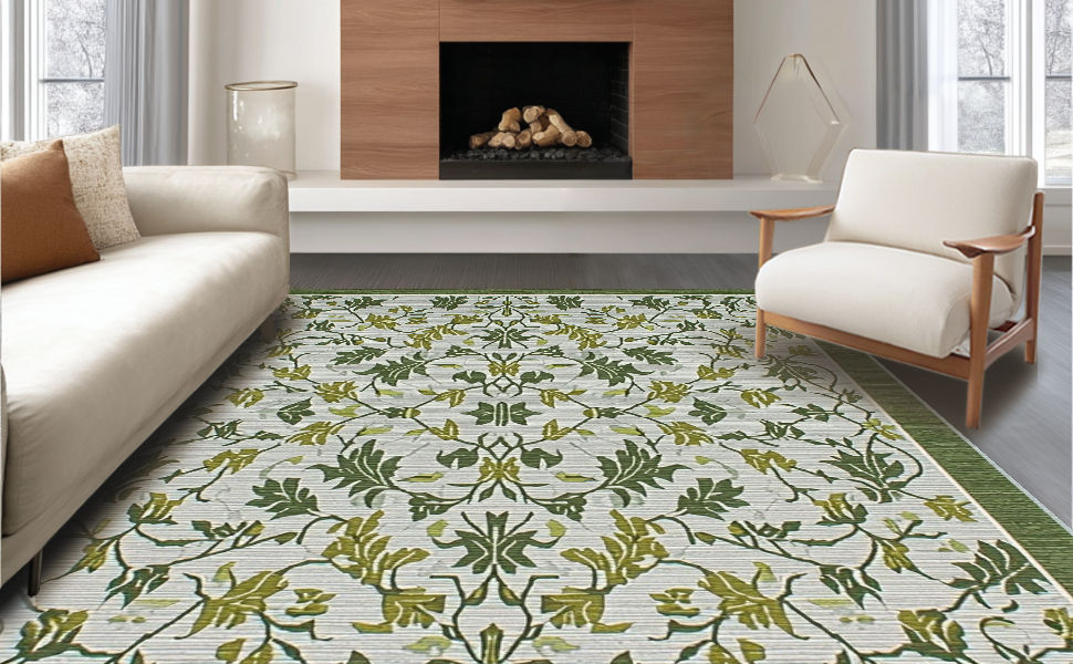Ultra Soft Area Rug, Non Slip, Stain Resistant, Washable Area Rugs for Living Room, Bedroom, Artistic Donegal Branch Motif(Green) Overview:
