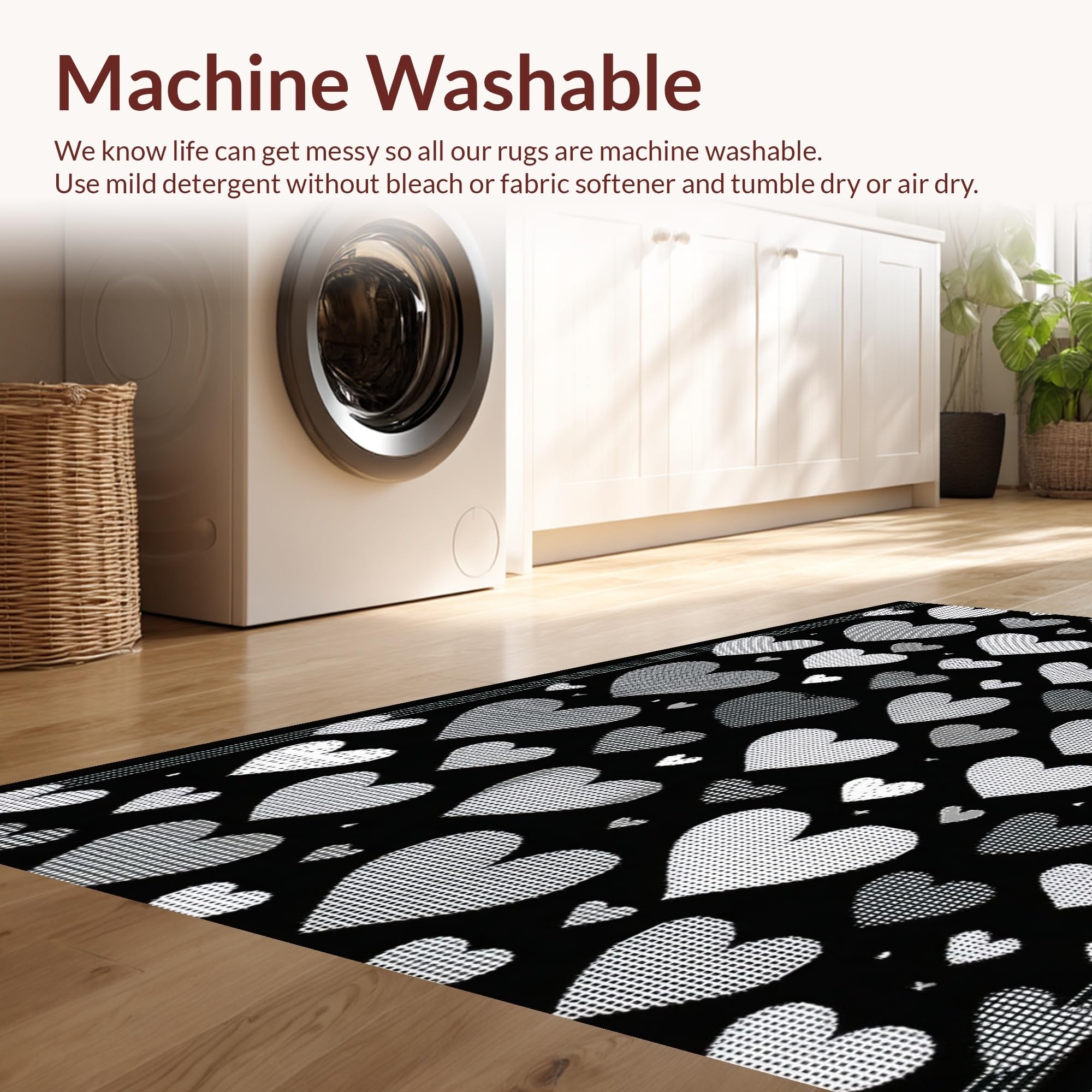 - Machine Washable: Our rugs can be easily thrown in the wash machine.