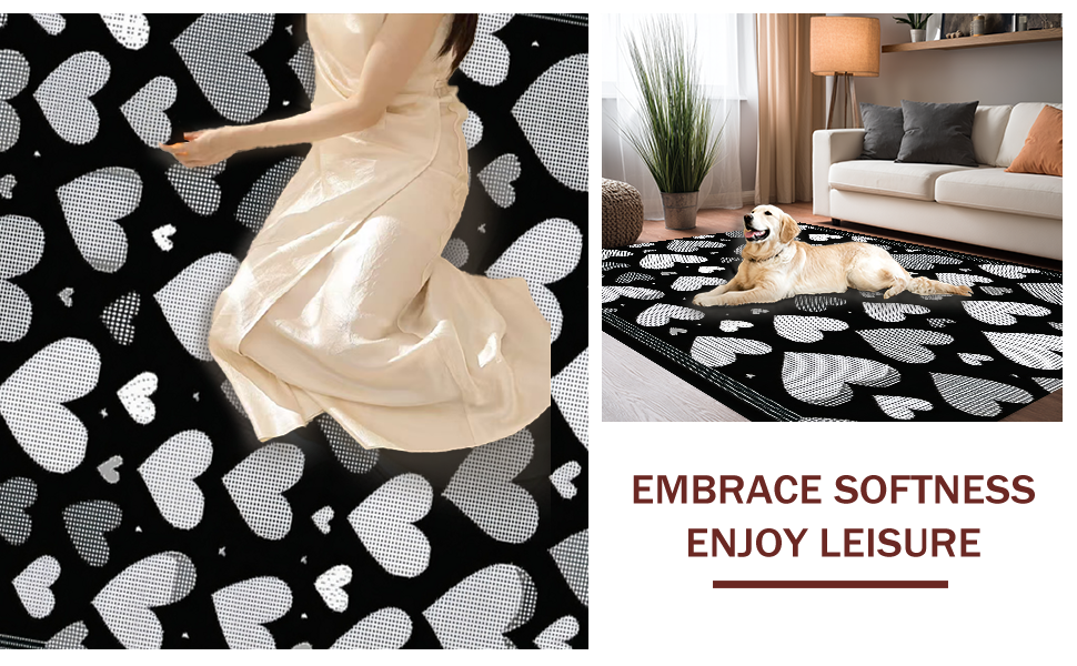 Ultra Soft Area Rug, Non Slip, Stain Resistant, Washable Area Rugs for Living Room, Bedroom, Artistic Dual-Tone Decorative Piece(Black) Overview:
