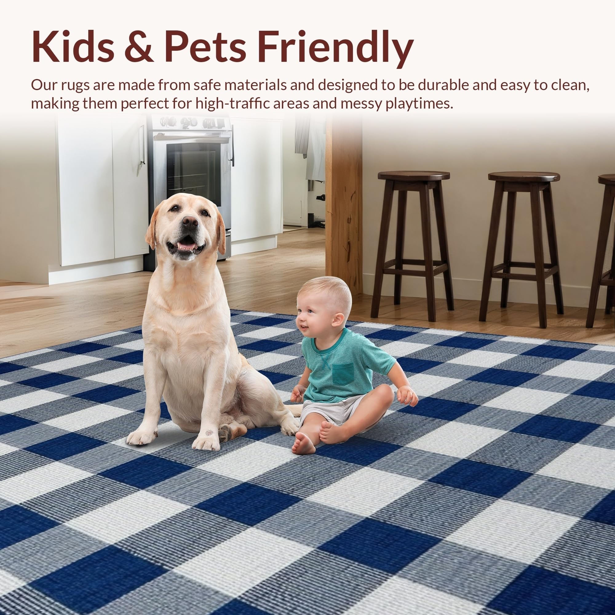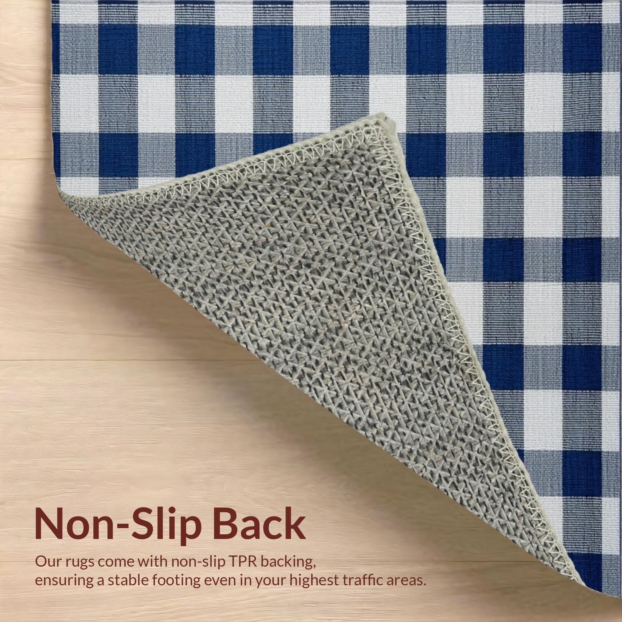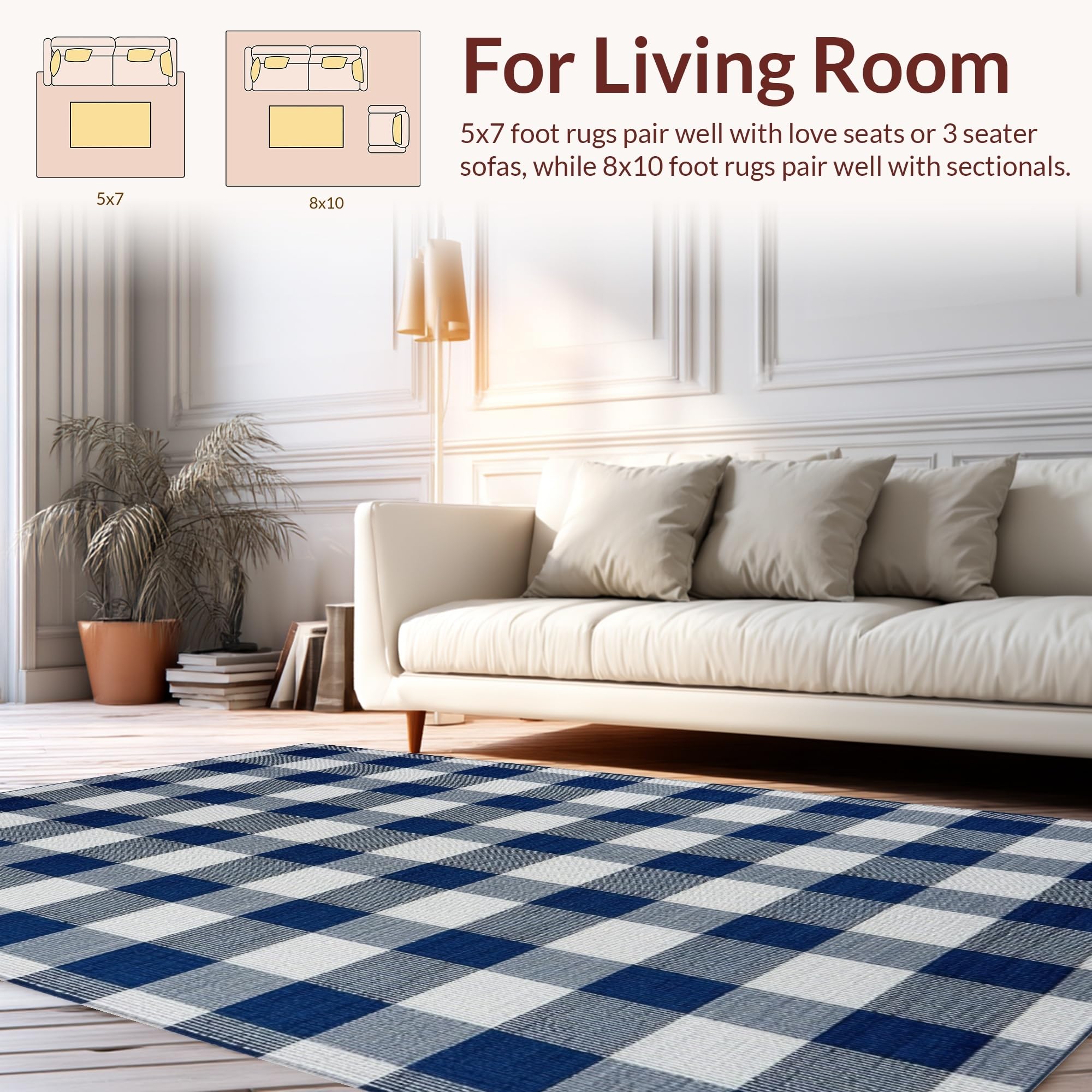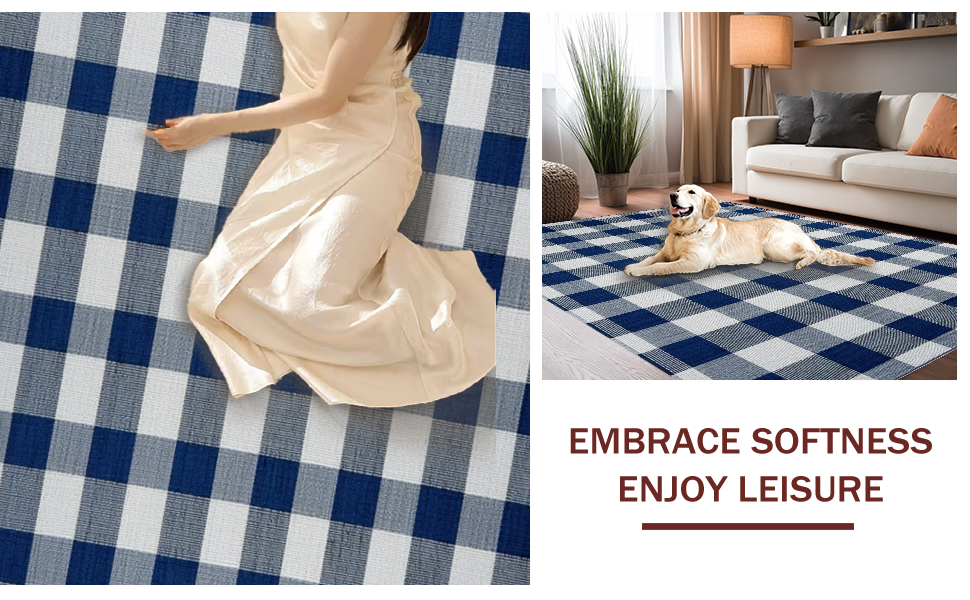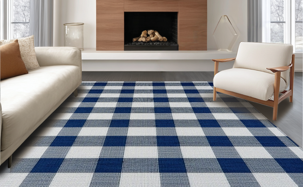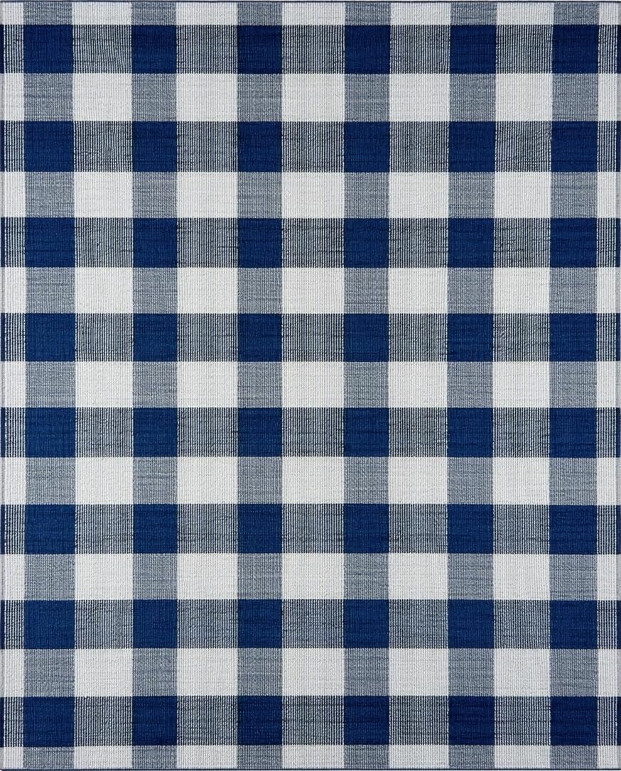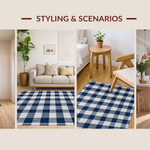 Ultra Soft Area Rug, Non Slip, Stain Resistant, Washable Area Rugs for Living Room, Bedroom, Artistic Dusk Blue Gingham Visual Appeal(Blue) Overview: