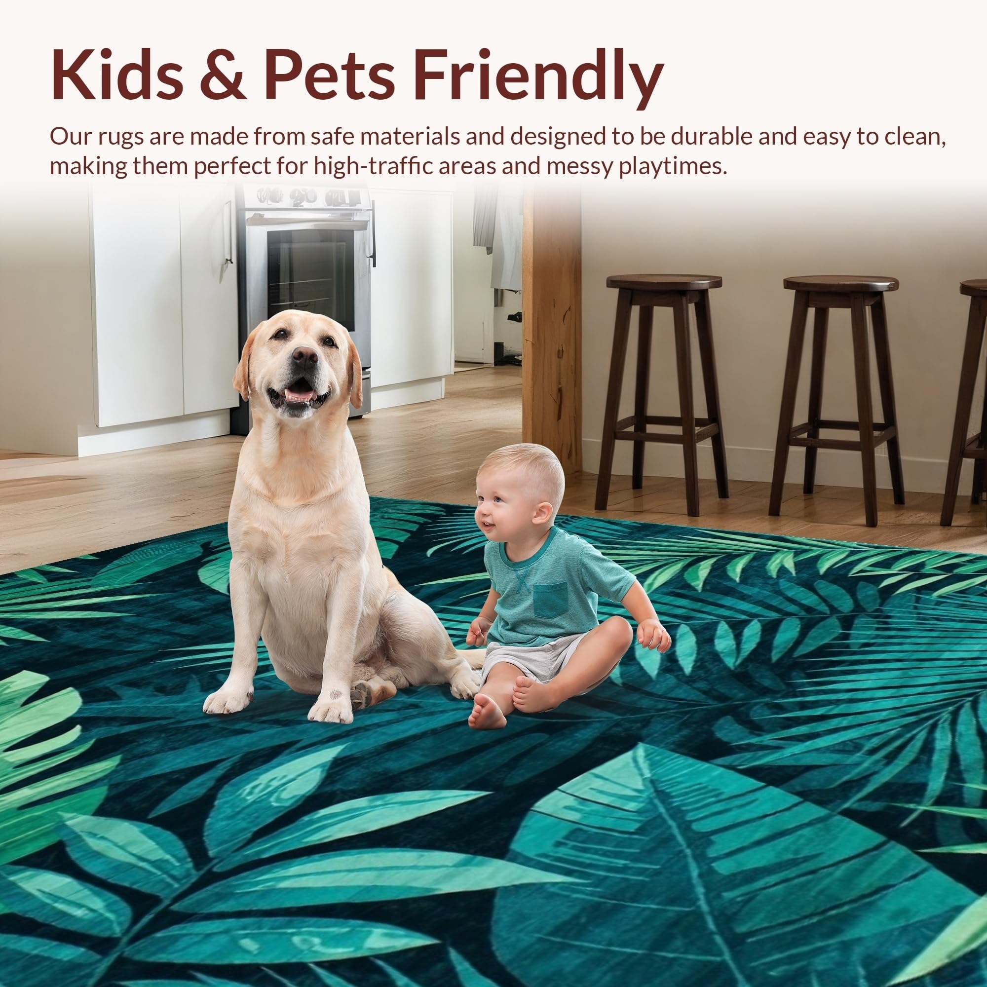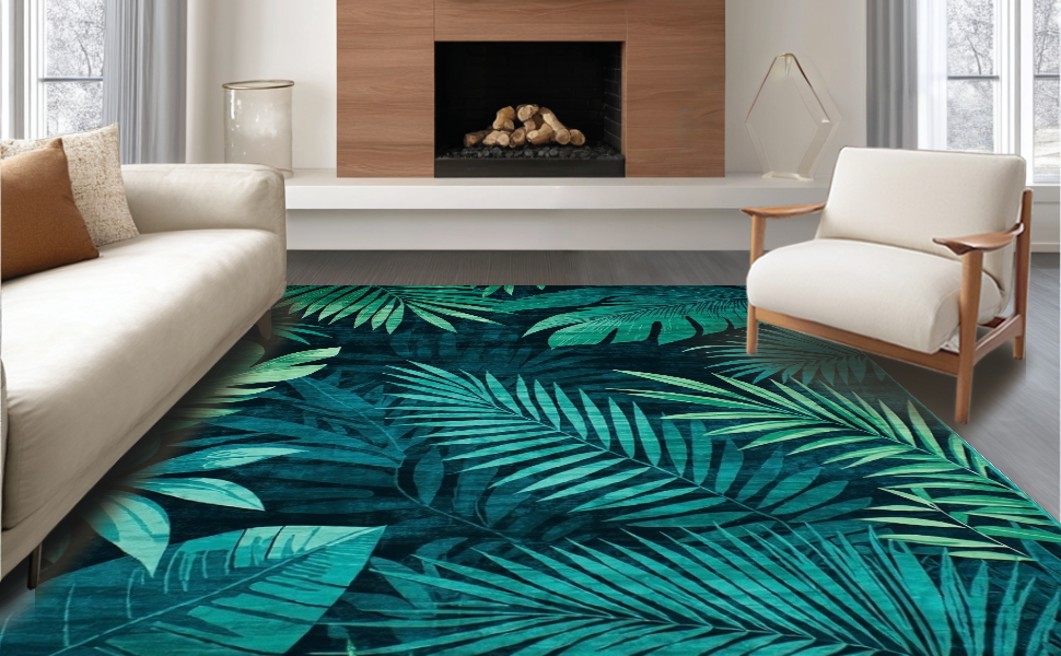 Ultra Soft Area Rug, Non Slip, Stain Resistant, Washable Area Rugs for Living Room, Bedroom, Artistic Earthy Medallion Layout(Blue) Overview: