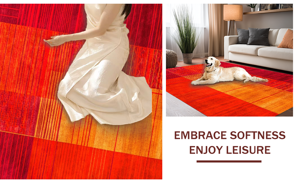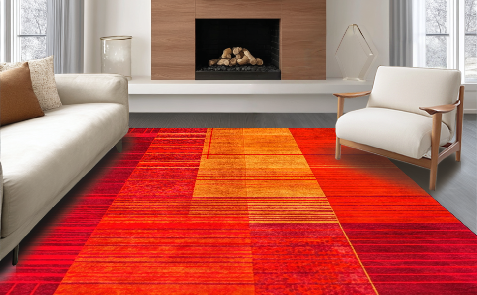 Ultra Soft Area Rug, Non Slip, Stain Resistant, Washable Area Rugs for Living Room, Bedroom, Artistic Fiery Swirl Design(Red) Overview:
