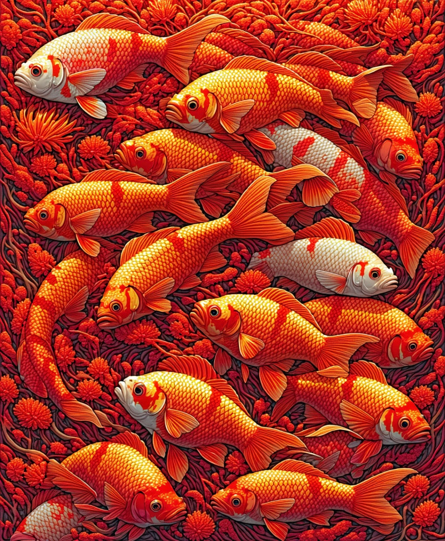 Artistic Fishing Themed Indoor Low Pile(Red)