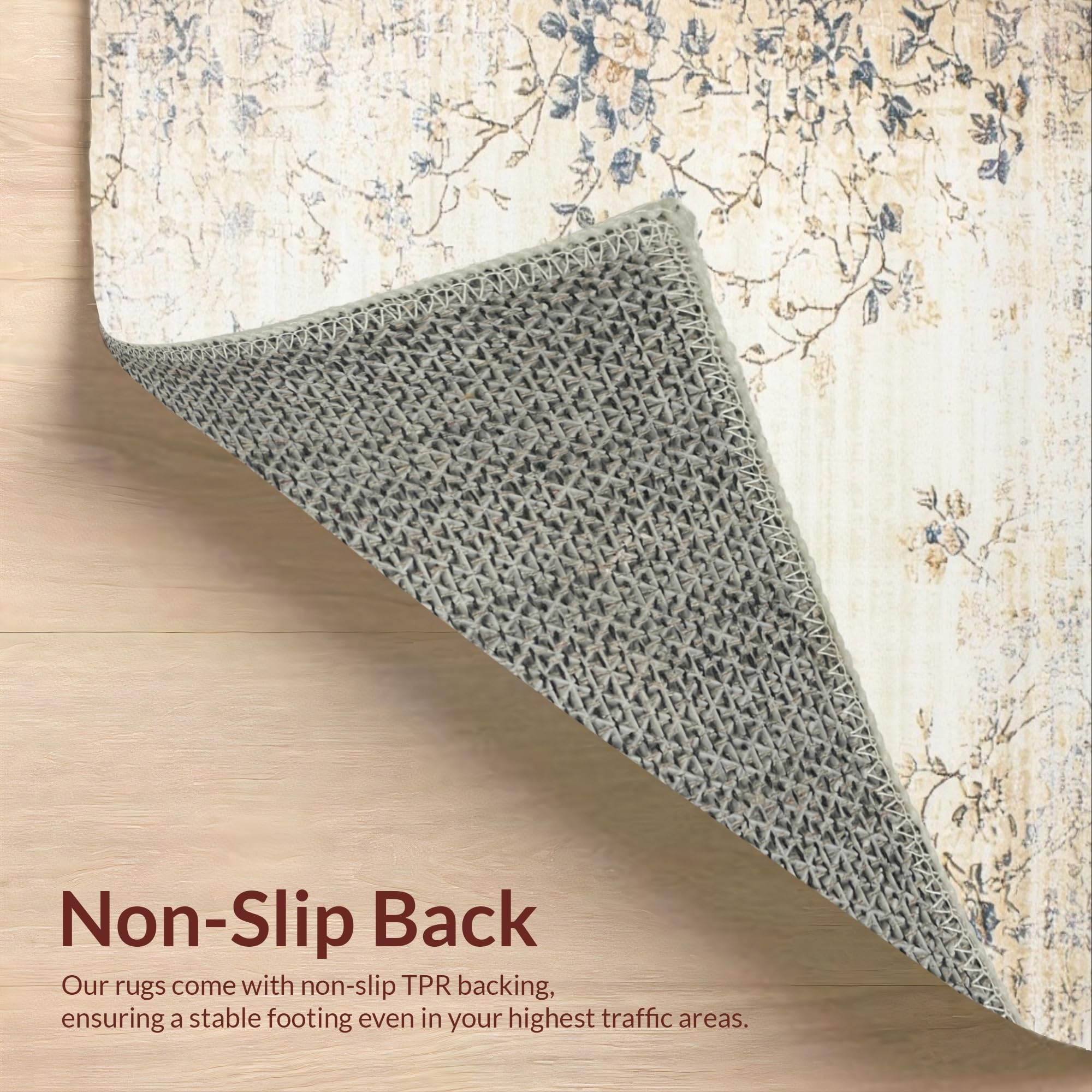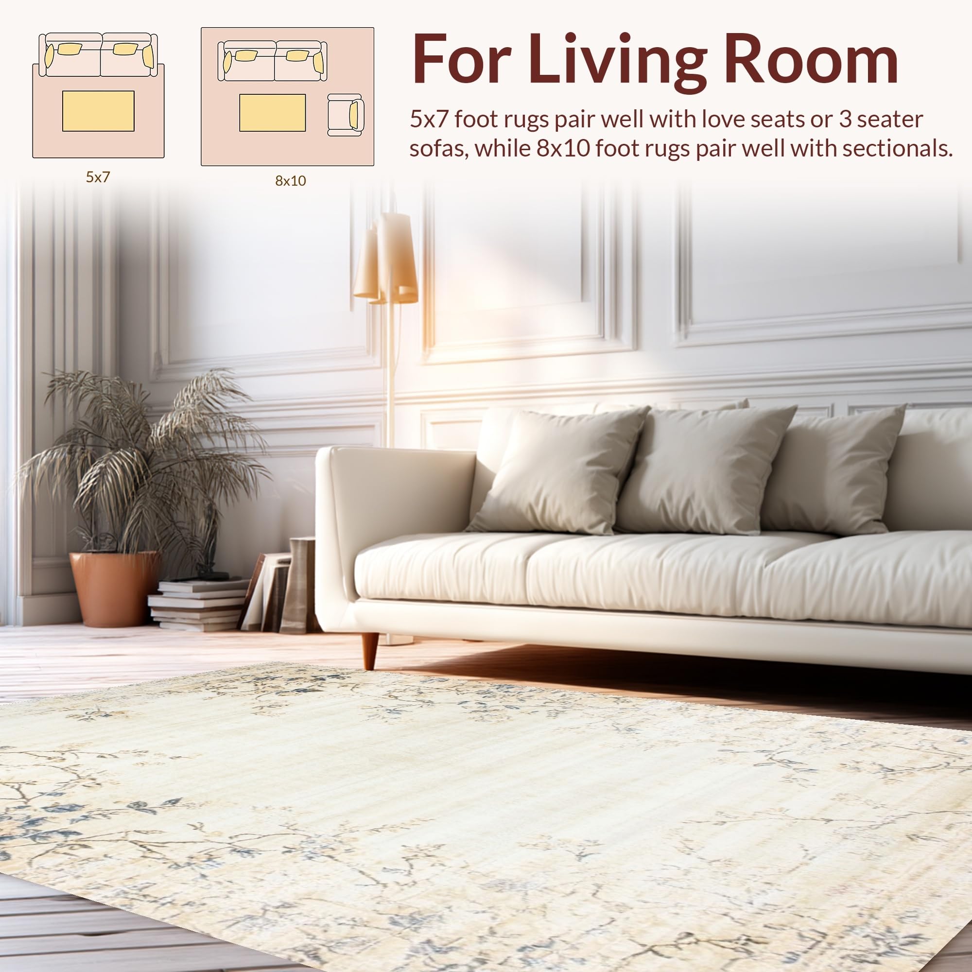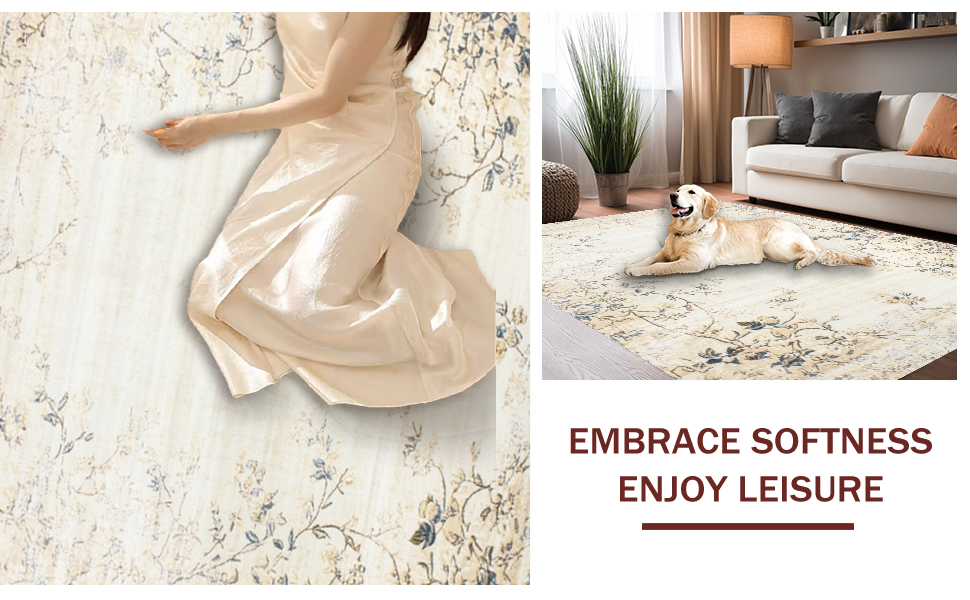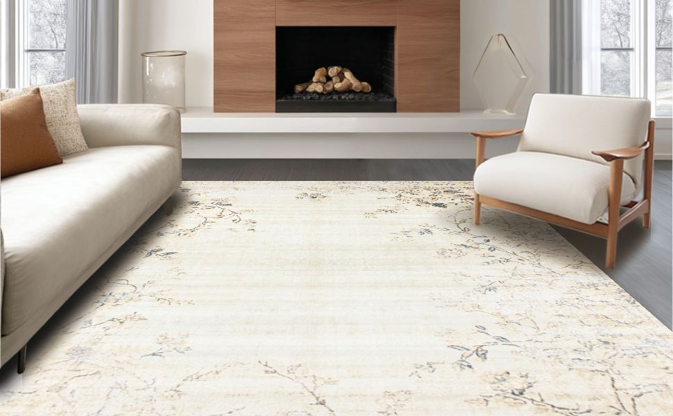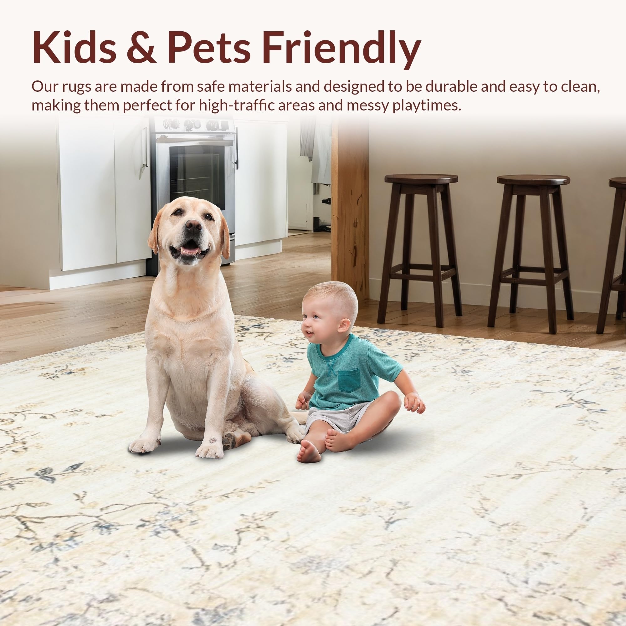 Ultra Soft Area Rug, Non Slip, Stain Resistant, Washable Area Rugs for Living Room, Bedroom, Artistic Floral Abstract Fusion(Beige) Overview: