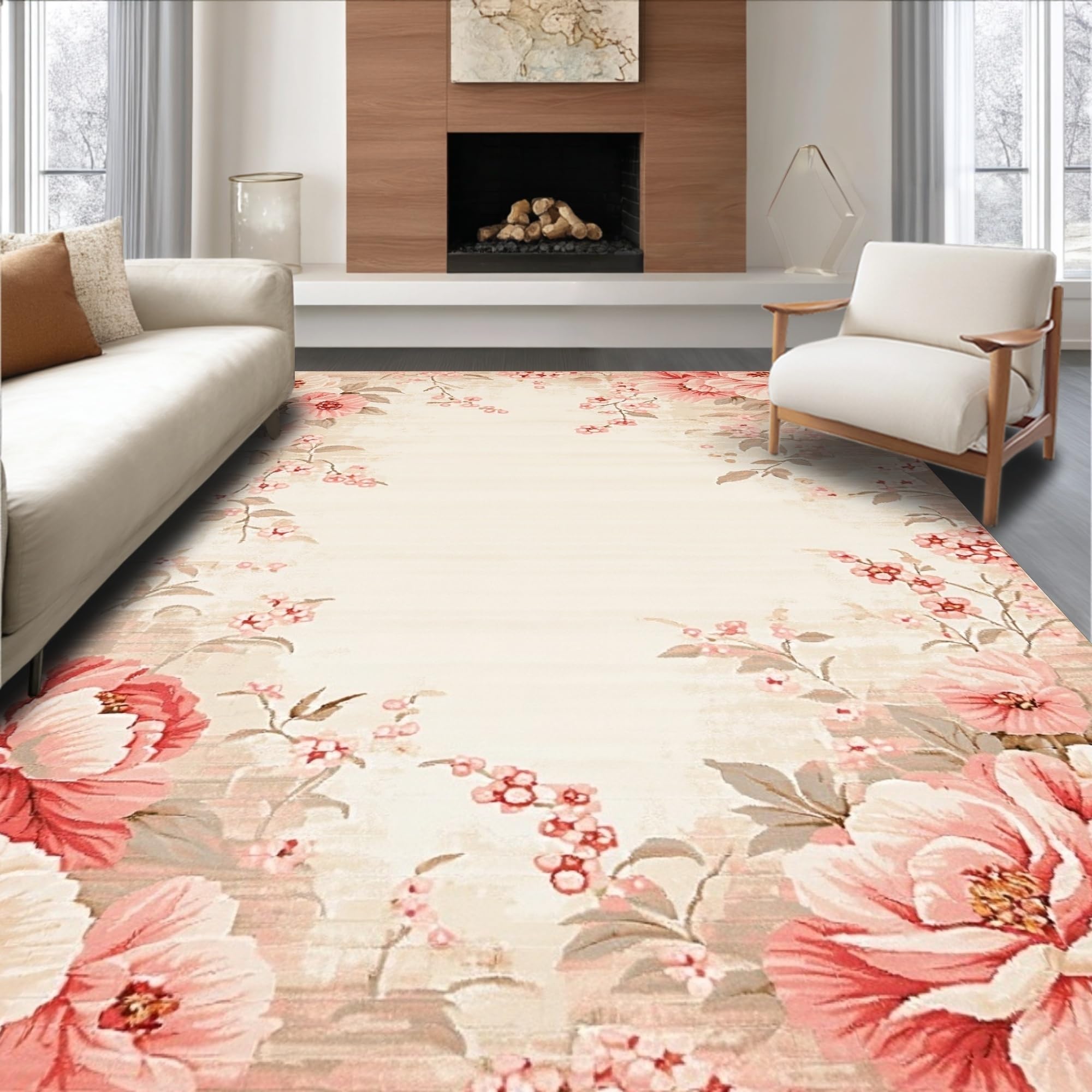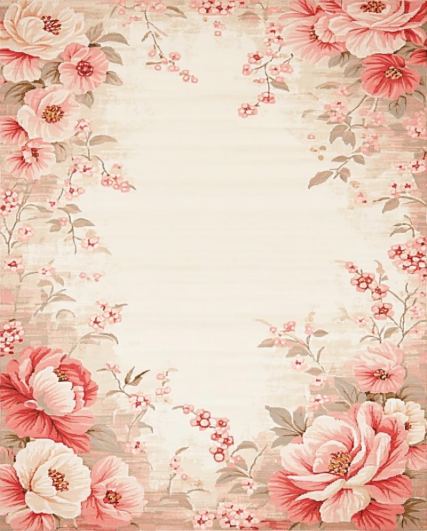 Ultra Soft Area Rug, Non Slip, Stain Resistant, Washable Area Rugs for Living Room, Bedroom, Artistic Floral Area in Blush Pink and Deep Beige Hues(Beige) Overview: