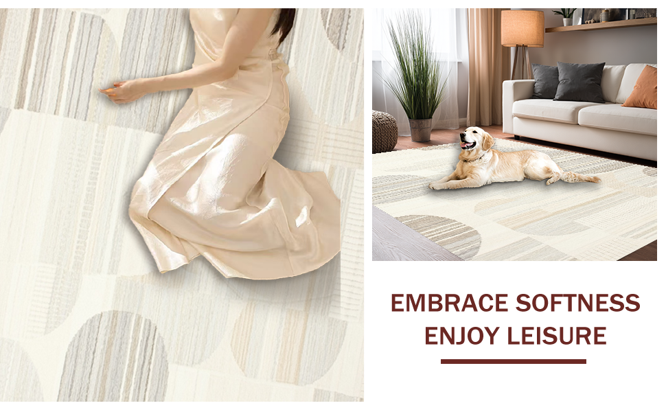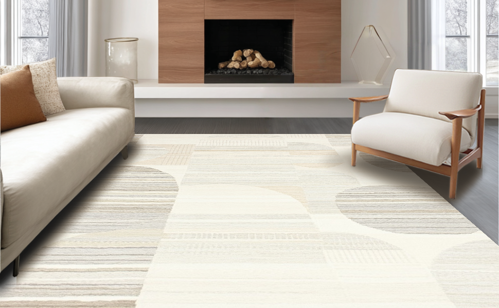 Ultra Soft Area Rug, Non Slip, Stain Resistant, Washable Area Rugs for Living Room, Bedroom, Artistic Fluid Geometric Arrangement(Beige) Overview: