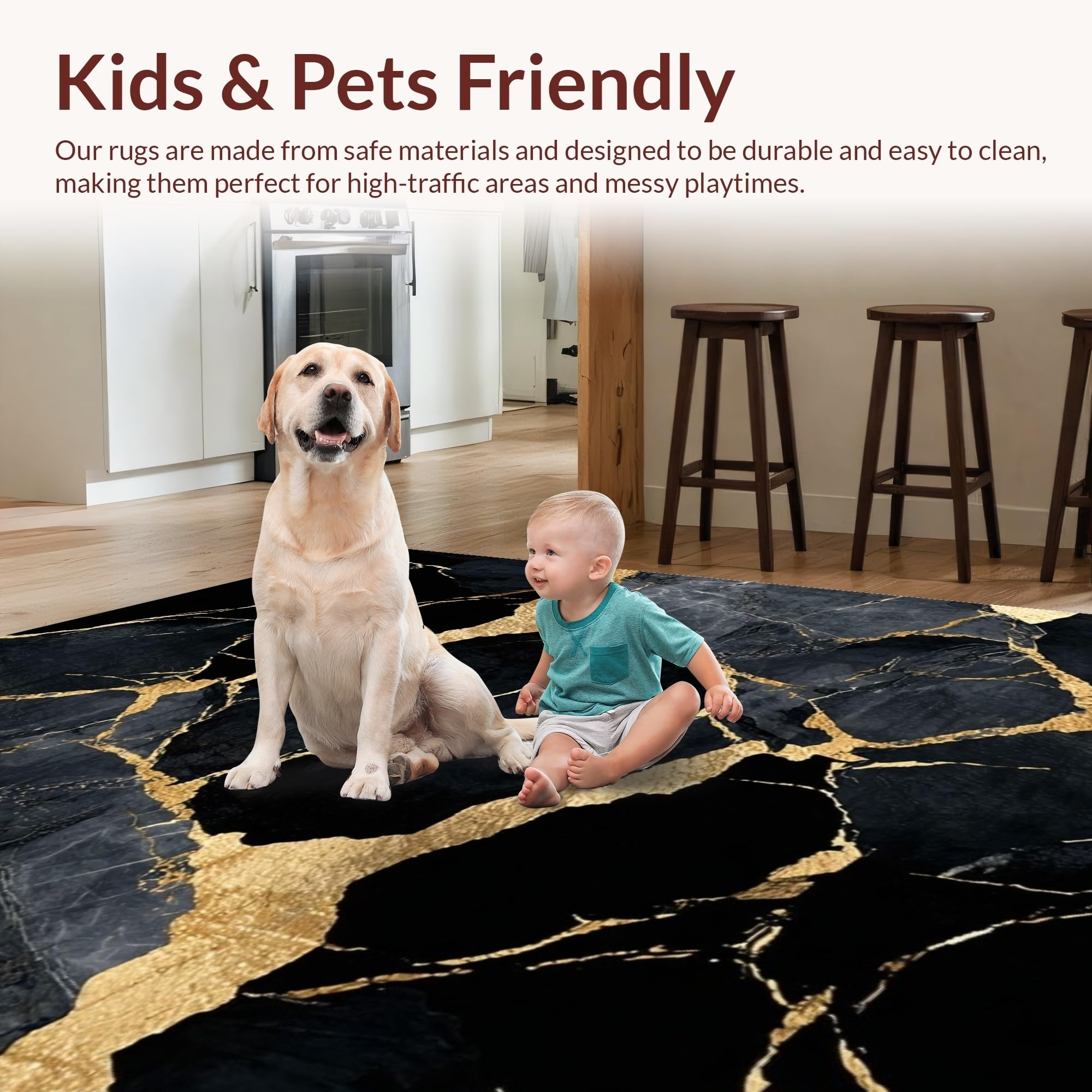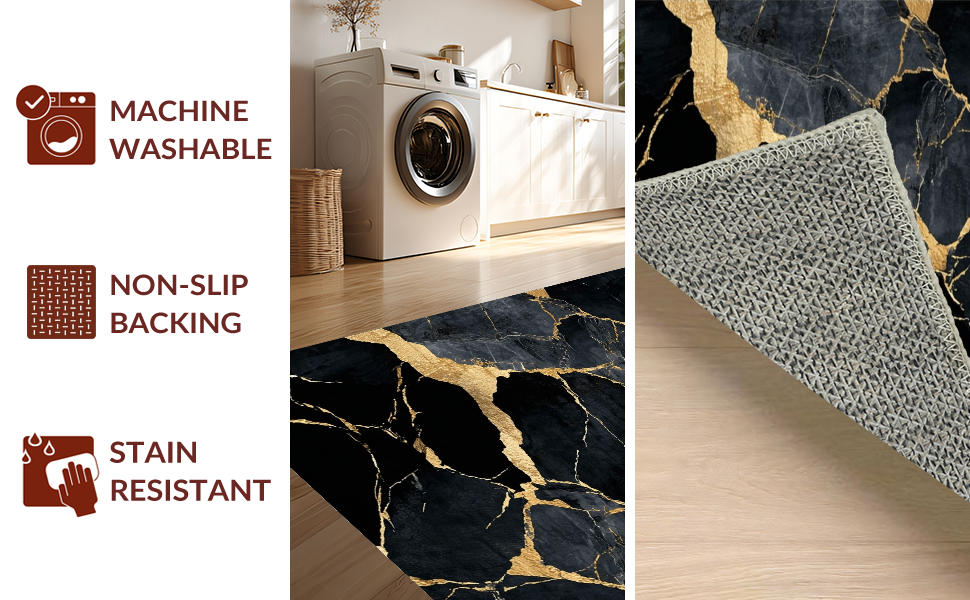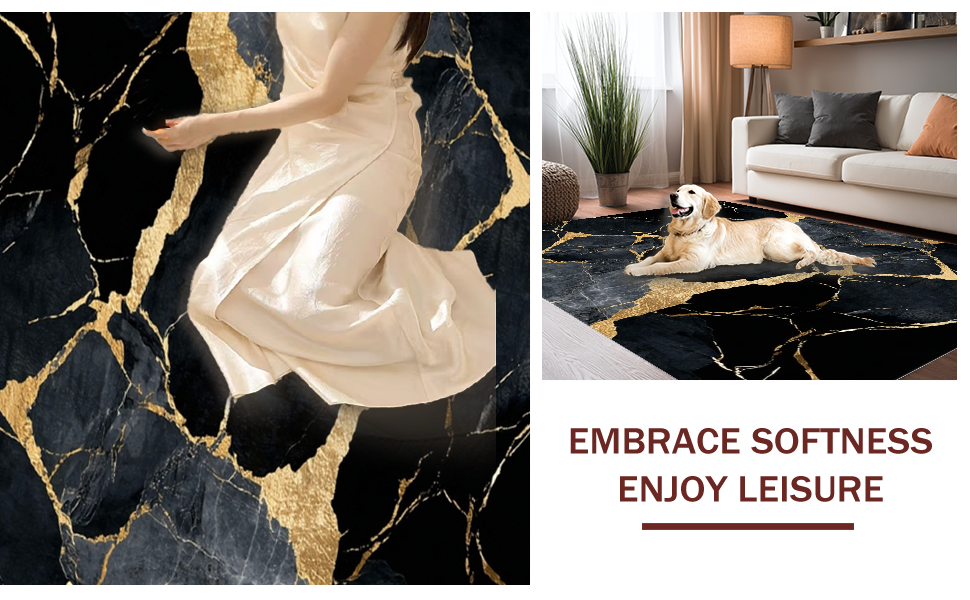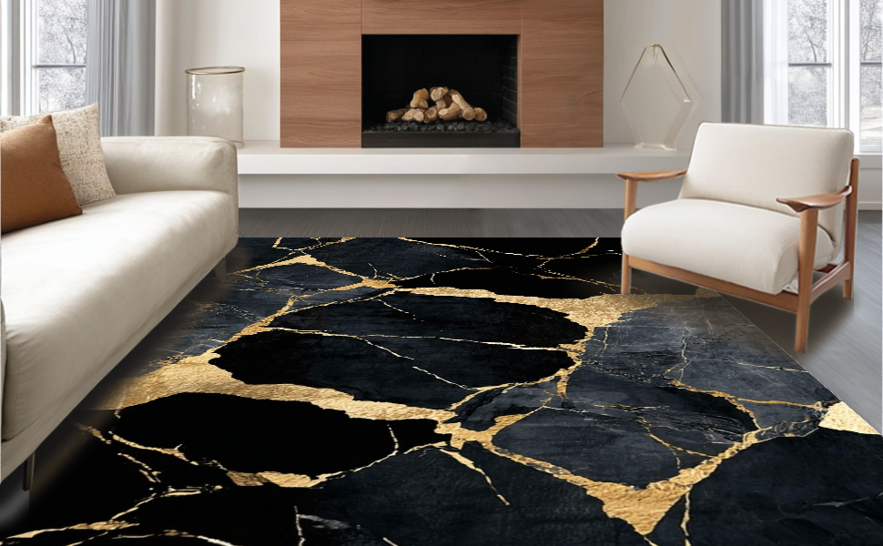 Ultra Soft Area Rug, Non Slip, Stain Resistant, Washable Area Rugs for Living Room, Bedroom, Artistic Fluid Marble Motif(Black) Overview:
