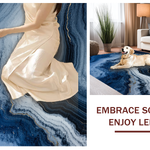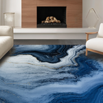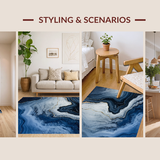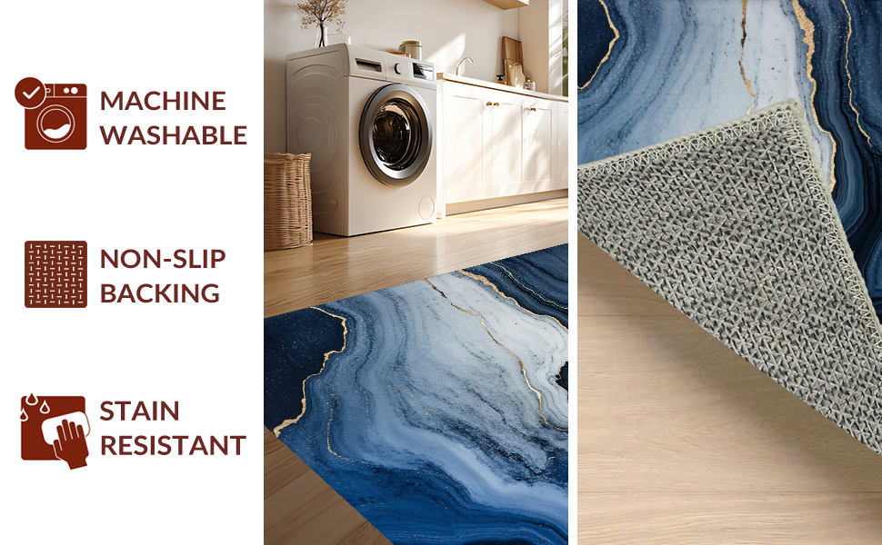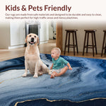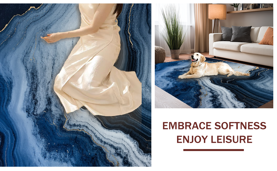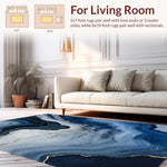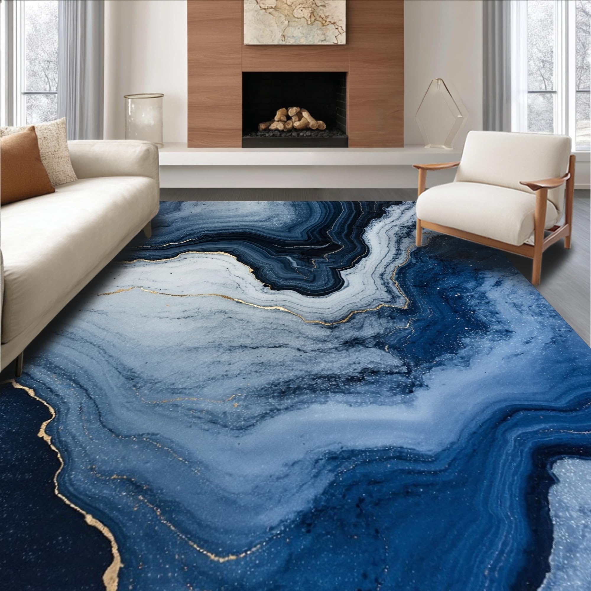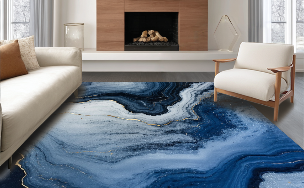 Ultra Soft Area Rug, Non Slip, Stain Resistant, Washable Area Rugs for Living Room, Bedroom, Artistic Fluid Pattern with Gold Accents(Blue) Overview: