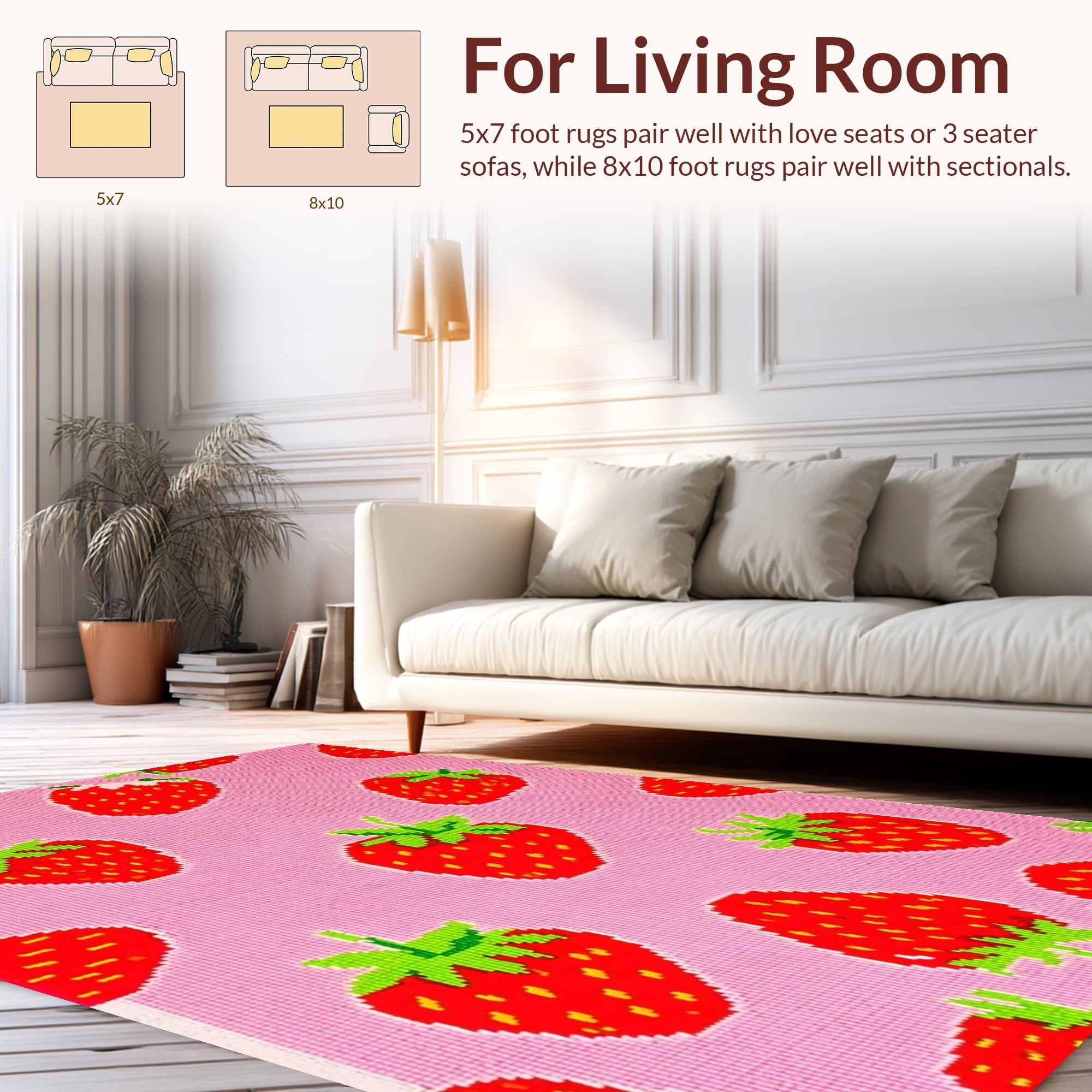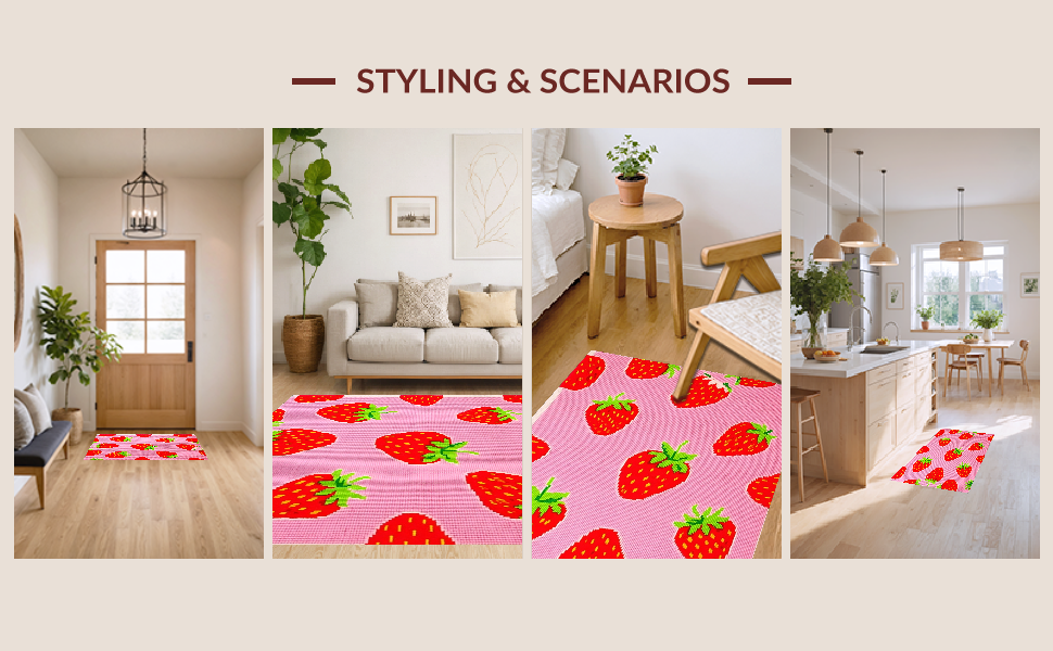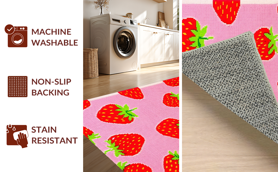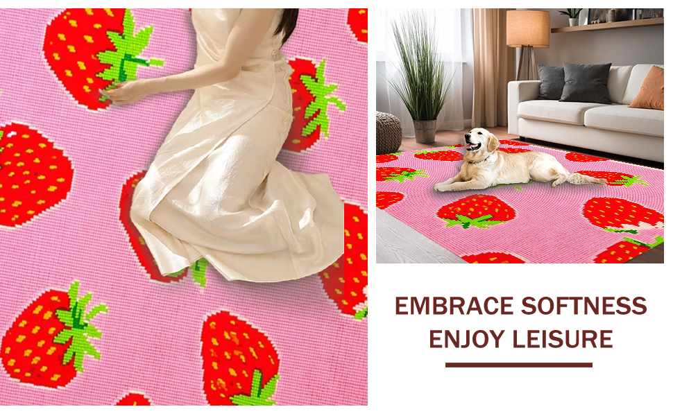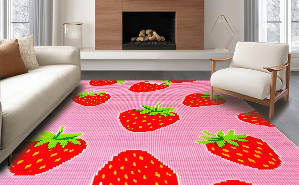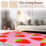 Ultra Soft Area Rug, Non Slip, Stain Resistant, Washable Area Rugs for Living Room, Bedroom, Artistic Fun Fruit Theme(Pink) Overview: